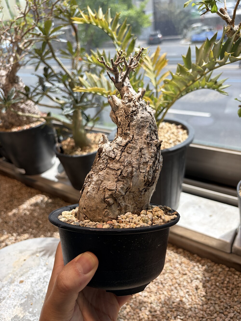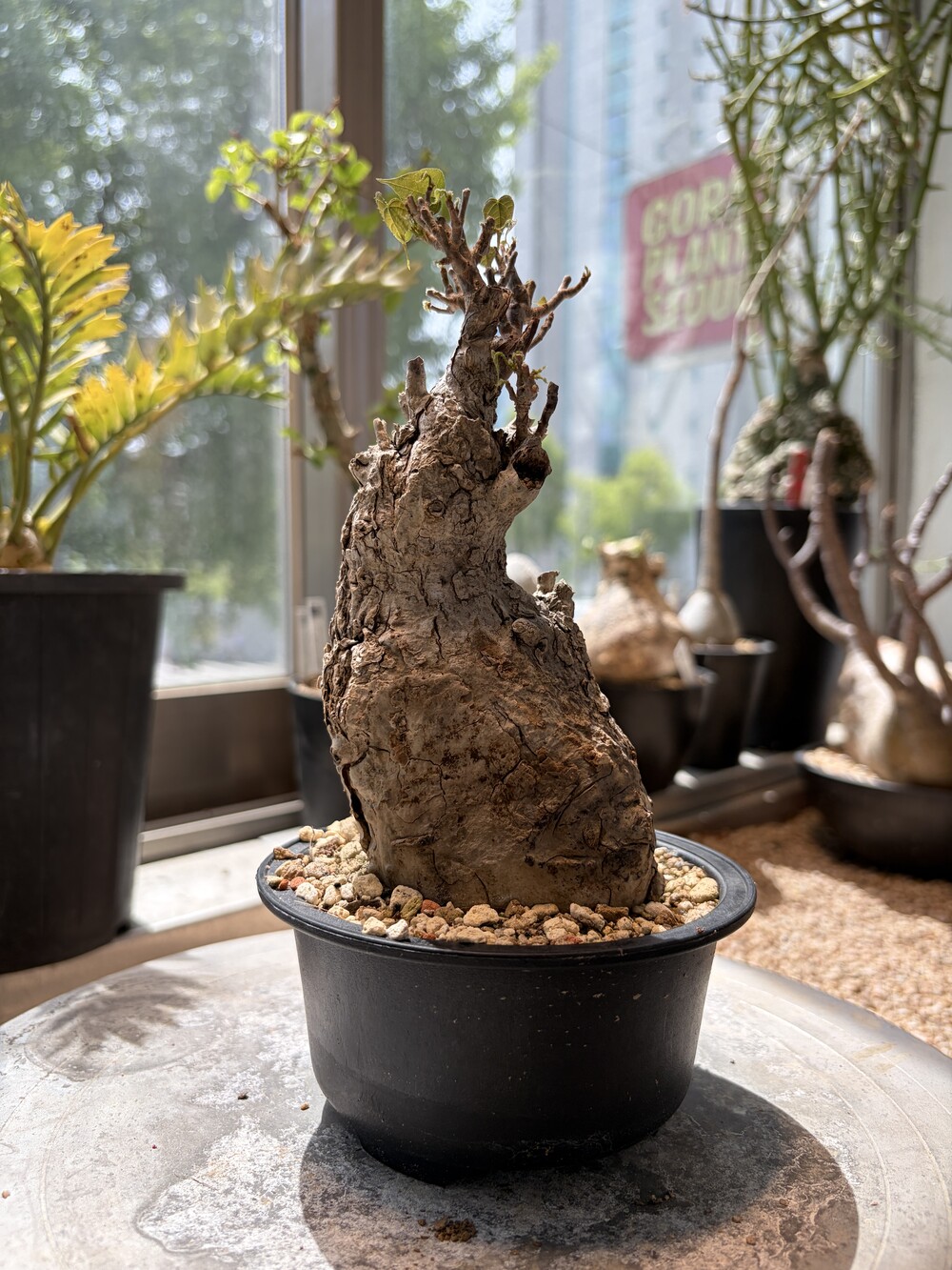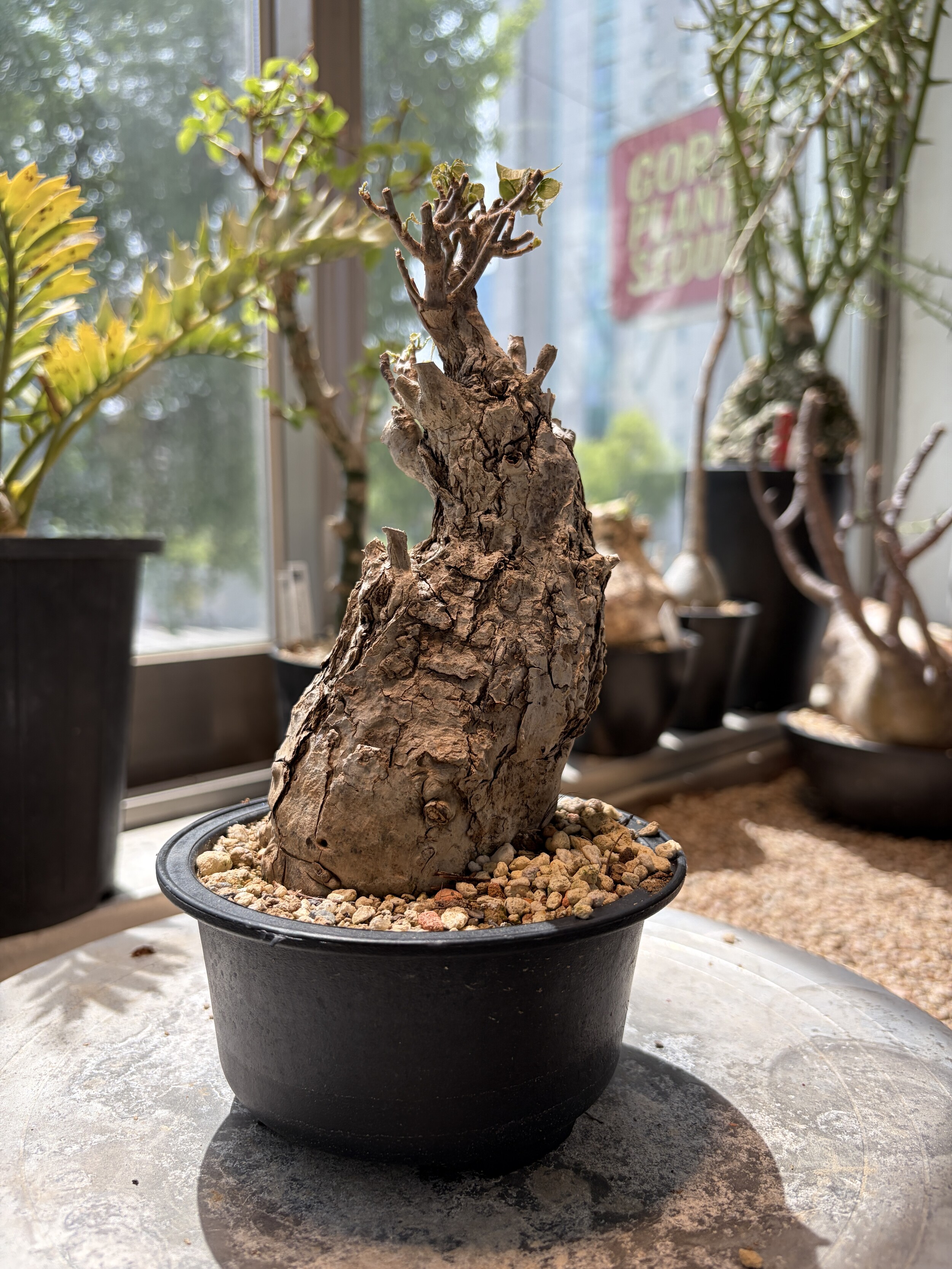 'Caudex' 식물들은 늦가을부터 자연스럽게 잎이 떨어집니다. (환경에 따라 잎이 지지 않을 수 있습니다.) 잎이 떨어지기 시작하면 서서히 물을 줄여나가며 휴면기인 겨울 동안에는 2-3주 1회 가볍게 분무 해주시면 됩니다.