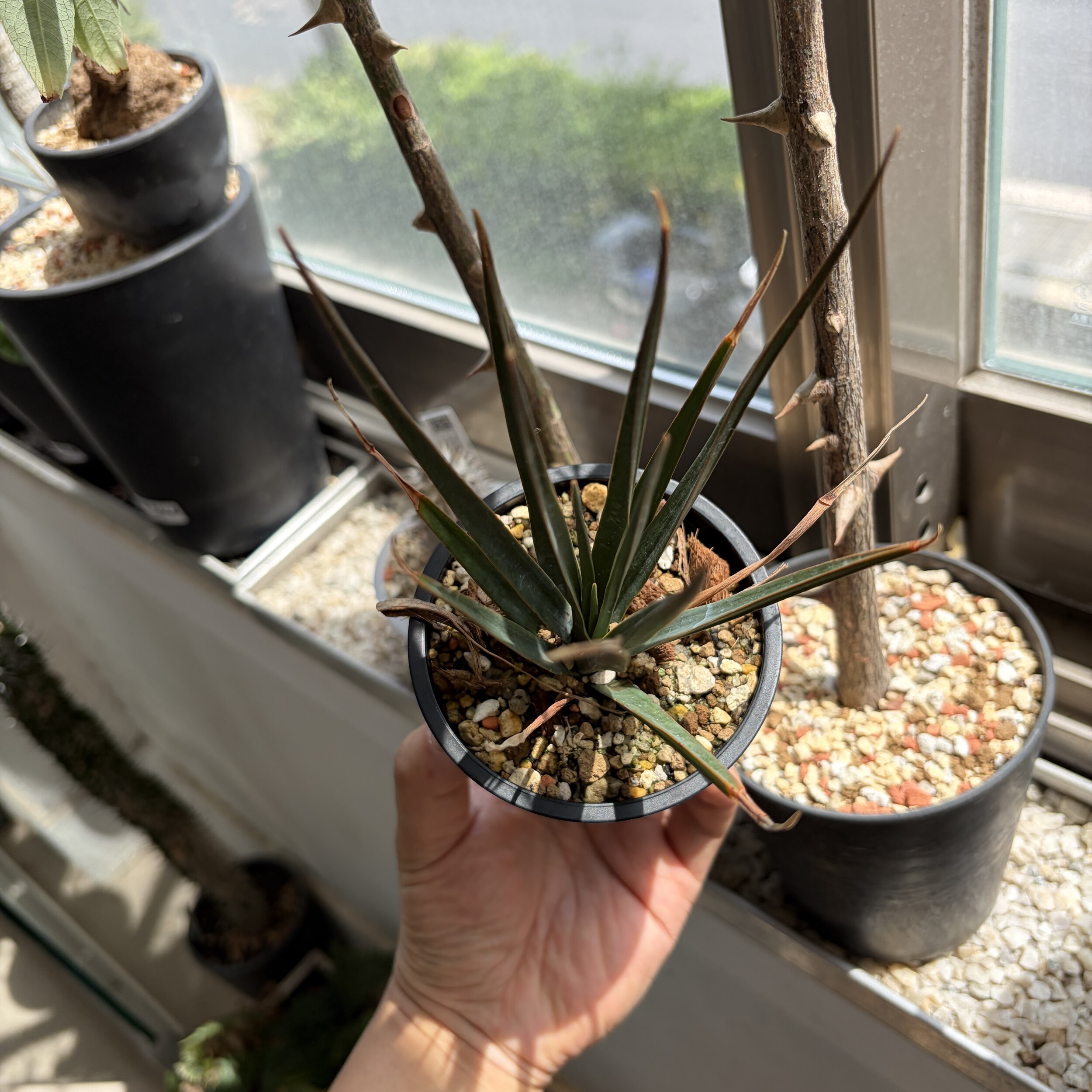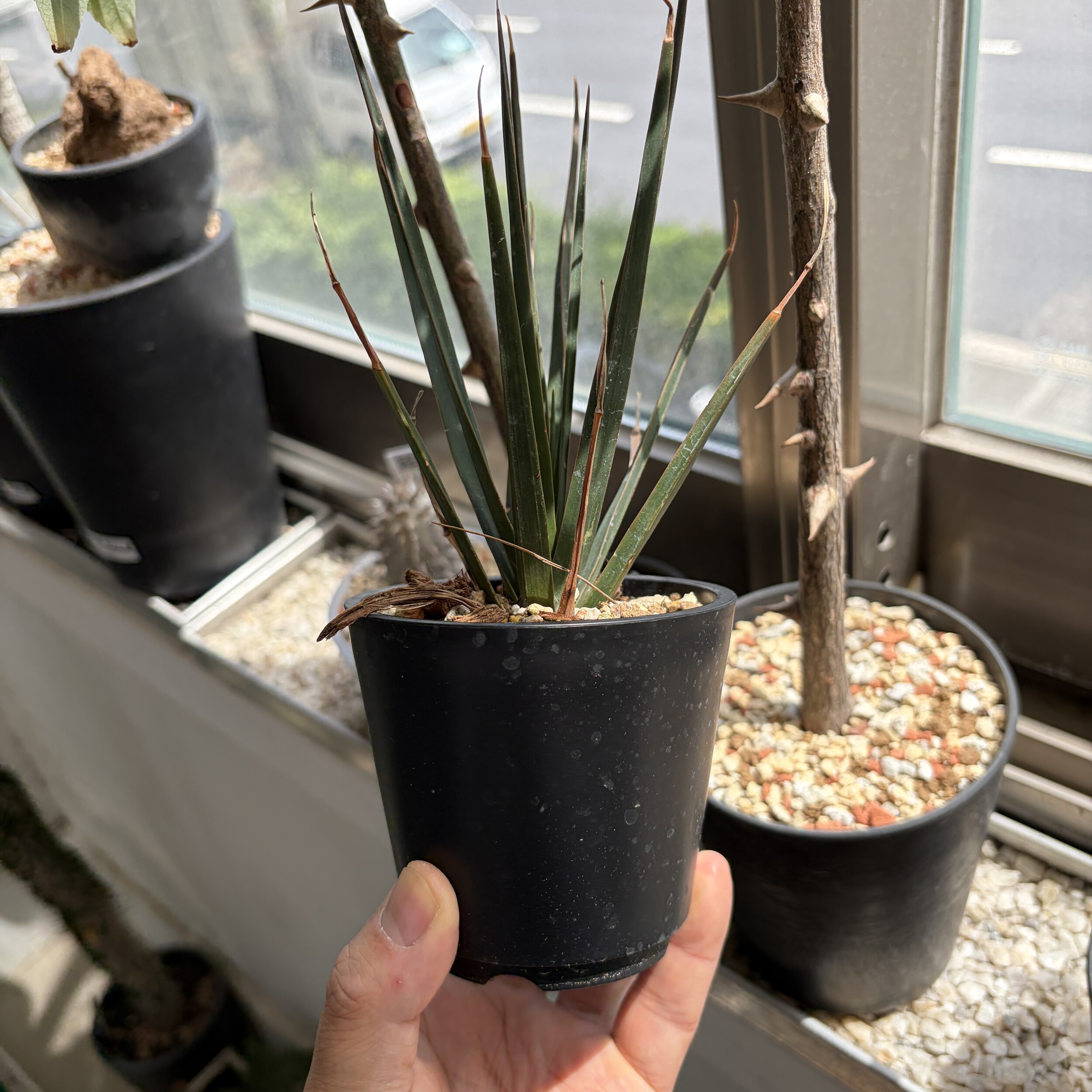 'Caudex' 식물들은 늦가을부터 자연스럽게 잎이 떨어집니다. (환경에 따라 잎이 지지 않을 수 있습니다.) 잎이 떨어지기 시작하면 서서히 물을 줄여나가며 휴면기인 겨울 동안에는 2-3주 1회 가볍게 분무 해주시면 됩니다.
