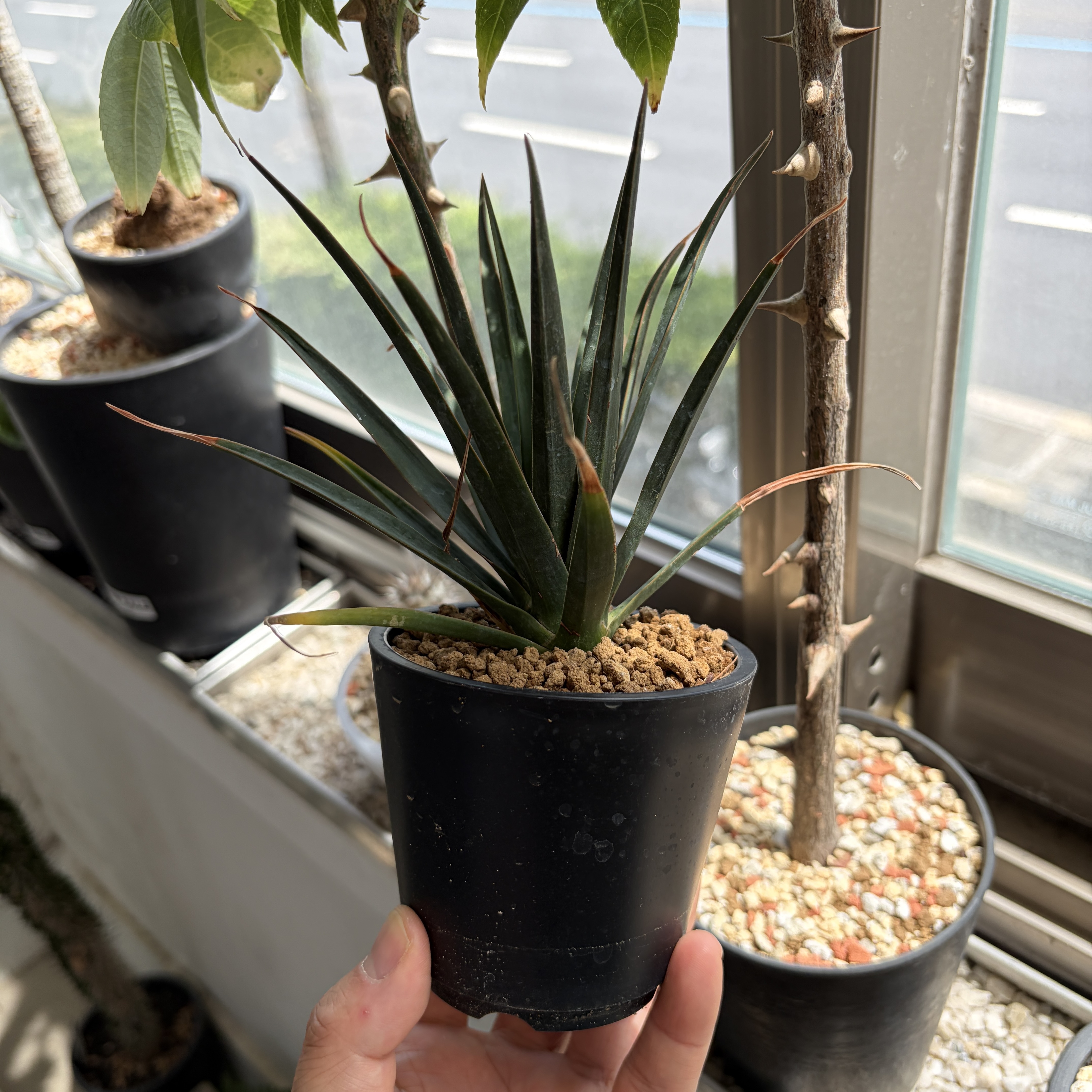 'Caudex' 식물들은 늦가을부터 자연스럽게 잎이 떨어집니다. (환경에 따라 잎이 지지 않을 수 있습니다.) 잎이 떨어지기 시작하면 서서히 물을 줄여나가며 휴면기인 겨울 동안에는 2-3주 1회 가볍게 분무 해주시면 됩니다.