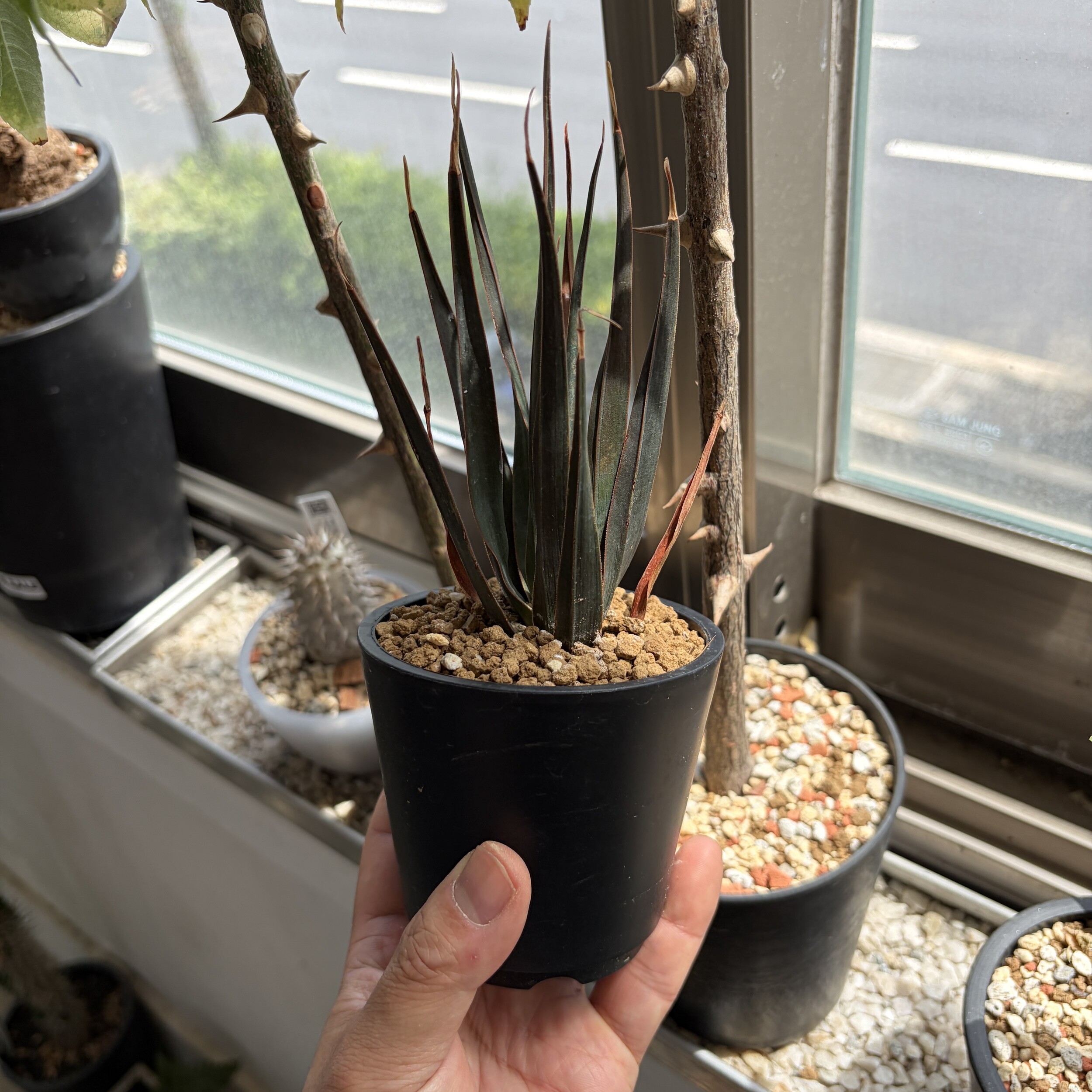 'Caudex' 식물들은 늦가을부터 자연스럽게 잎이 떨어집니다. (환경에 따라 잎이 지지 않을 수 있습니다.) 잎이 떨어지기 시작하면 서서히 물을 줄여나가며 휴면기인 겨울 동안에는 2-3주 1회 가볍게 분무 해주시면 됩니다.