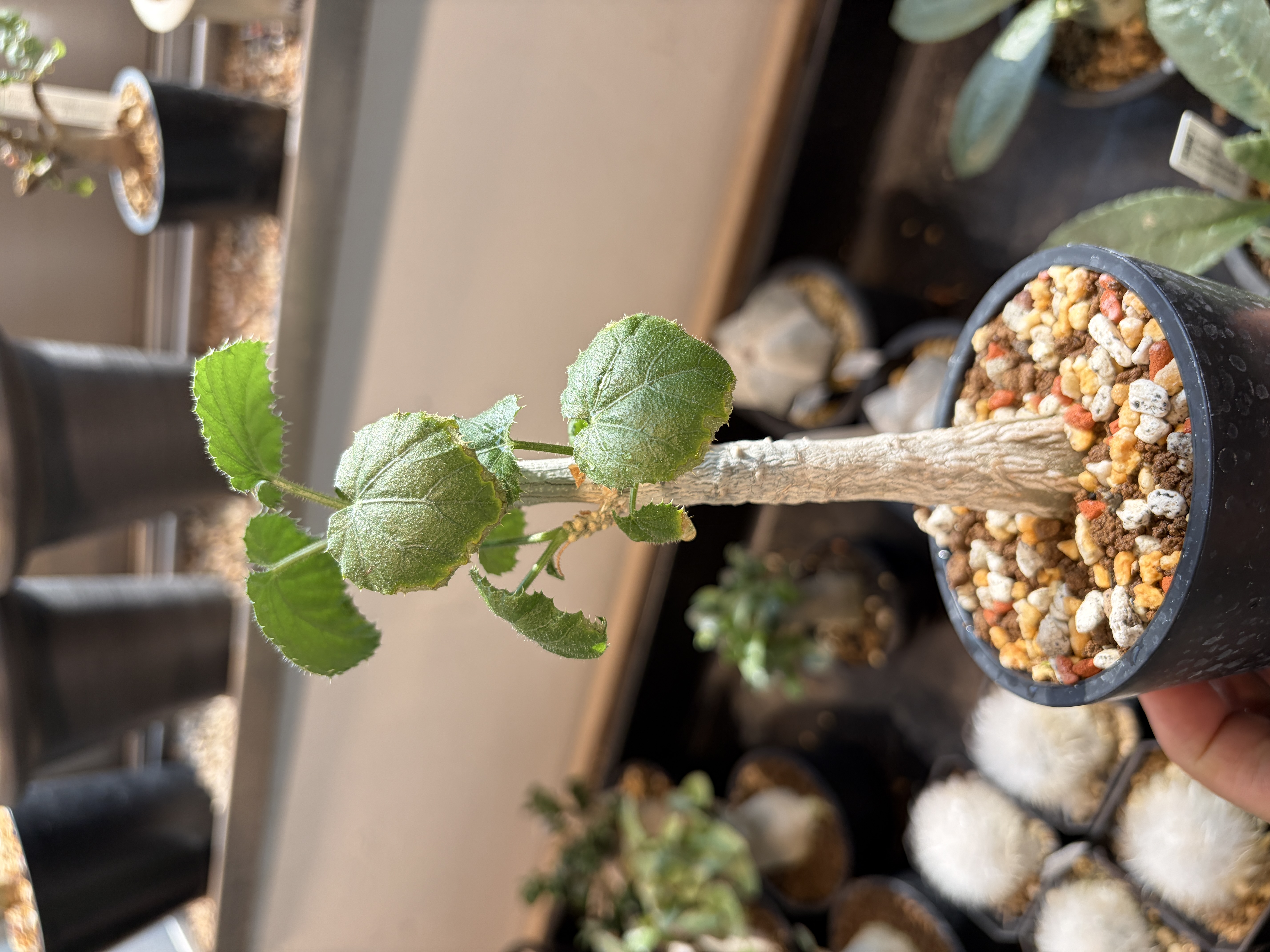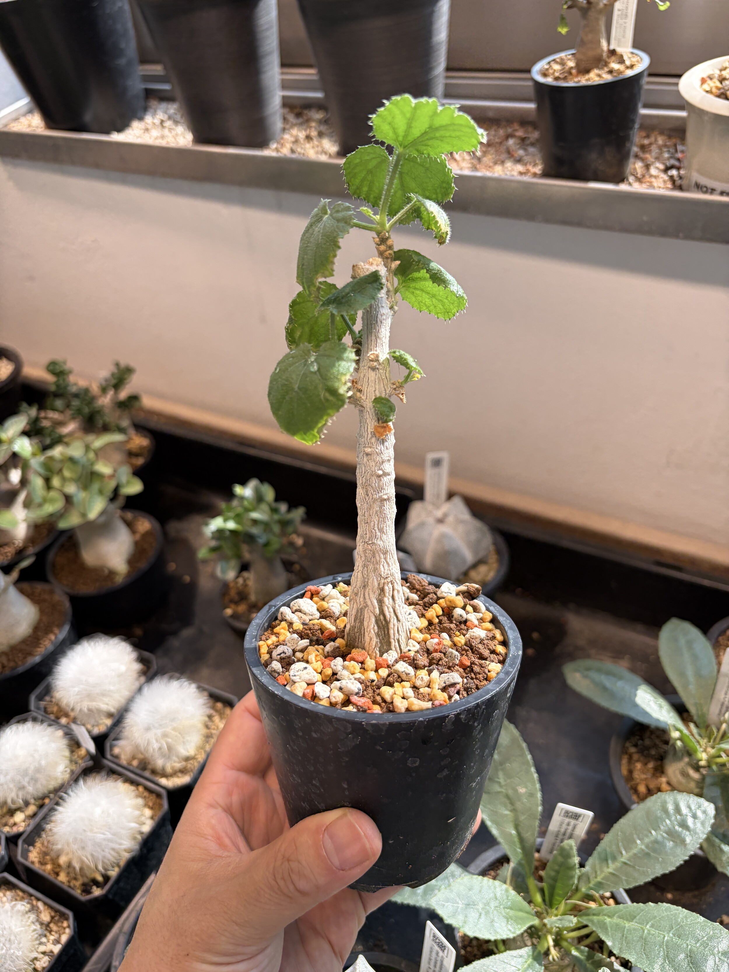 'Caudex' 식물들은 늦가을부터 자연스럽게 잎이 떨어집니다. (환경에 따라 잎이 지지 않을 수 있습니다.) 잎이 떨어지기 시작하면 서서히 물을 줄여나가며 휴면기인 겨울 동안에는 2-3주 1회 가볍게 분무 해주시면 됩니다.