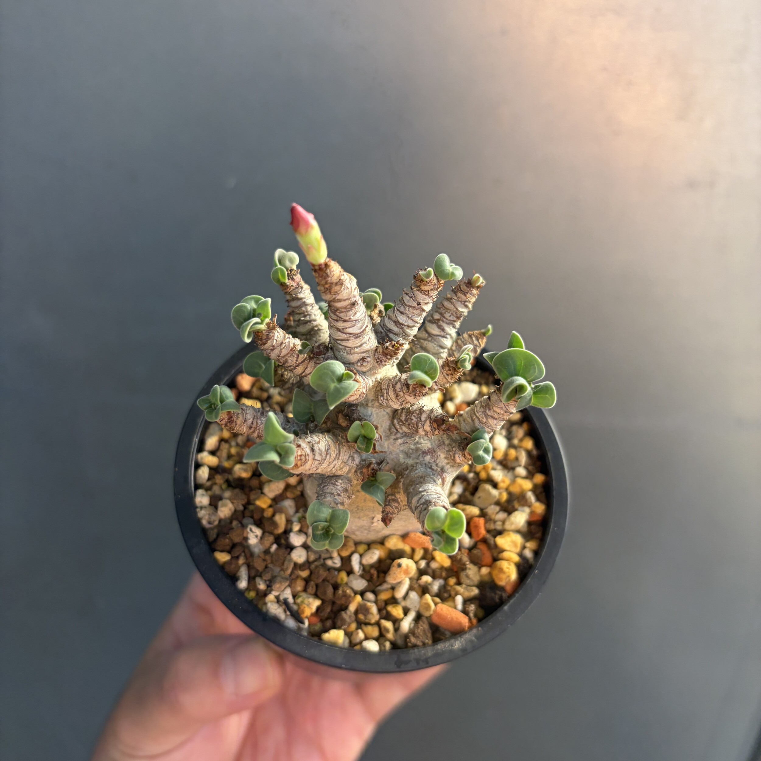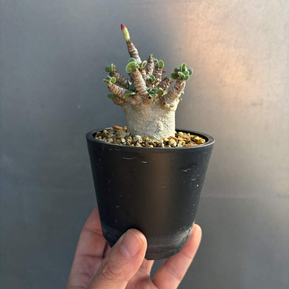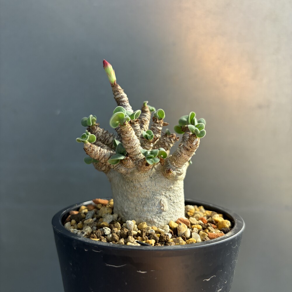 'Caudex' 식물들은 늦가을부터 자연스럽게 잎이 떨어집니다. (환경에 따라 잎이 지지 않을 수 있습니다.) 잎이 떨어지기 시작하면 서서히 물을 줄여나가며 휴면기인 겨울 동안에는 2-3주 1회 가볍게 분무 해주시면 됩니다.