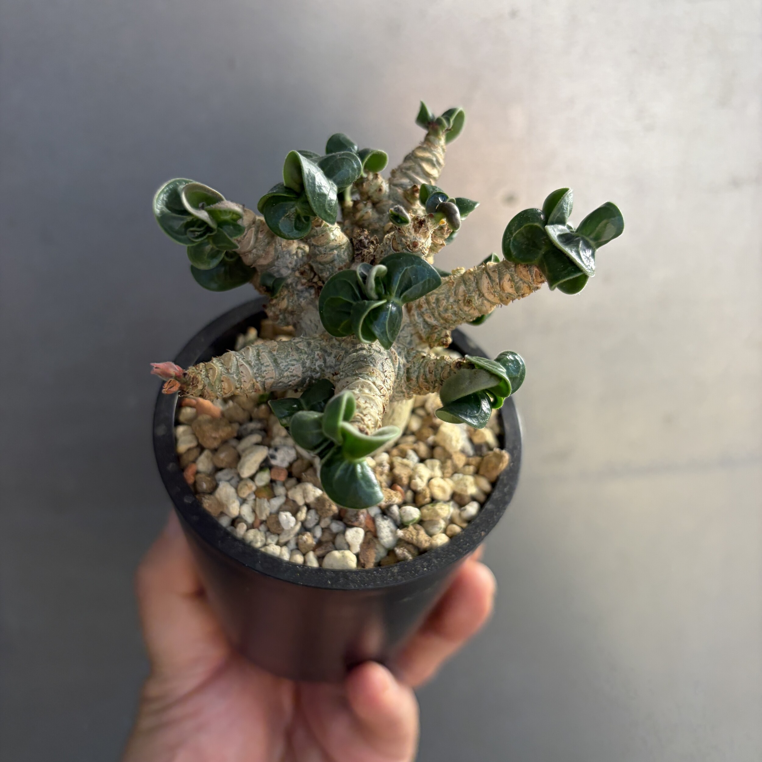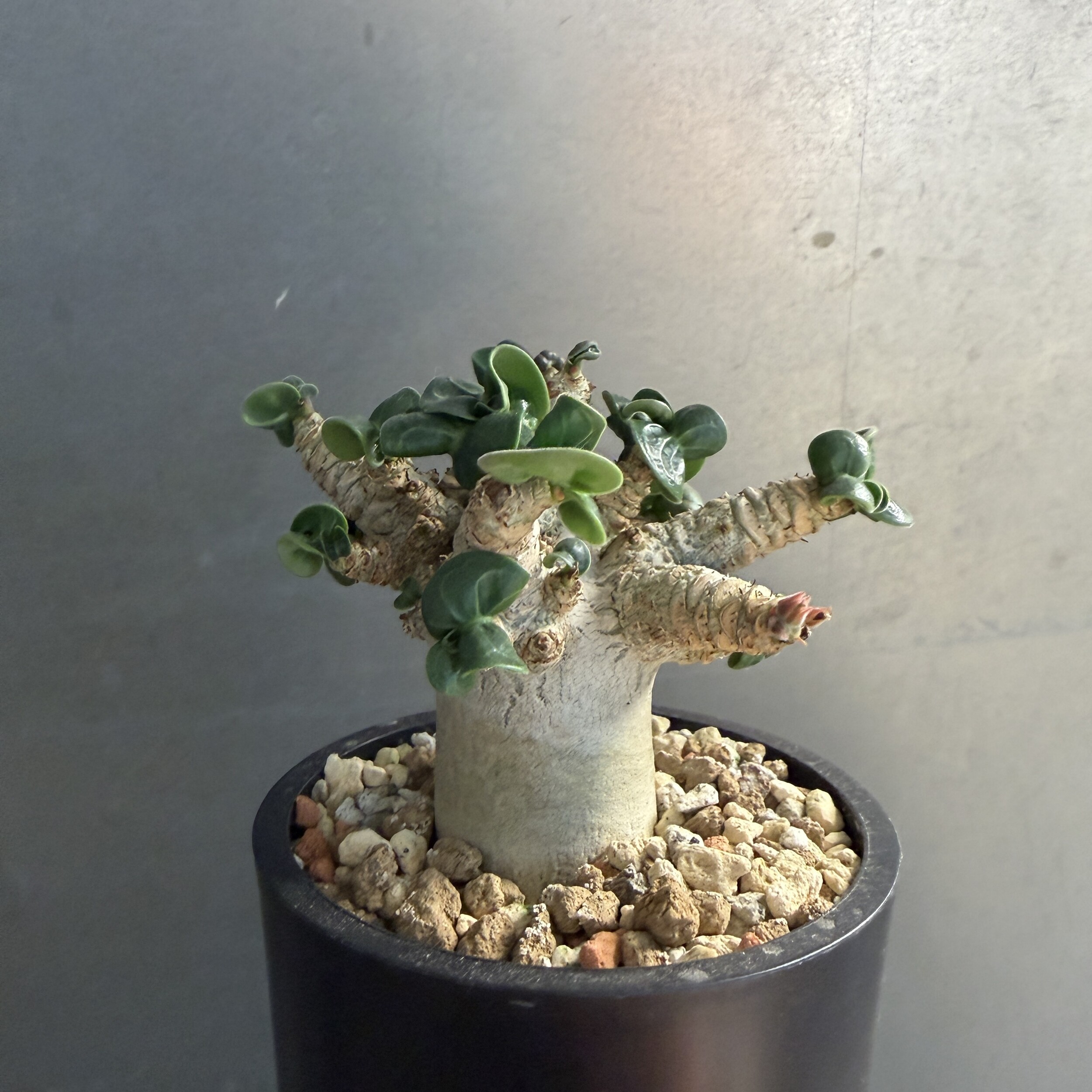 'Caudex' 식물들은 늦가을부터 자연스럽게 잎이 떨어집니다. (환경에 따라 잎이 지지 않을 수 있습니다.) 잎이 떨어지기 시작하면 서서히 물을 줄여나가며 휴면기인 겨울 동안에는 2-3주 1회 가볍게 분무 해주시면 됩니다.
