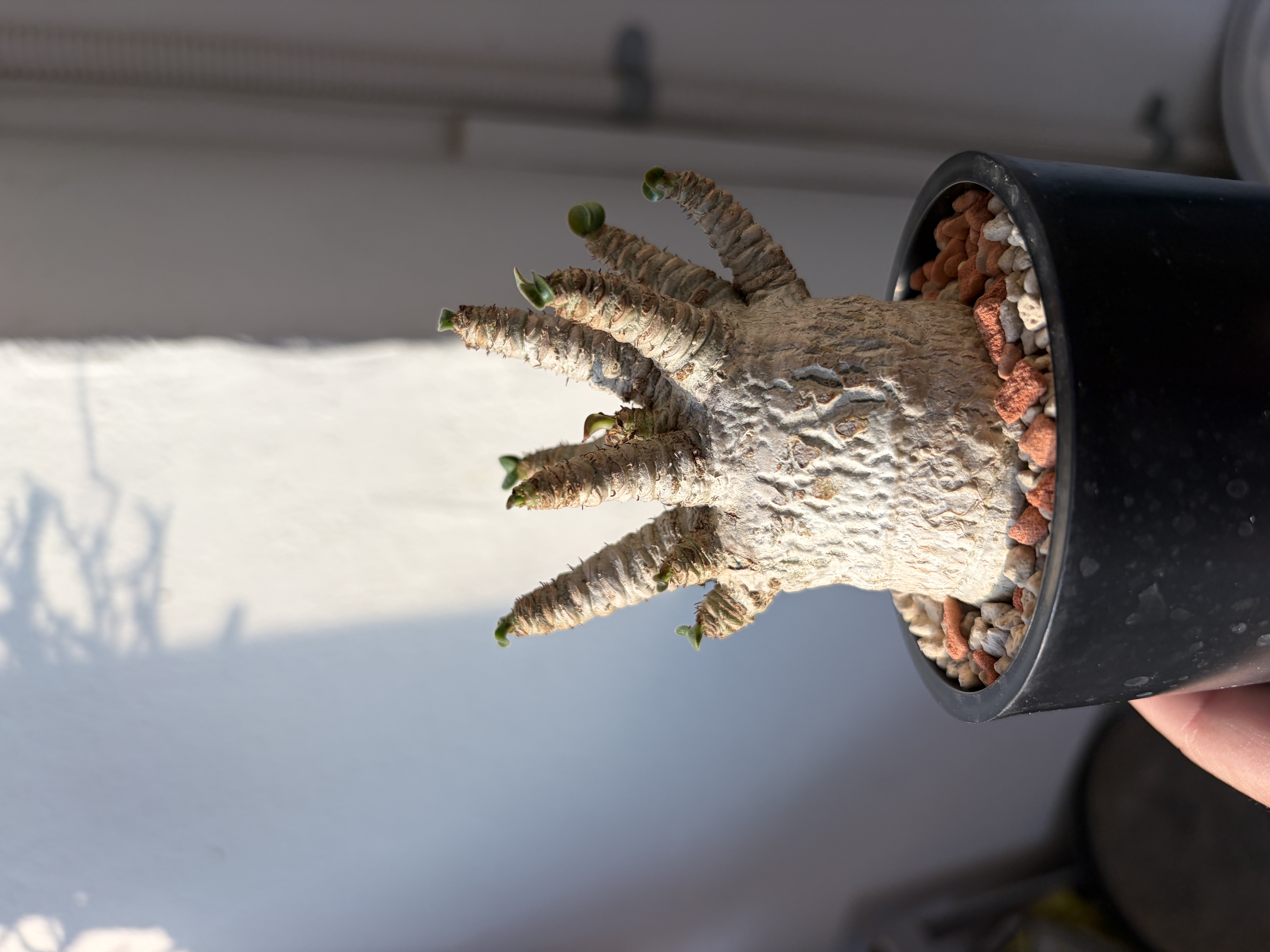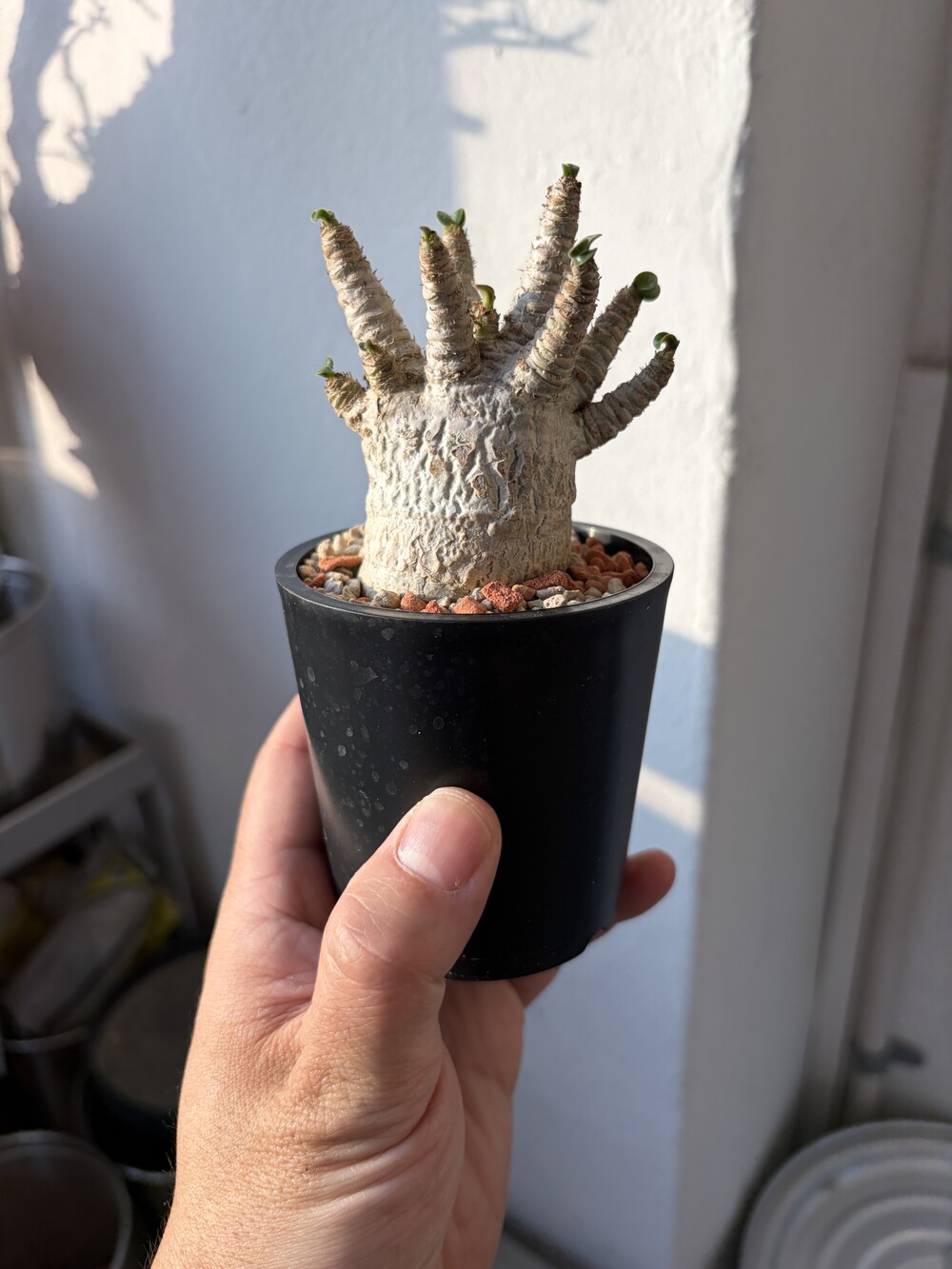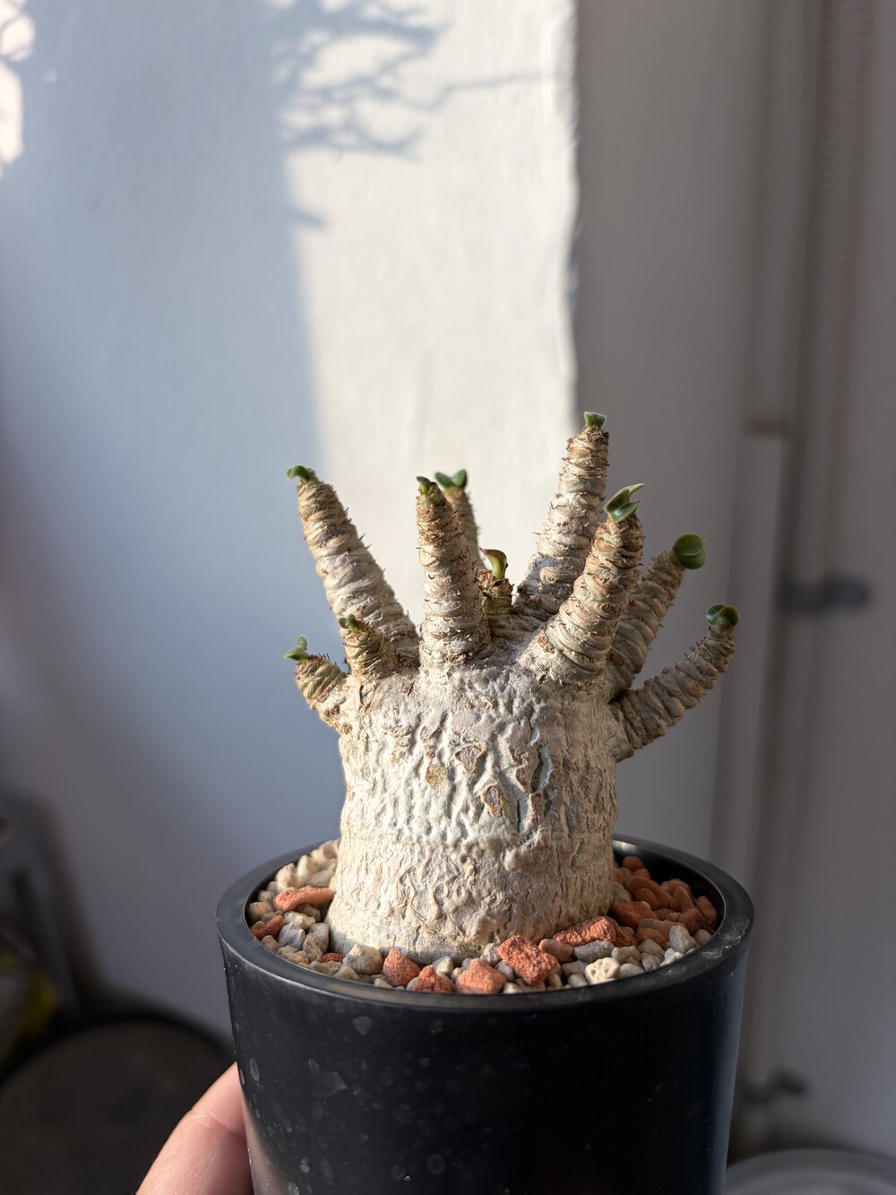 'Caudex' 식물들은 늦가을부터 자연스럽게 잎이 떨어집니다. (환경에 따라 잎이 지지 않을 수 있습니다.) 잎이 떨어지기 시작하면 서서히 물을 줄여나가며 휴면기인 겨울 동안에는 2-3주 1회 가볍게 분무 해주시면 됩니다.
