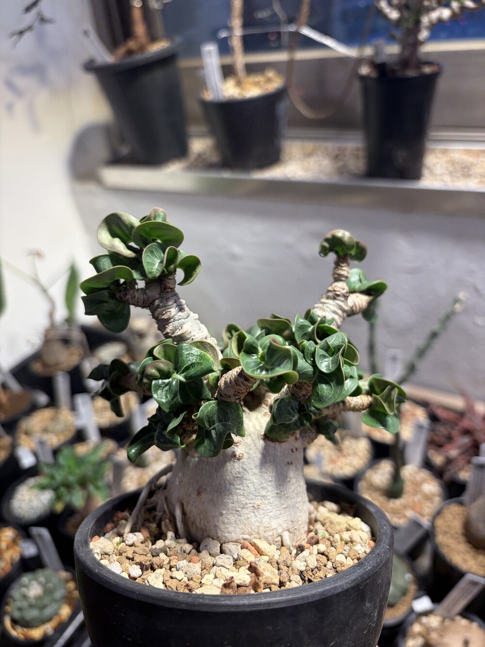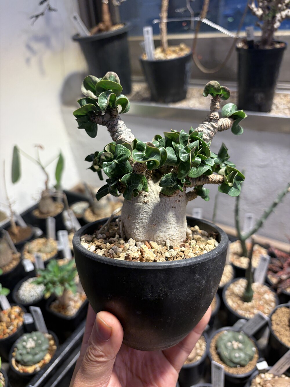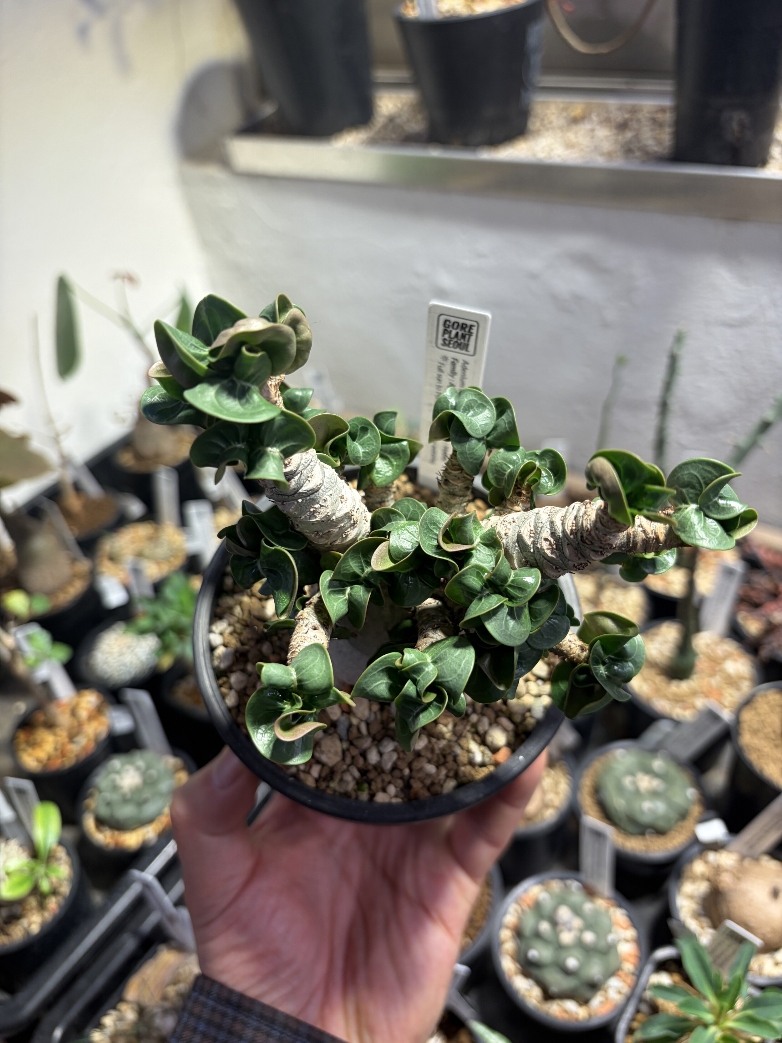 'Caudex' 식물들은 늦가을부터 자연스럽게 잎이 떨어집니다. (환경에 따라 잎이 지지 않을 수 있습니다.) 잎이 떨어지기 시작하면 서서히 물을 줄여나가며 휴면기인 겨울 동안에는 2-3주 1회 가볍게 분무 해주시면 됩니다.