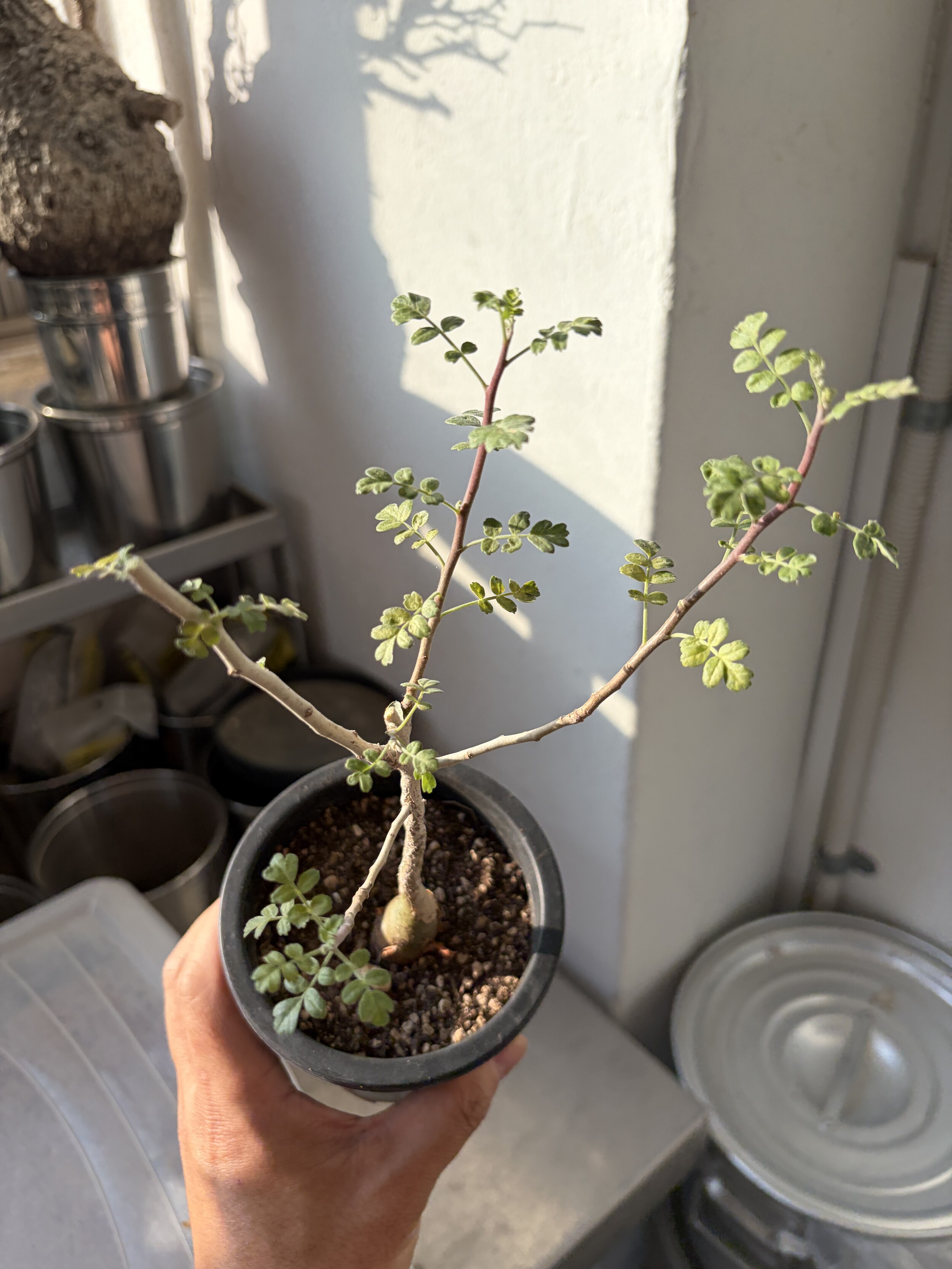 'Caudex' 식물들은 늦가을부터 자연스럽게 잎이 떨어집니다. (환경에 따라 잎이 지지 않을 수 있습니다.) 잎이 떨어지기 시작하면 서서히 물을 줄여나가며 휴면기인 겨울 동안에는 2-3주 1회 가볍게 분무 해주시면 됩니다.