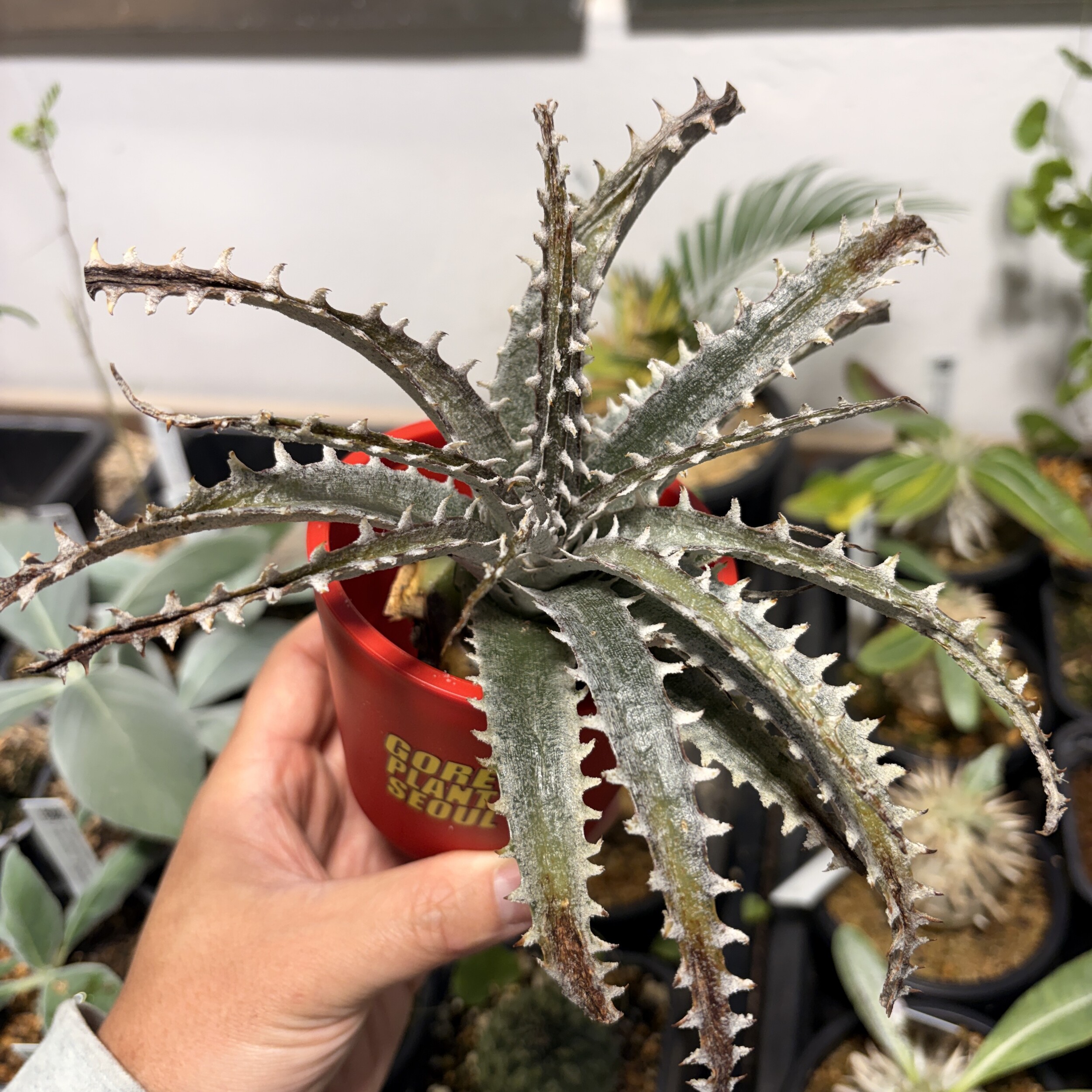 'Caudex' 식물들은 늦가을부터 자연스럽게 잎이 떨어집니다. (환경에 따라 잎이 지지 않을 수 있습니다.) 잎이 떨어지기 시작하면 서서히 물을 줄여나가며 휴면기인 겨울 동안에는 2-3주 1회 가볍게 분무 해주시면 됩니다.
