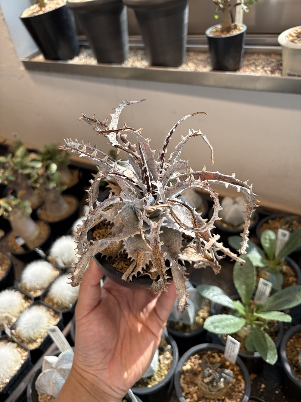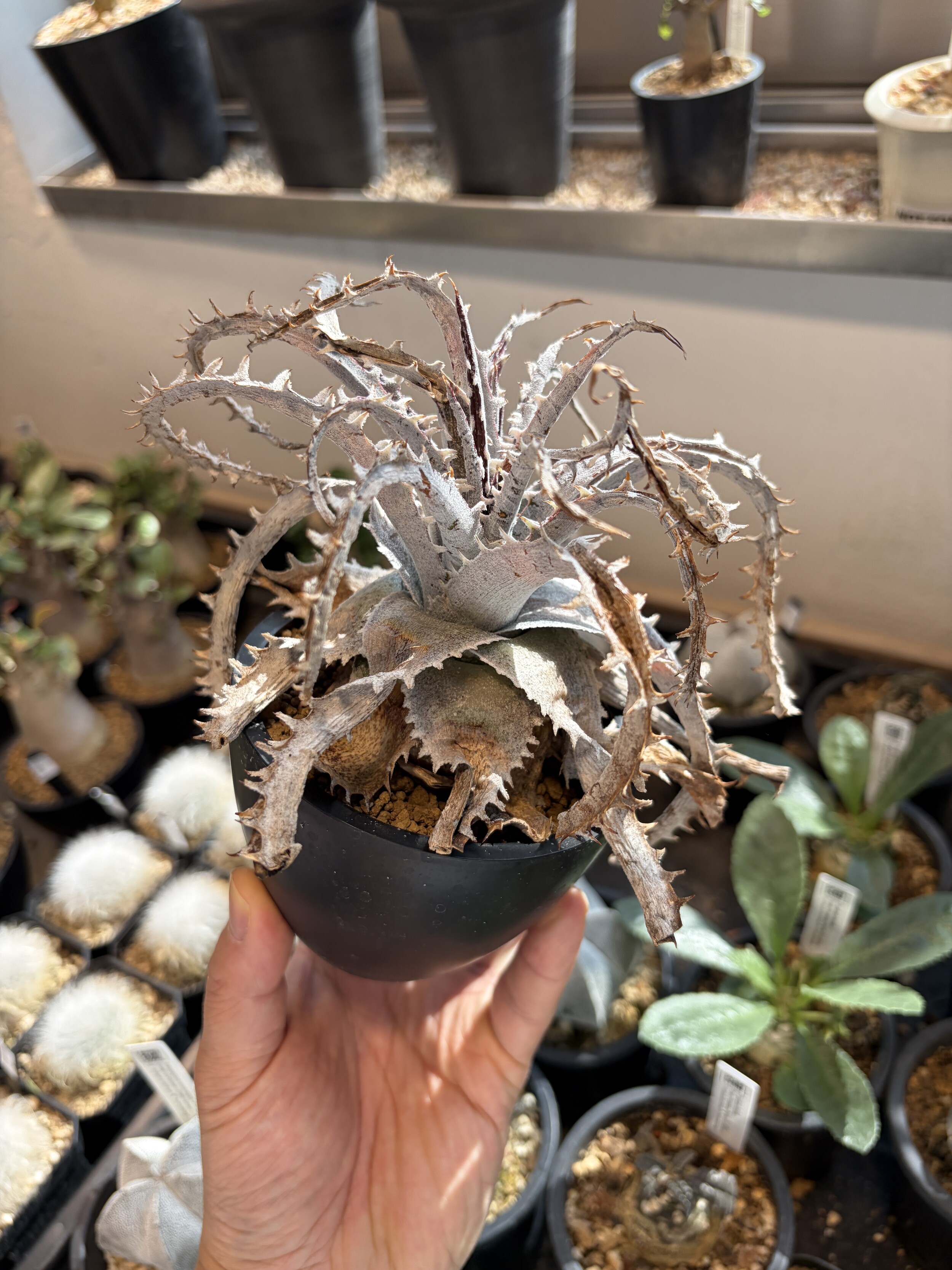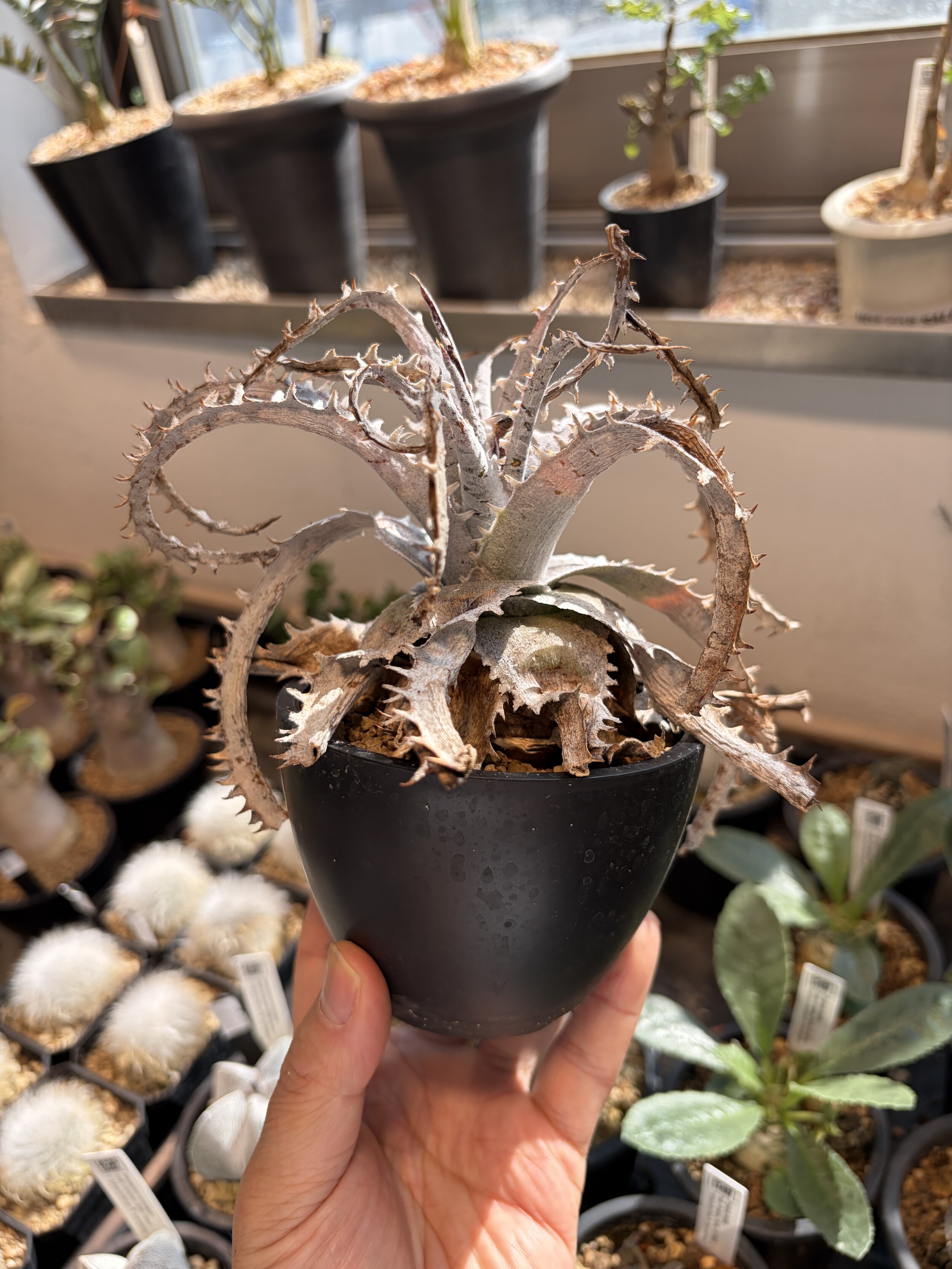 'Caudex' 식물들은 늦가을부터 자연스럽게 잎이 떨어집니다. (환경에 따라 잎이 지지 않을 수 있습니다.) 잎이 떨어지기 시작하면 서서히 물을 줄여나가며 휴면기인 겨울 동안에는 2-3주 1회 가볍게 분무 해주시면 됩니다.