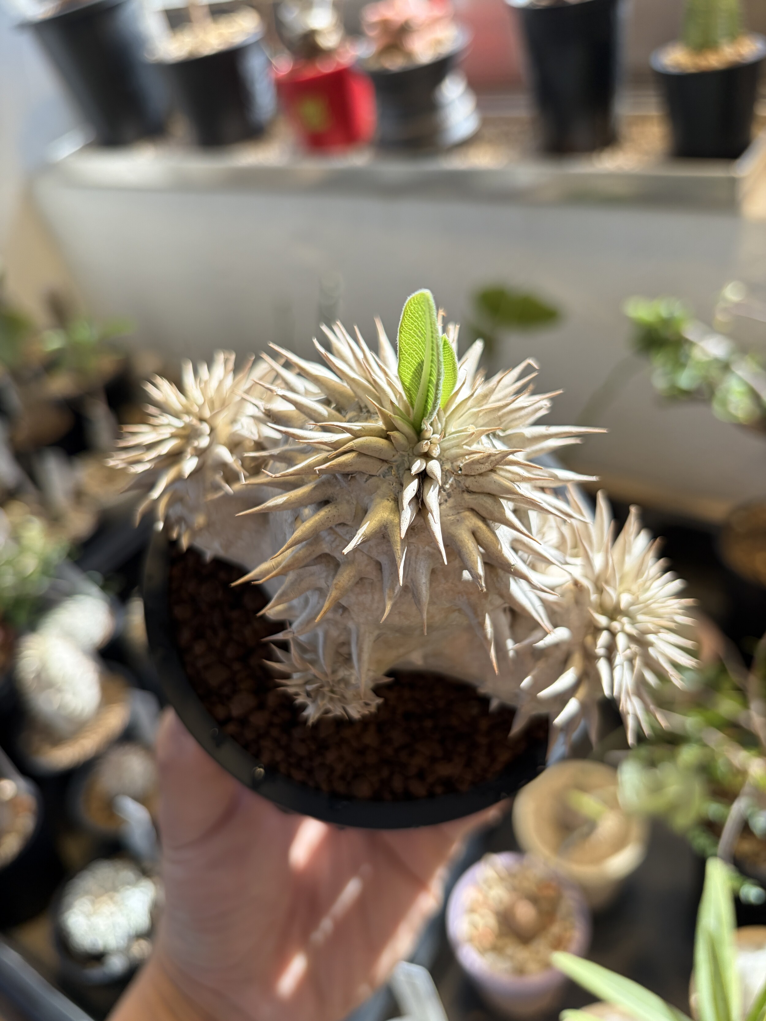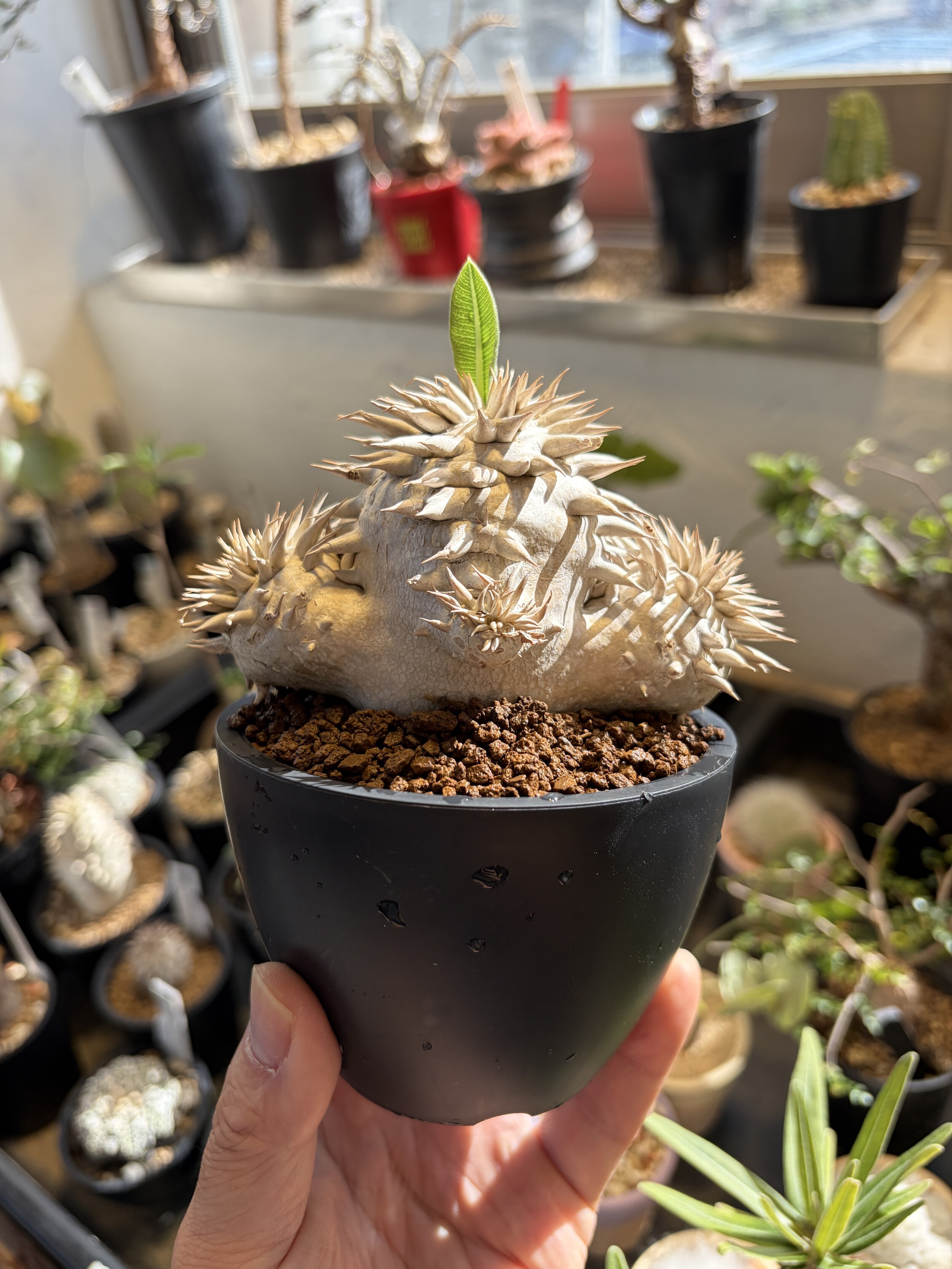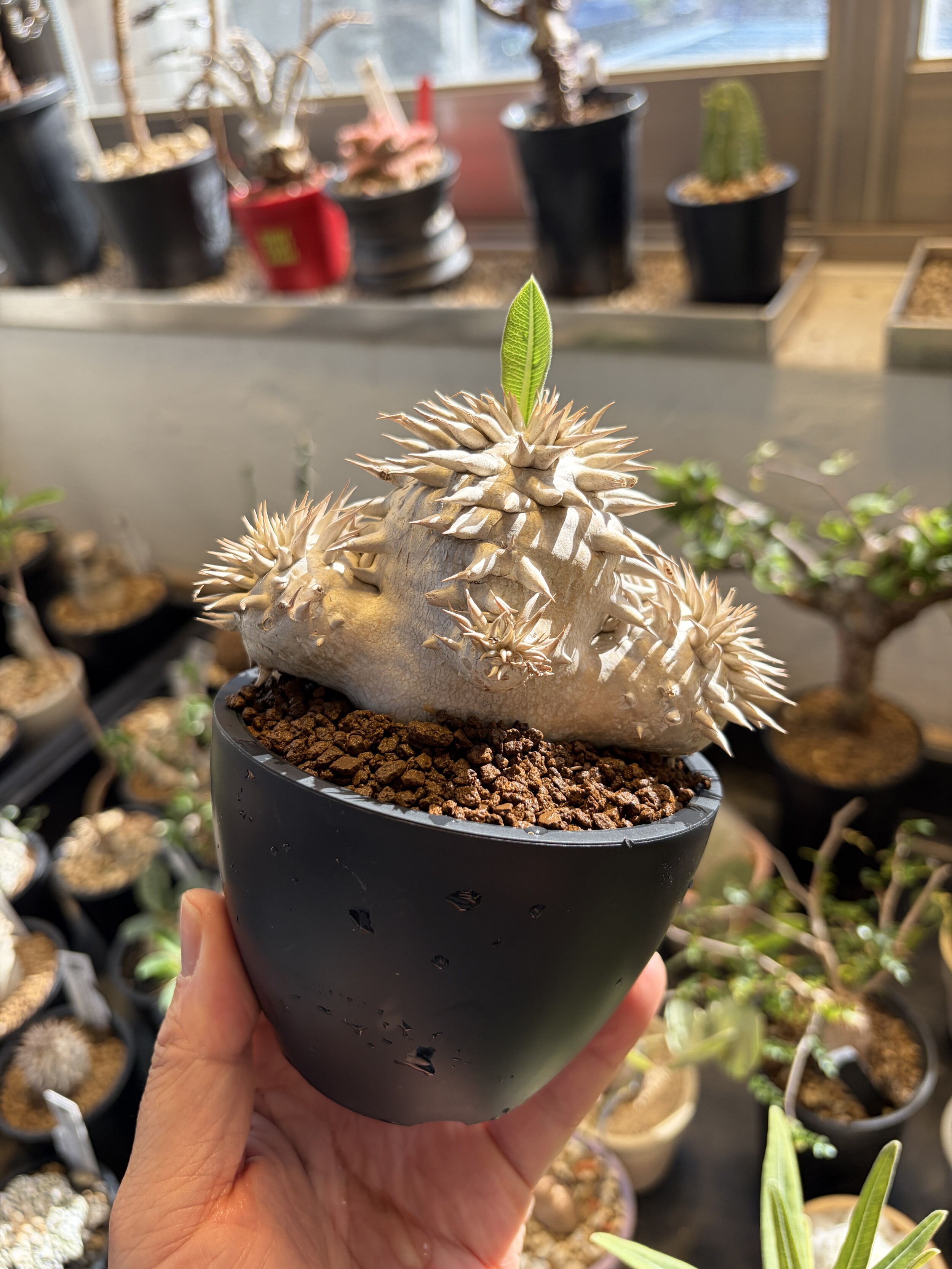'Caudex' 식물들은 늦가을부터 자연스럽게 잎이 떨어집니다. (환경에 따라 잎이 지지 않을 수 있습니다.) 잎이 떨어지기 시작하면 서서히 물을 줄여나가며 휴면기인 겨울 동안에는 2-3주 1회 가볍게 분무 해주시면 됩니다.