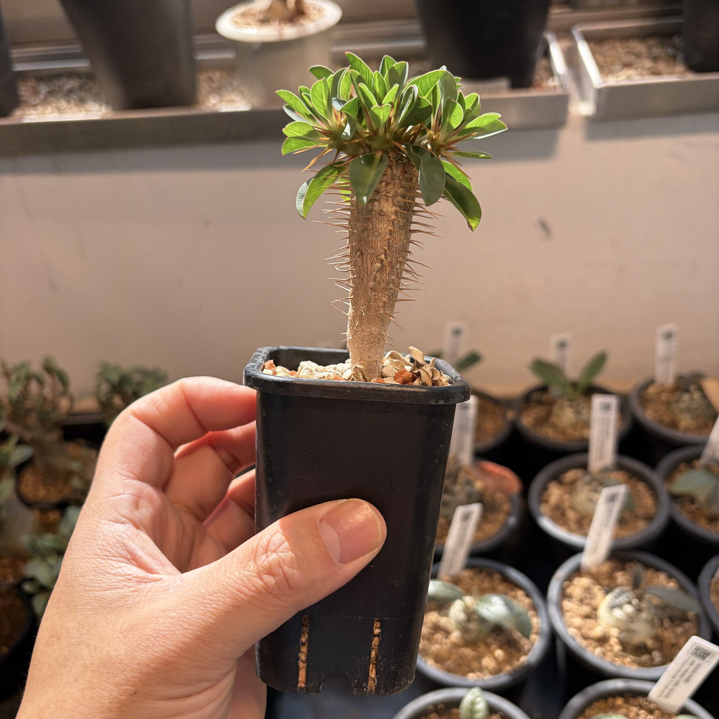 'Caudex' 식물들은 늦가을부터 자연스럽게 잎이 떨어집니다. (환경에 따라 잎이 지지 않을 수 있습니다.) 잎이 떨어지기 시작하면 서서히 물을 줄여나가며 휴면기인 겨울 동안에는 2-3주 1회 가볍게 분무 해주시면 됩니다.