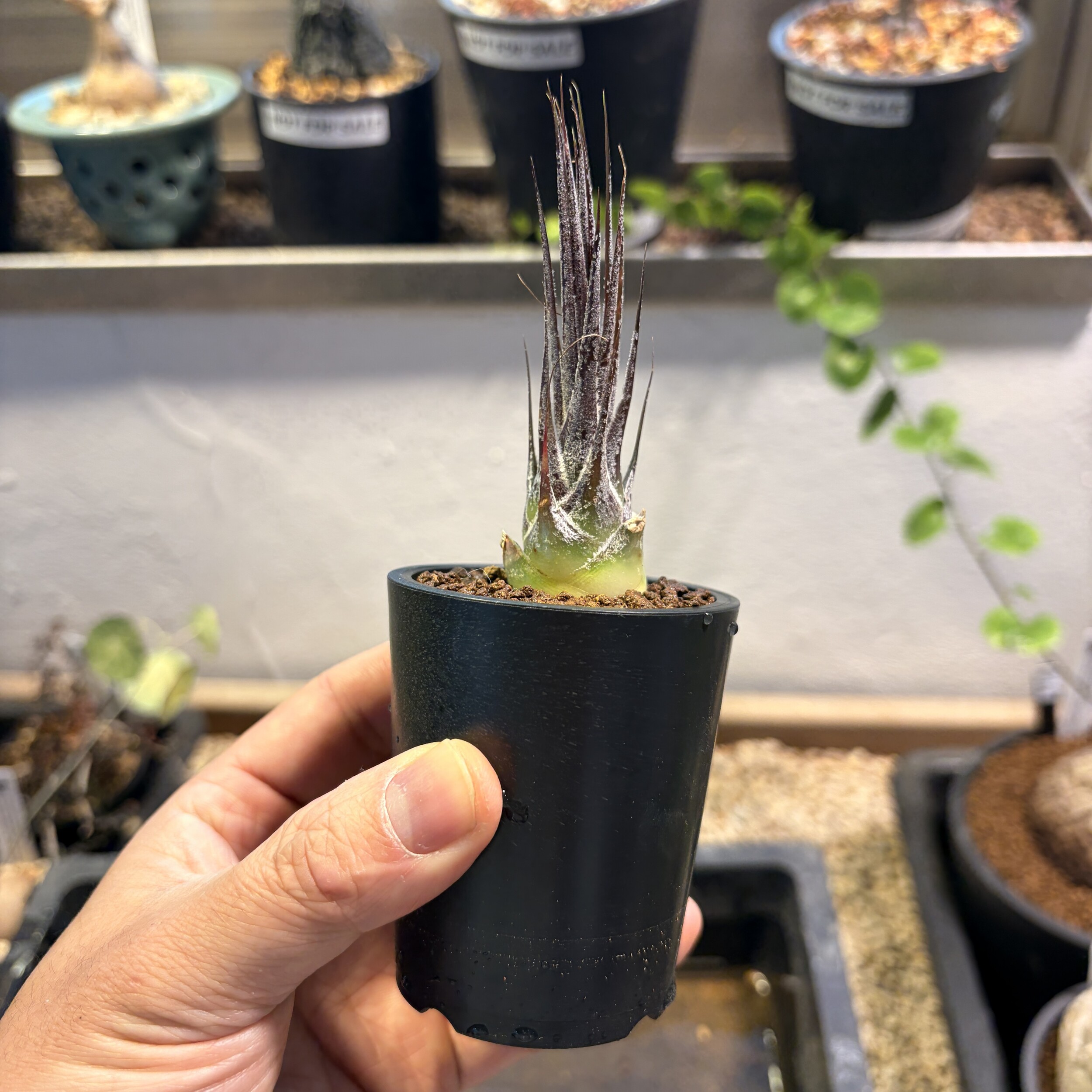 'Caudex' 식물들은 늦가을부터 자연스럽게 잎이 떨어집니다. (환경에 따라 잎이 지지 않을 수 있습니다.) 잎이 떨어지기 시작하면 서서히 물을 줄여나가며 휴면기인 겨울 동안에는 2-3주 1회 가볍게 분무 해주시면 됩니다.