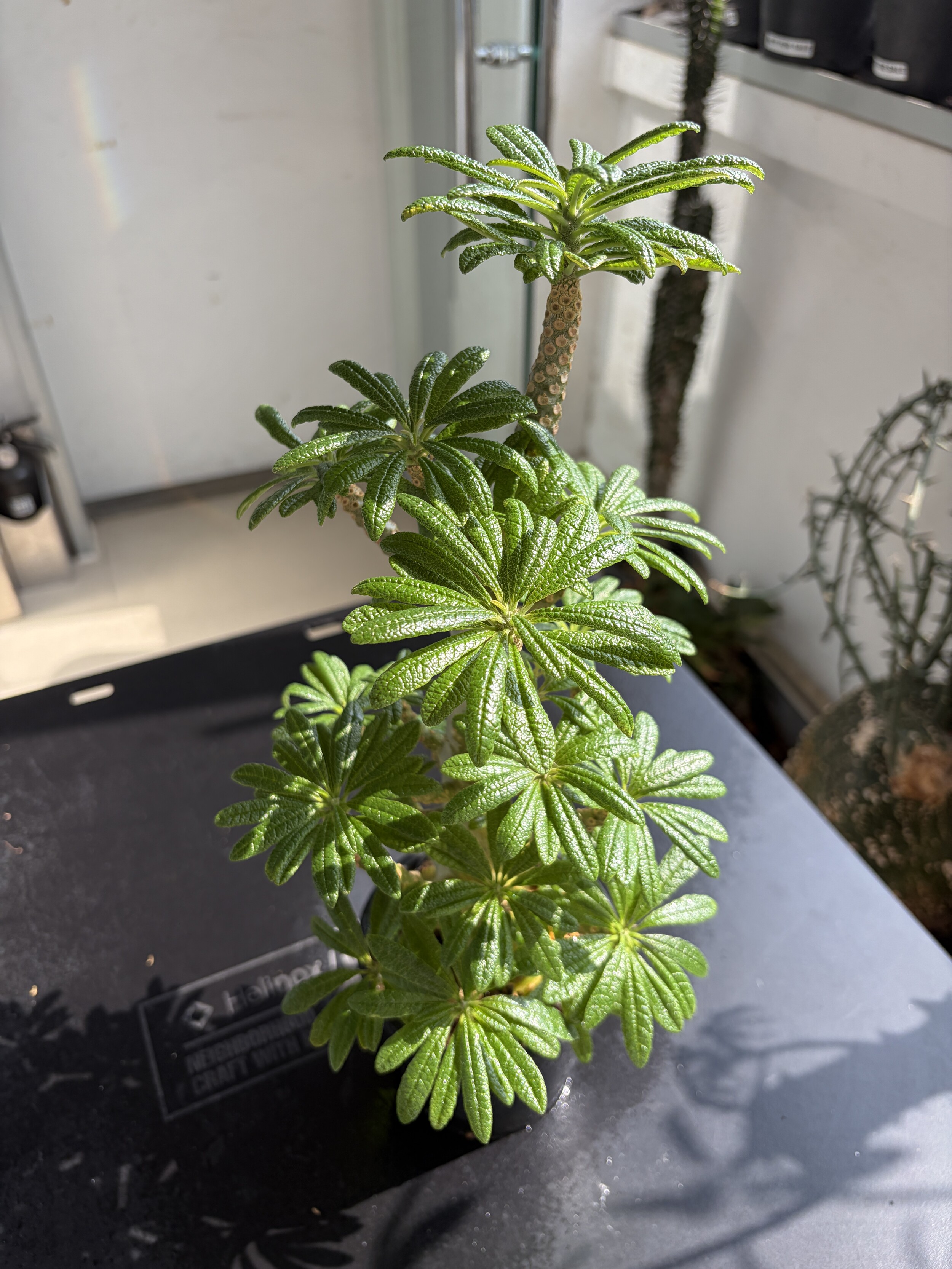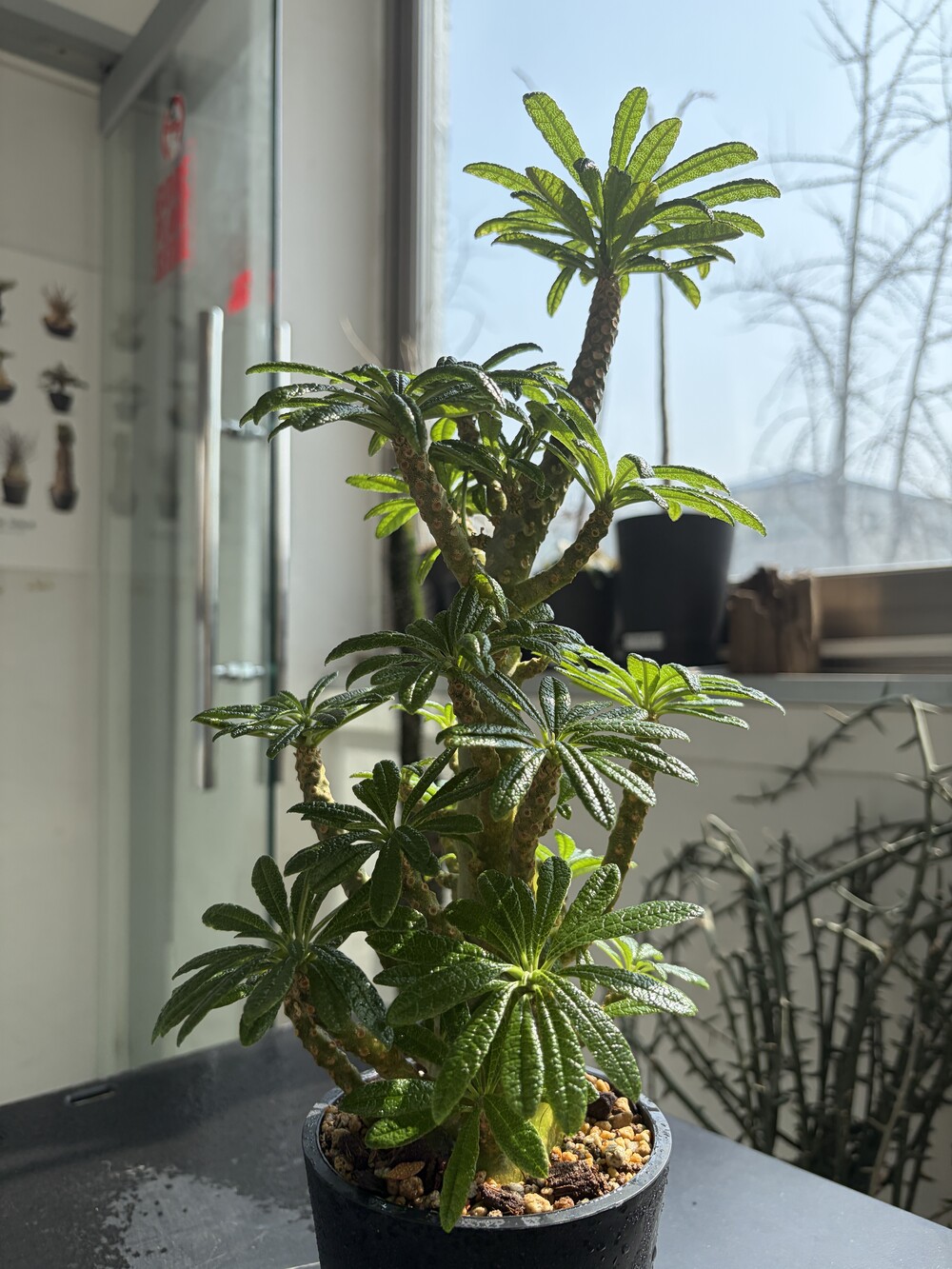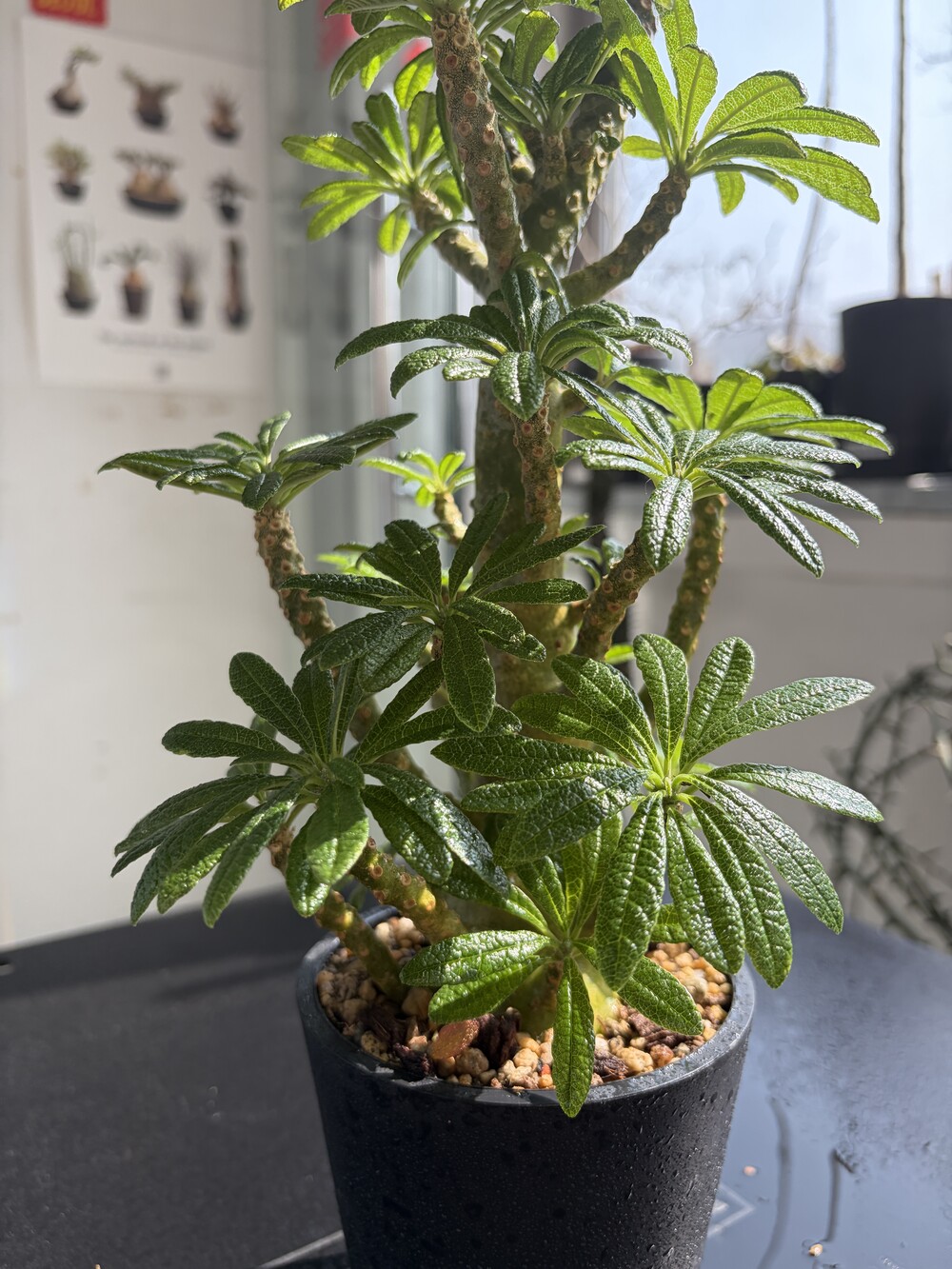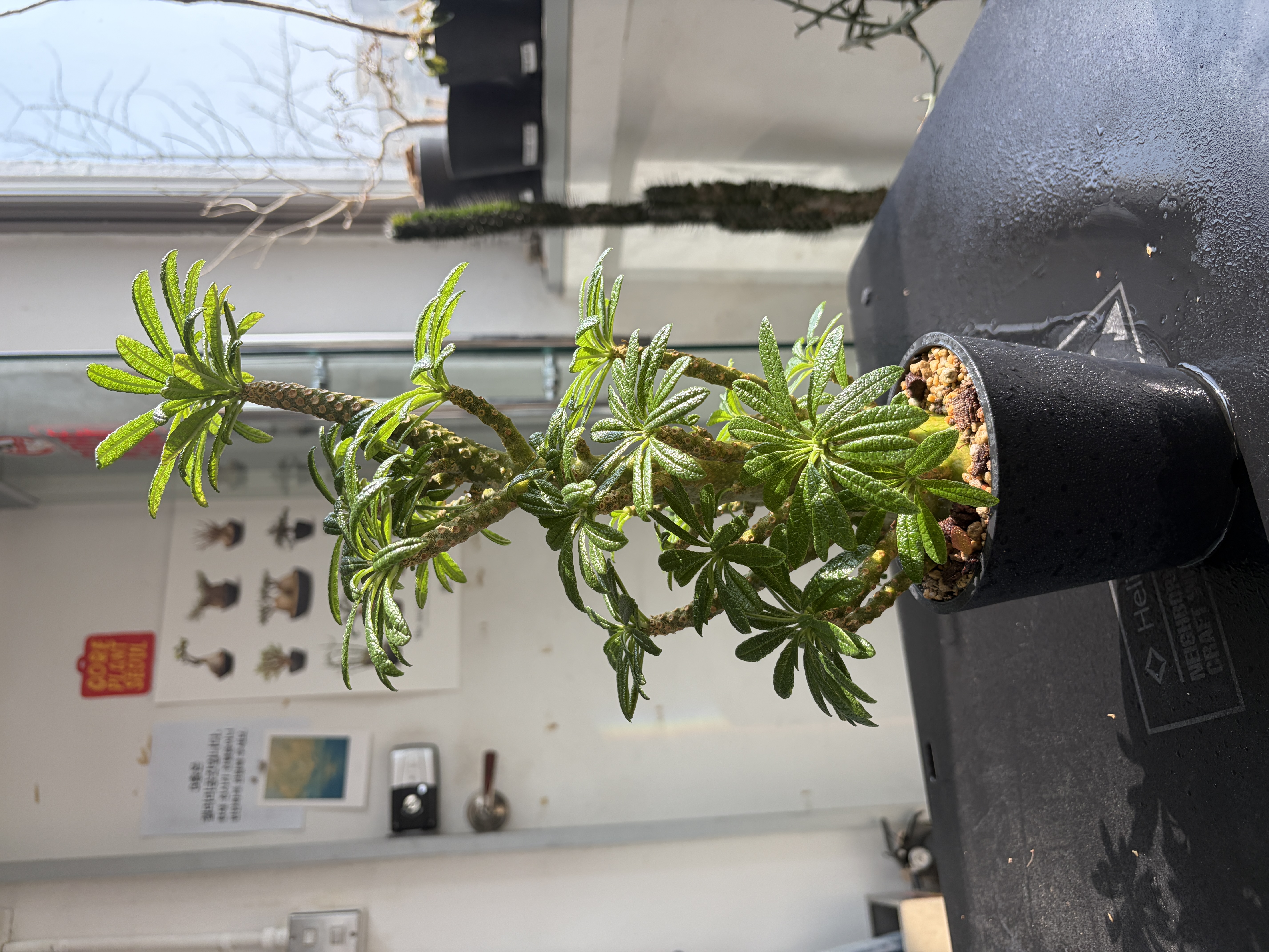 'Caudex' 식물들은 늦가을부터 자연스럽게 잎이 떨어집니다. (환경에 따라 잎이 지지 않을 수 있습니다.) 잎이 떨어지기 시작하면 서서히 물을 줄여나가며 휴면기인 겨울 동안에는 2-3주 1회 가볍게 분무 해주시면 됩니다.