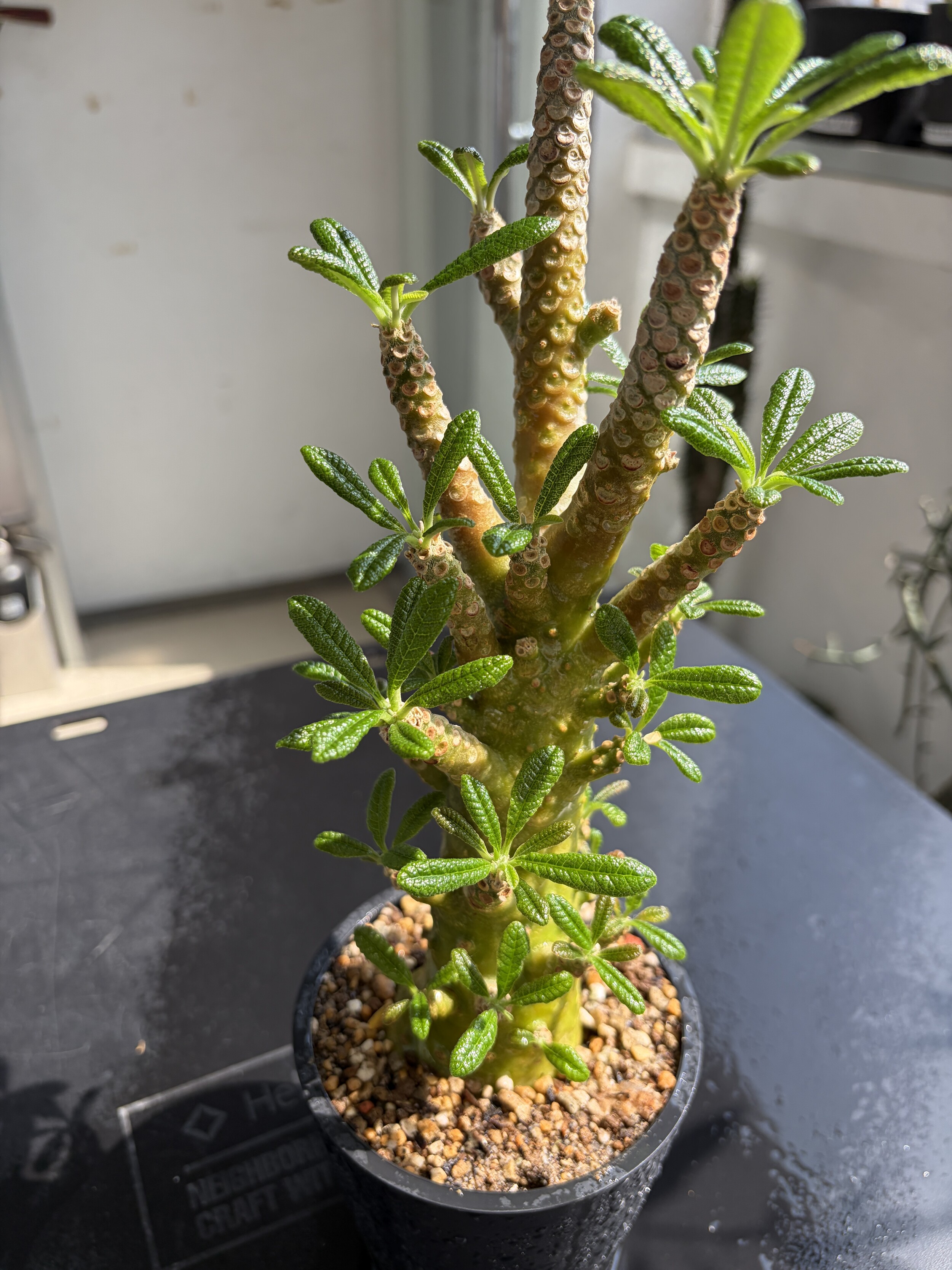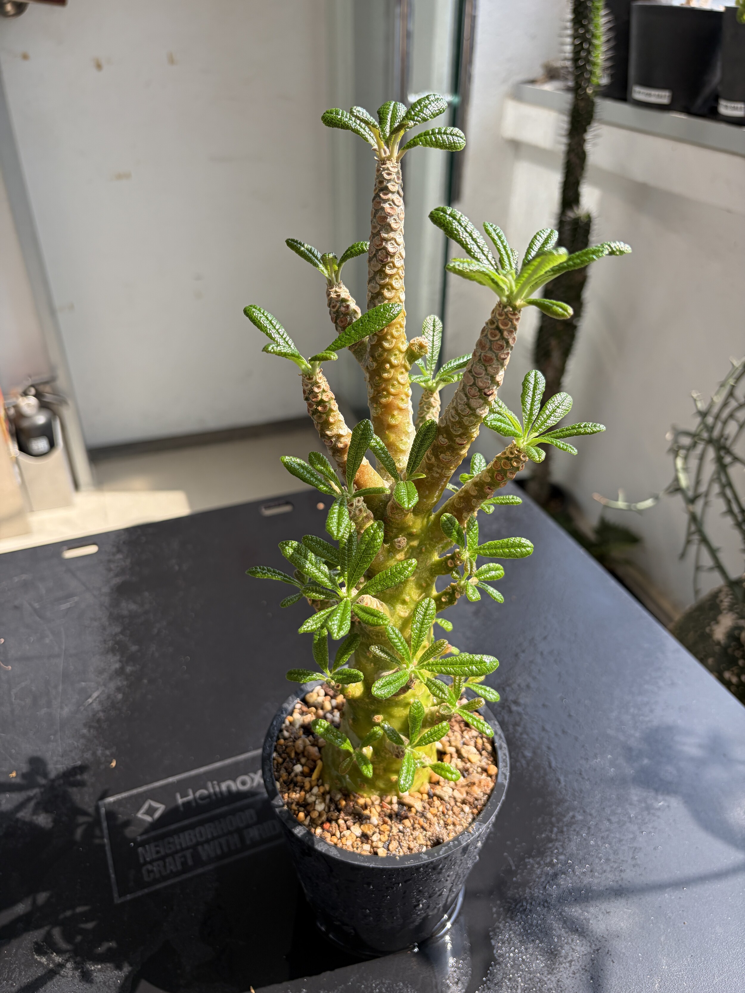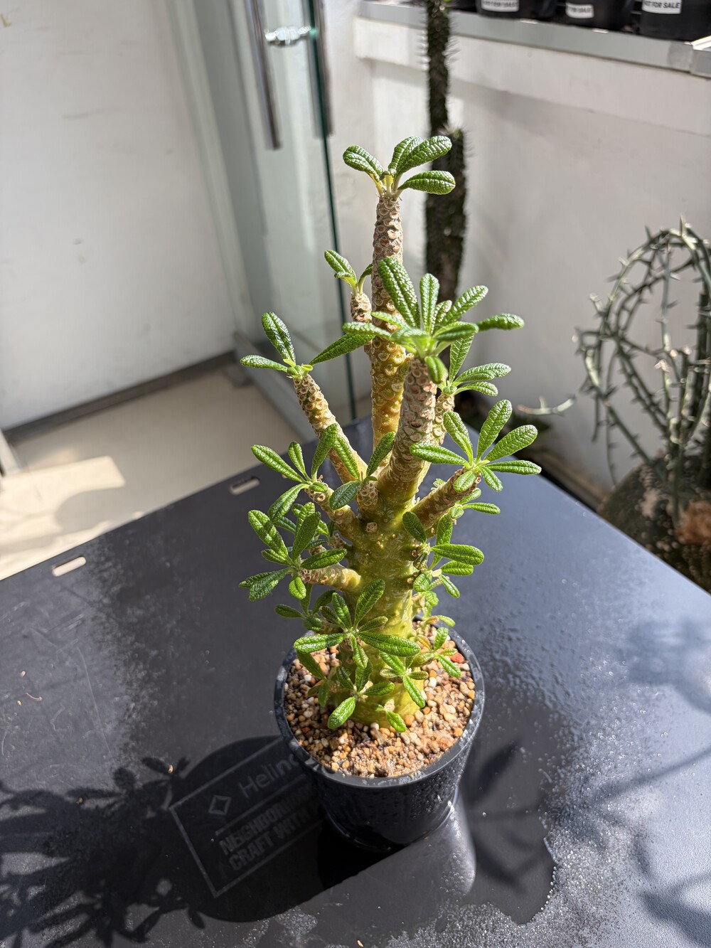 'Caudex' 식물들은 늦가을부터 자연스럽게 잎이 떨어집니다. (환경에 따라 잎이 지지 않을 수 있습니다.) 잎이 떨어지기 시작하면 서서히 물을 줄여나가며 휴면기인 겨울 동안에는 2-3주 1회 가볍게 분무 해주시면 됩니다.