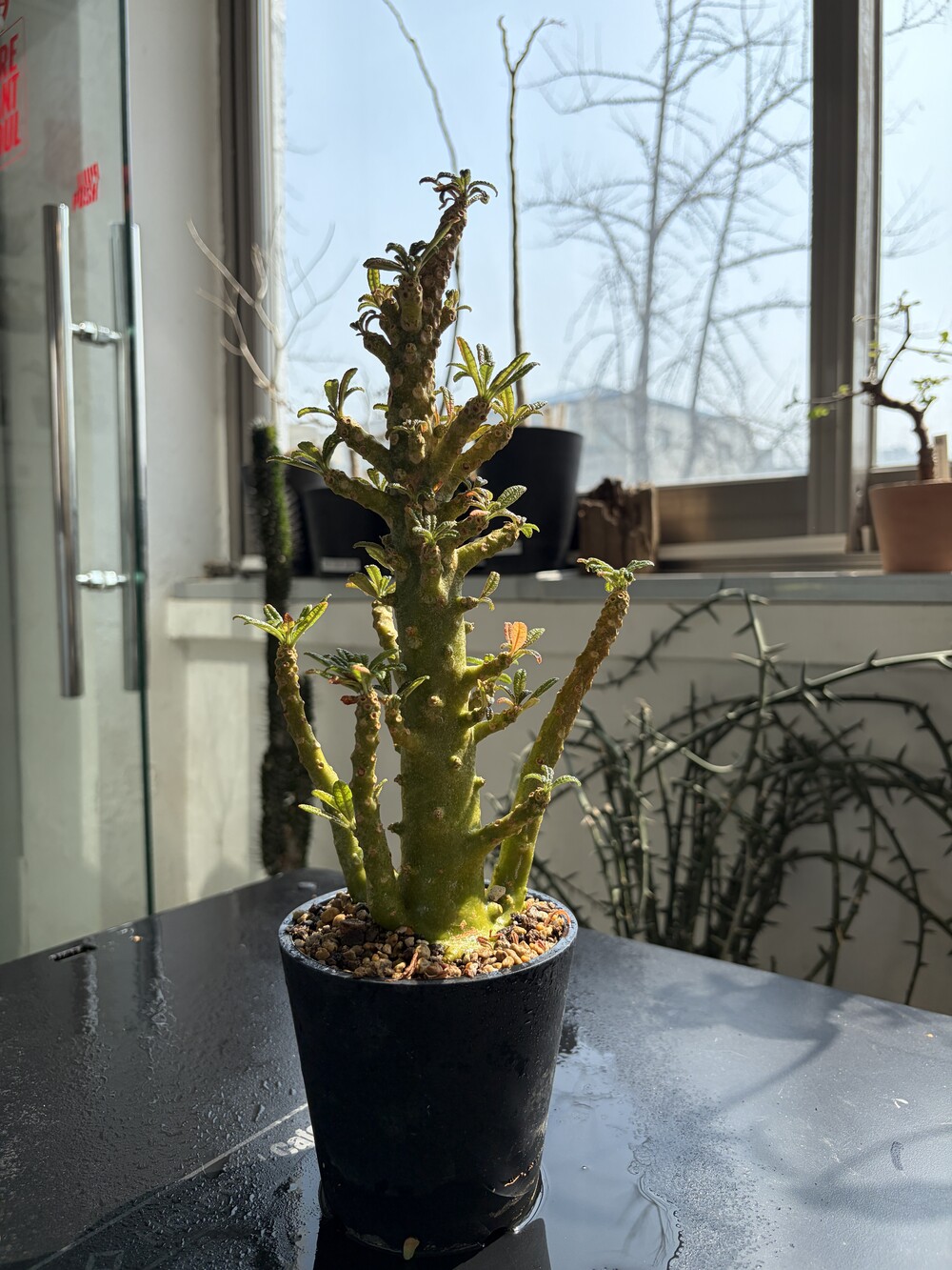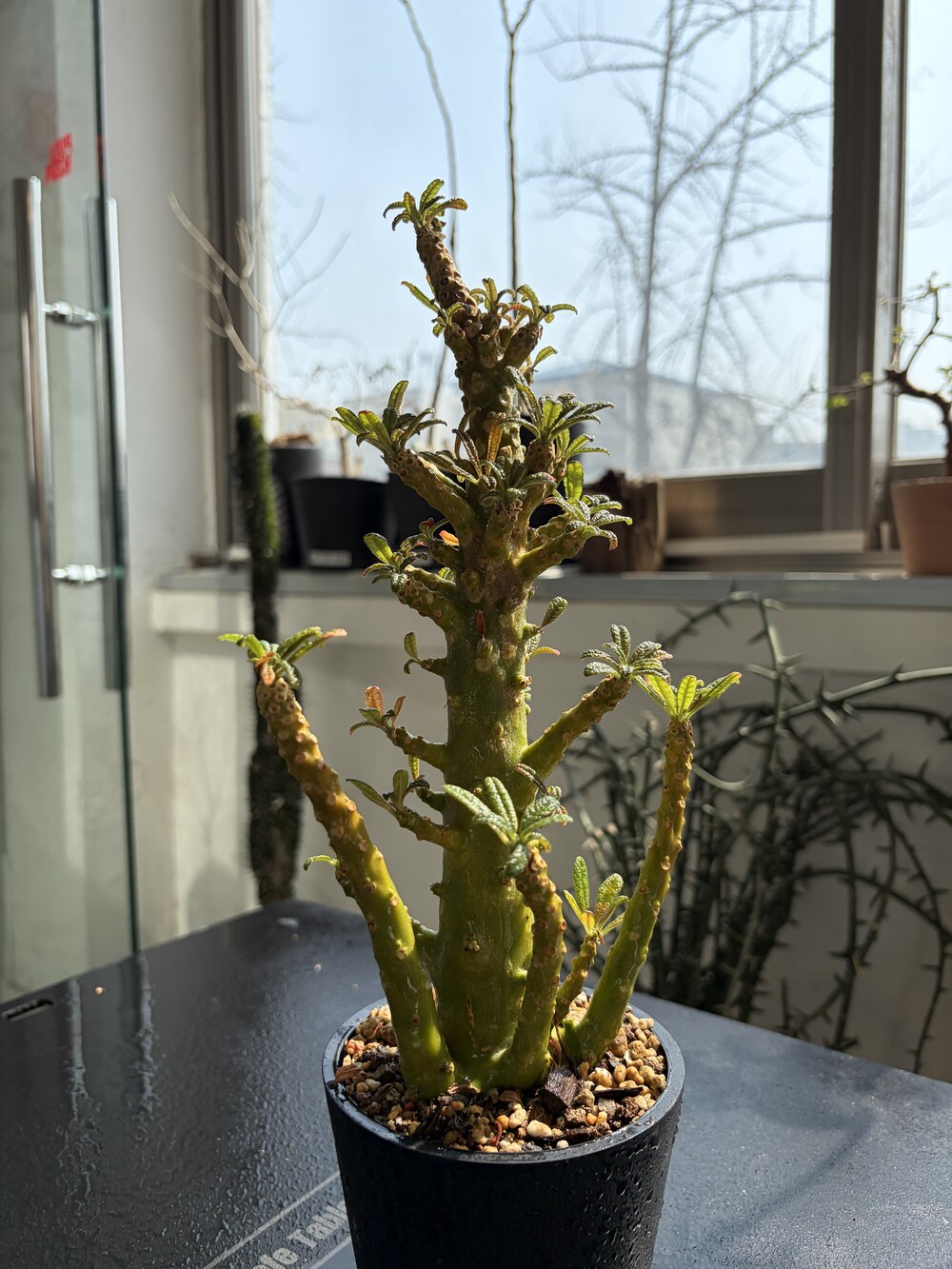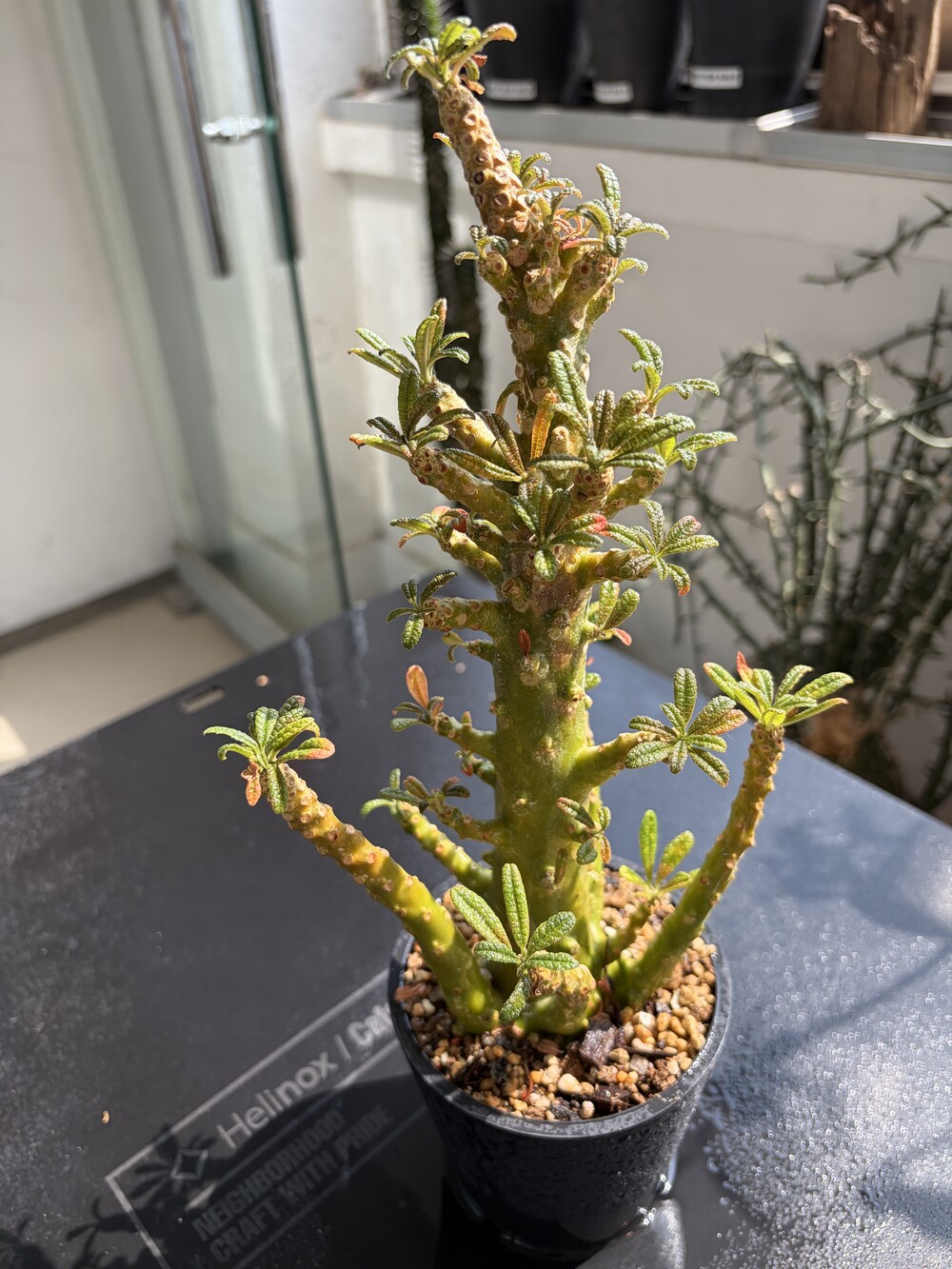 'Caudex' 식물들은 늦가을부터 자연스럽게 잎이 떨어집니다. (환경에 따라 잎이 지지 않을 수 있습니다.) 잎이 떨어지기 시작하면 서서히 물을 줄여나가며 휴면기인 겨울 동안에는 2-3주 1회 가볍게 분무 해주시면 됩니다.