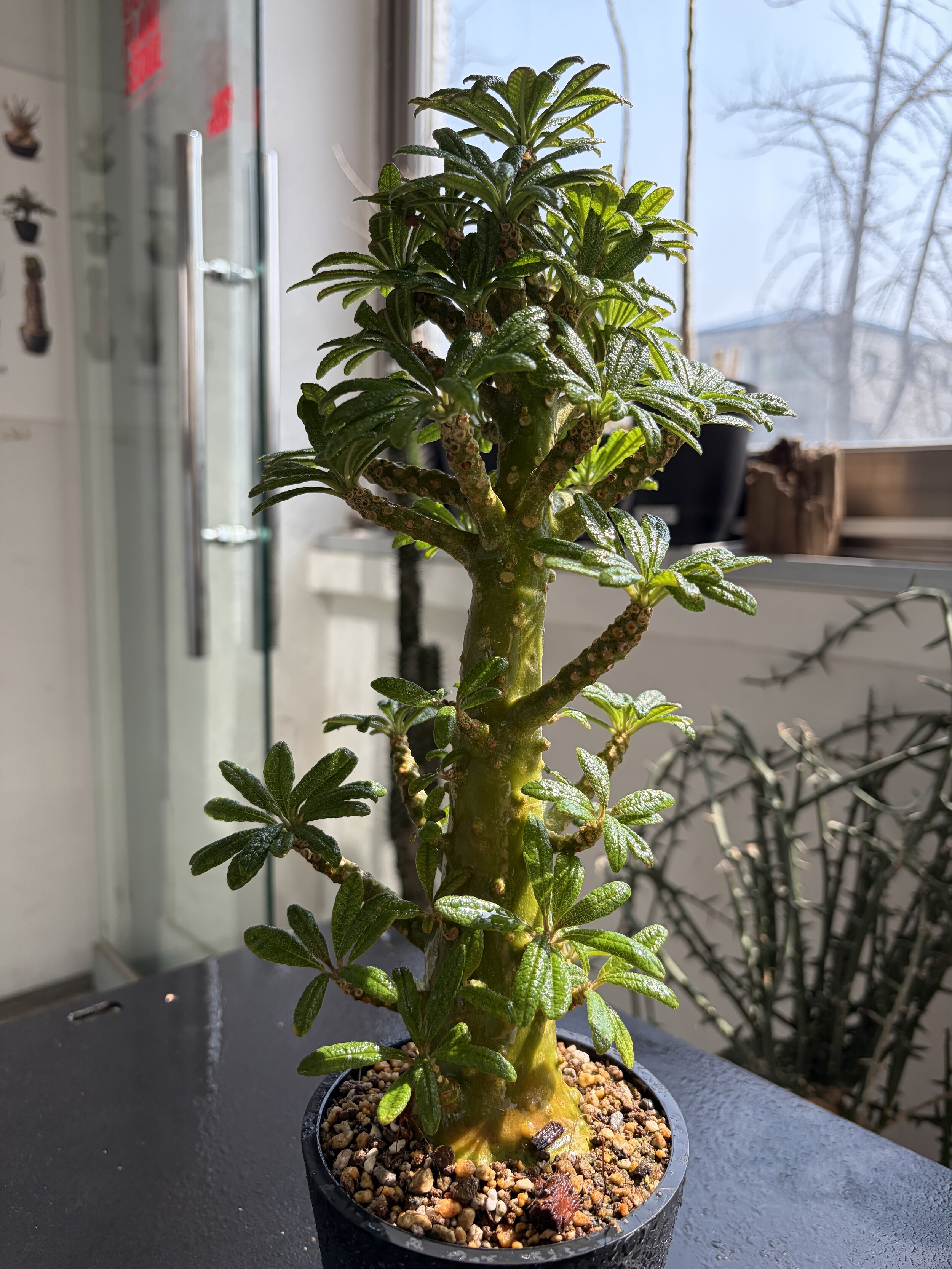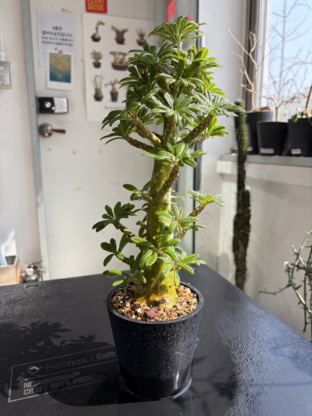 'Caudex' 식물들은 늦가을부터 자연스럽게 잎이 떨어집니다. (환경에 따라 잎이 지지 않을 수 있습니다.) 잎이 떨어지기 시작하면 서서히 물을 줄여나가며 휴면기인 겨울 동안에는 2-3주 1회 가볍게 분무 해주시면 됩니다.