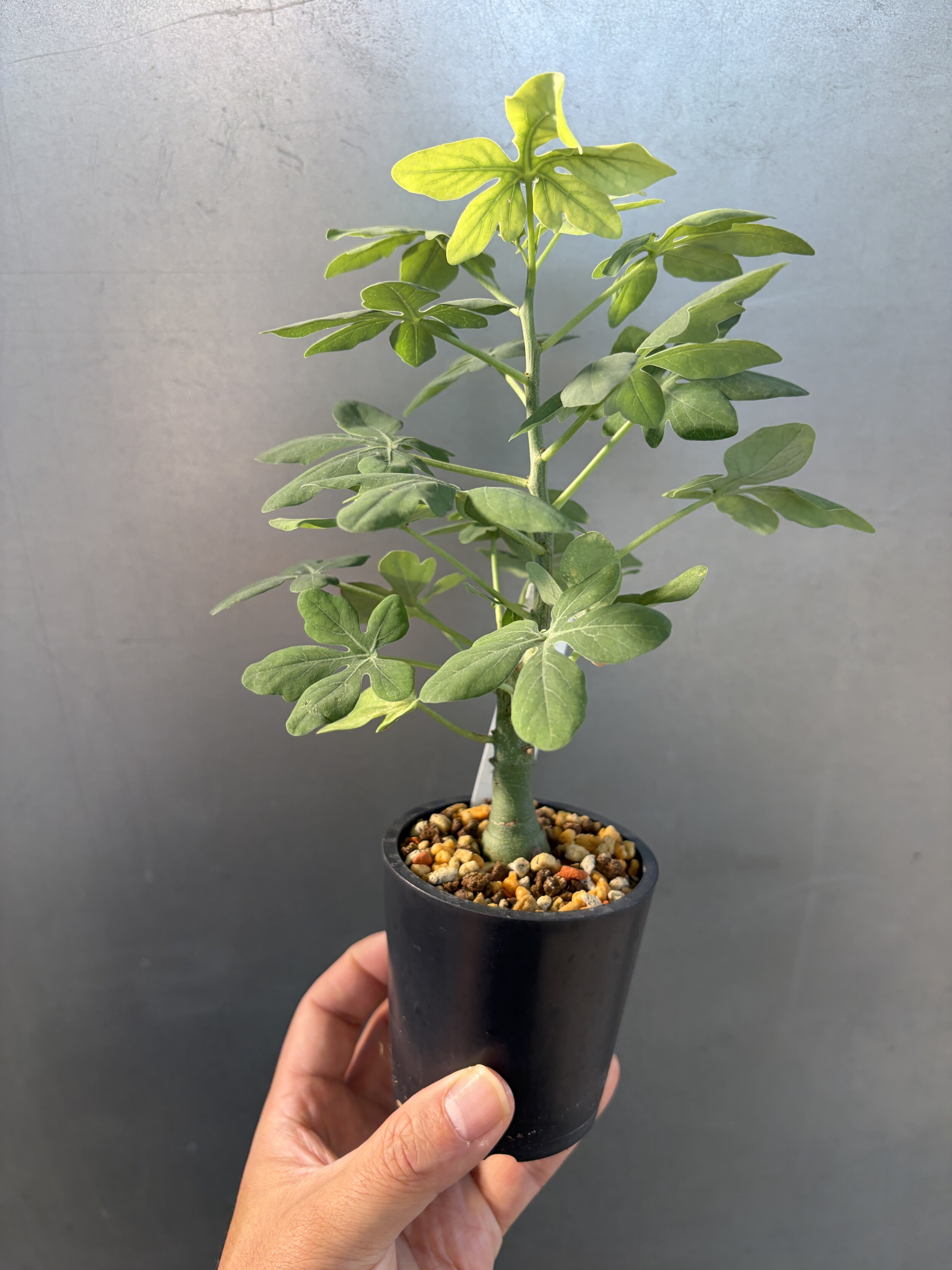 'Caudex' 식물들은 늦가을부터 자연스럽게 잎이 떨어집니다. (환경에 따라 잎이 지지 않을 수 있습니다.) 잎이 떨어지기 시작하면 서서히 물을 줄여나가며 휴면기인 겨울 동안에는 2-3주 1회 가볍게 분무 해주시면 됩니다.