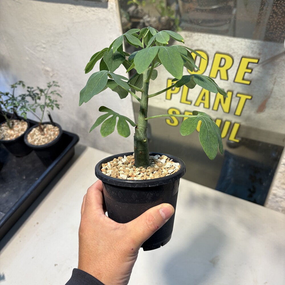 'Caudex' 식물들은 늦가을부터 자연스럽게 잎이 떨어집니다. (환경에 따라 잎이 지지 않을 수 있습니다.) 잎이 떨어지기 시작하면 서서히 물을 줄여나가며 휴면기인 겨울 동안에는 2-3주 1회 가볍게 분무 해주시면 됩니다.