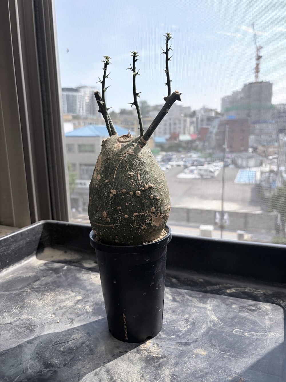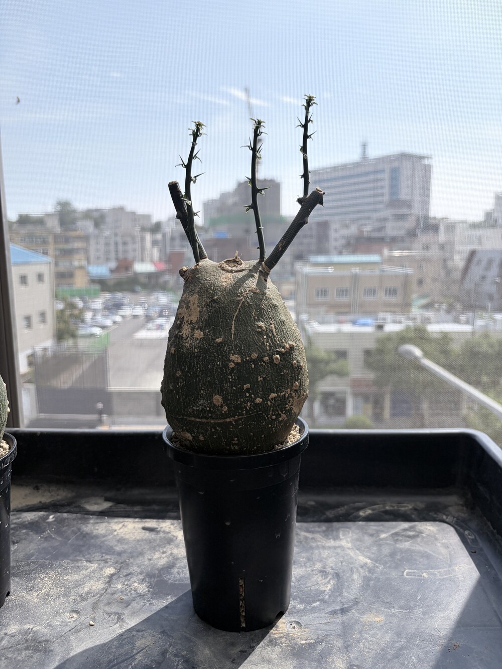 'Caudex' 식물들은 늦가을부터 자연스럽게 잎이 떨어집니다. (환경에 따라 잎이 지지 않을 수 있습니다.) 잎이 떨어지기 시작하면 서서히 물을 줄여나가며 휴면기인 겨울 동안에는 2-3주 1회 가볍게 분무 해주시면 됩니다.