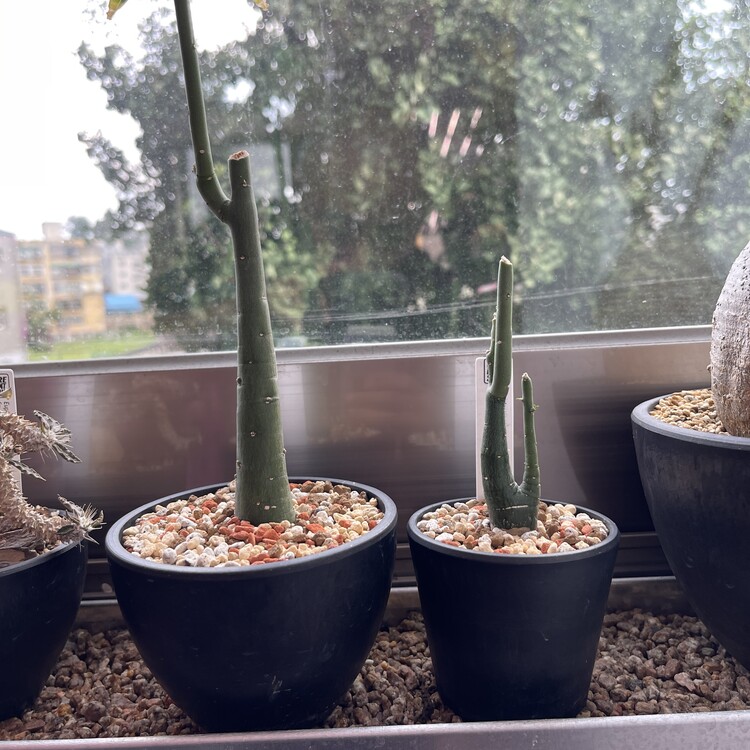 'Caudex' 식물들은 늦가을부터 자연스럽게 잎이 떨어집니다. (환경에 따라 잎이 지지 않을 수 있습니다.) 잎이 떨어지기 시작하면 서서히 물을 줄여나가며 휴면기인 겨울 동안에는 2-3주 1회 가볍게 분무 해주시면 됩니다.