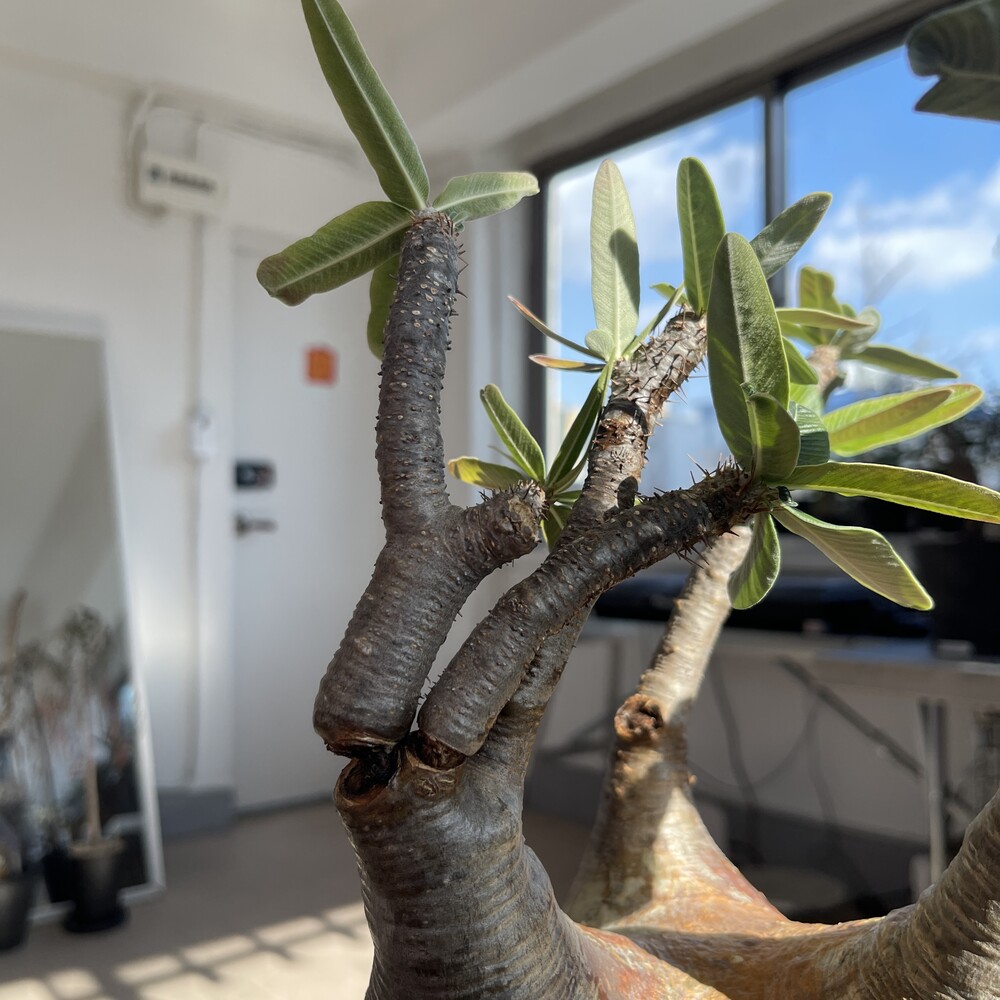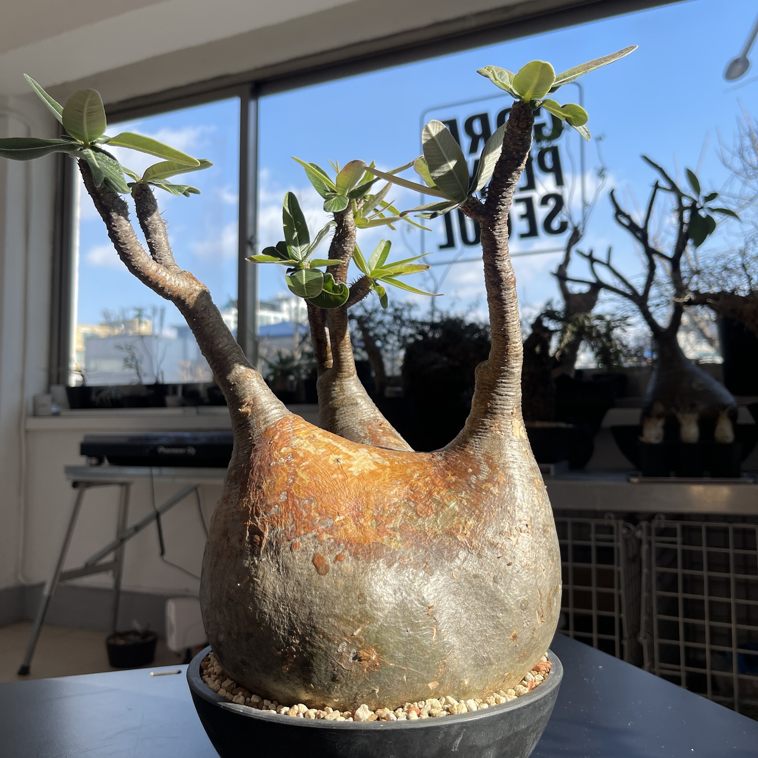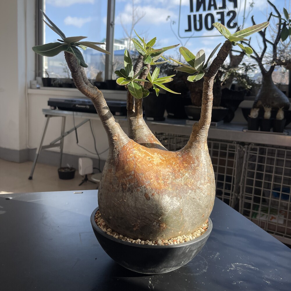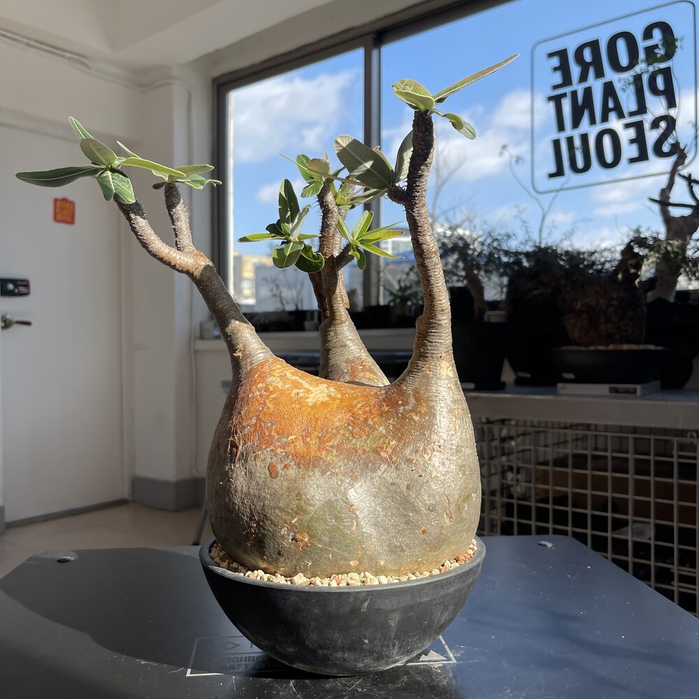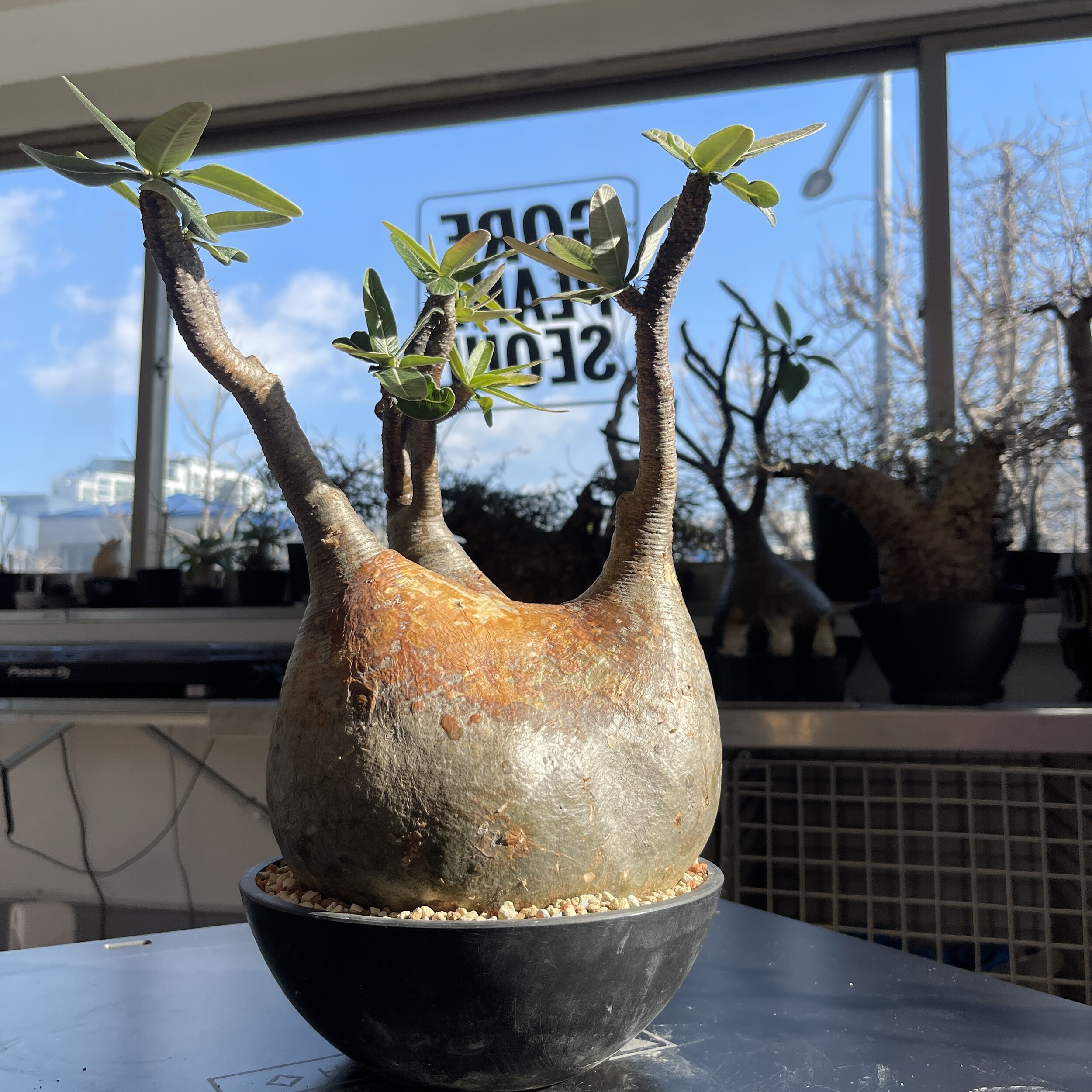 'Caudex' 식물들은 늦가을부터 자연스럽게 잎이 떨어집니다. (환경에 따라 잎이 지지 않을 수 있습니다.) 잎이 떨어지기 시작하면 서서히 물을 줄여나가며 휴면기인 겨울 동안에는 2-3주 1회 가볍게 분무 해주시면 됩니다.