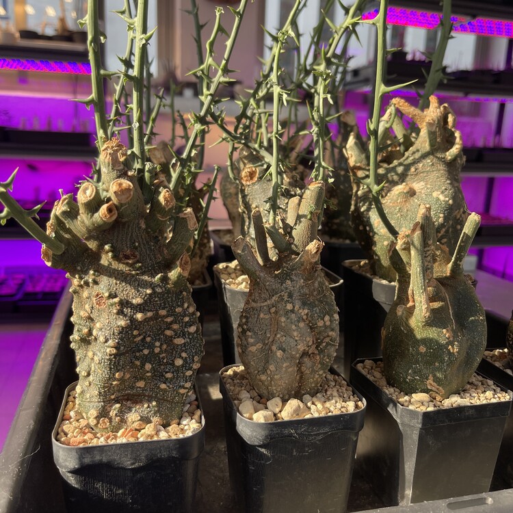 'Caudex' 식물들은 늦가을부터 자연스럽게 잎이 떨어집니다. (환경에 따라 잎이 지지 않을 수 있습니다.) 잎이 떨어지기 시작하면 서서히 물을 줄여나가며 휴면기인 겨울 동안에는 2-3주 1회 가볍게 분무 해주시면 됩니다.