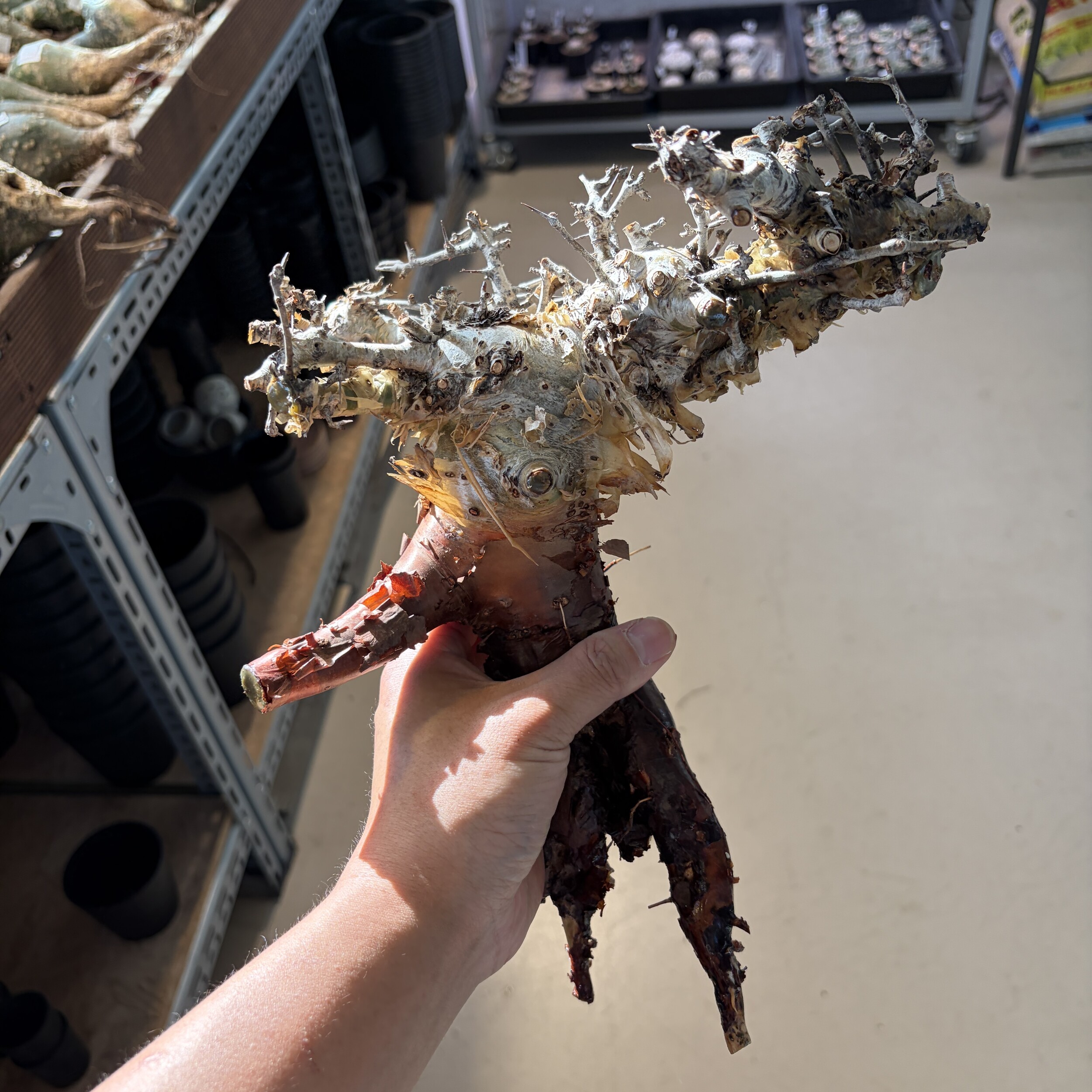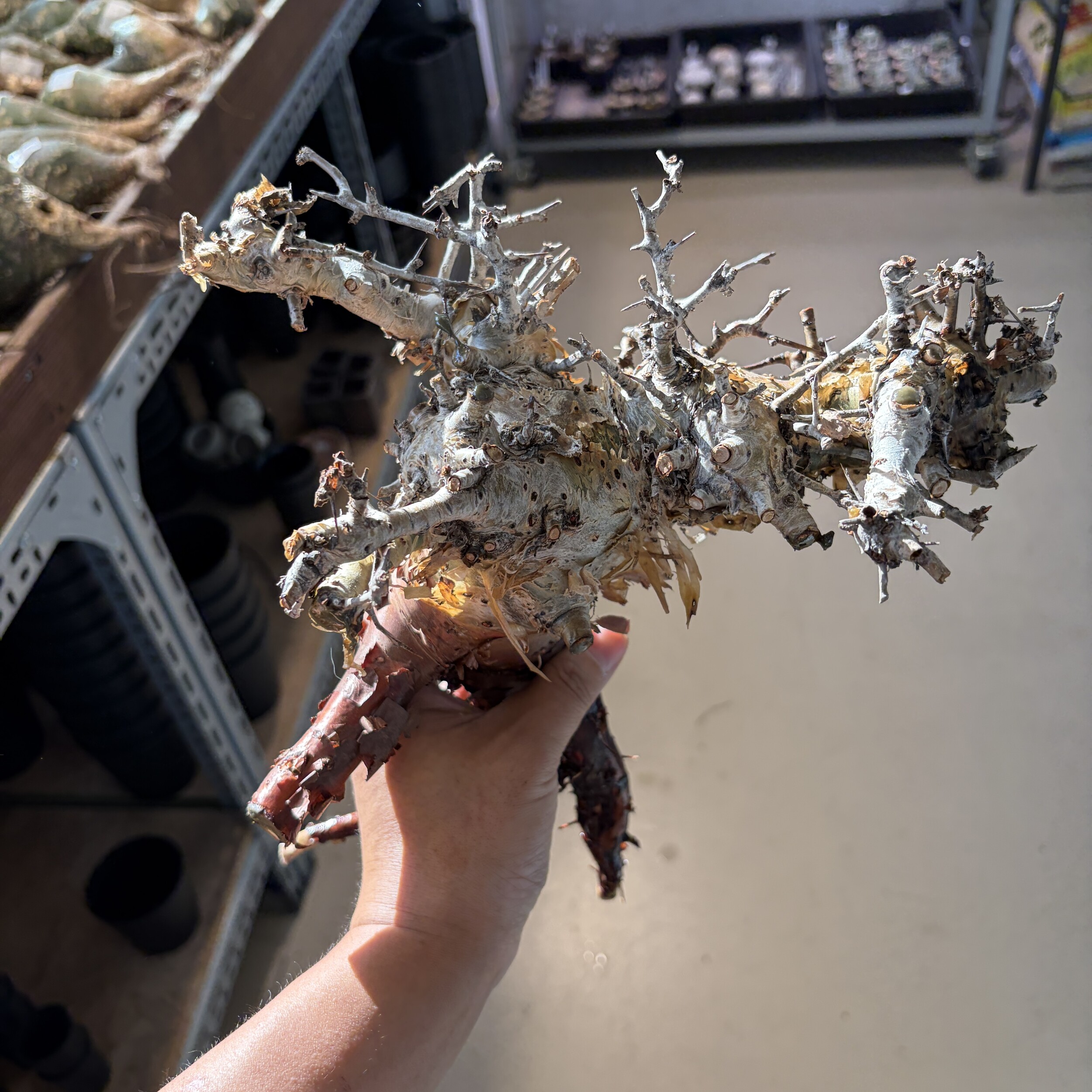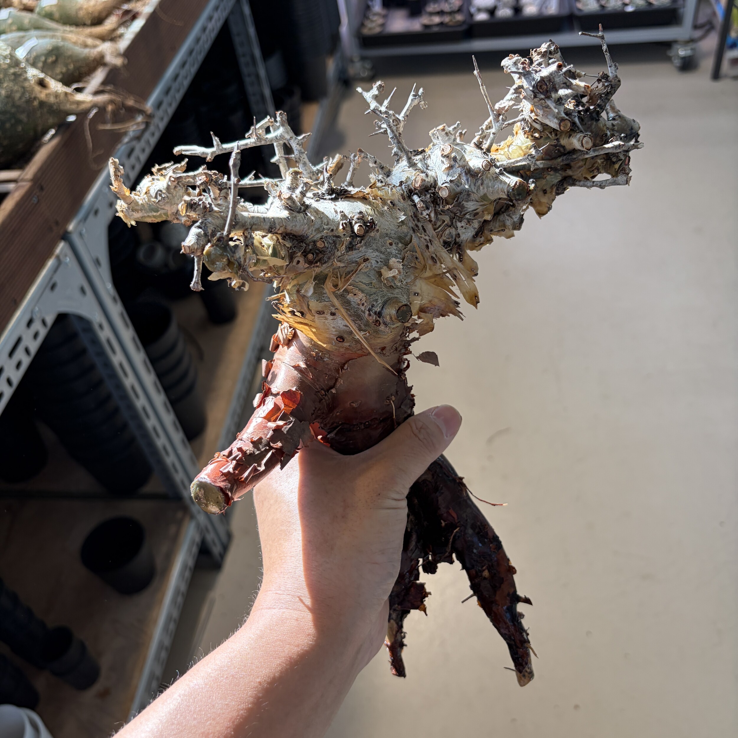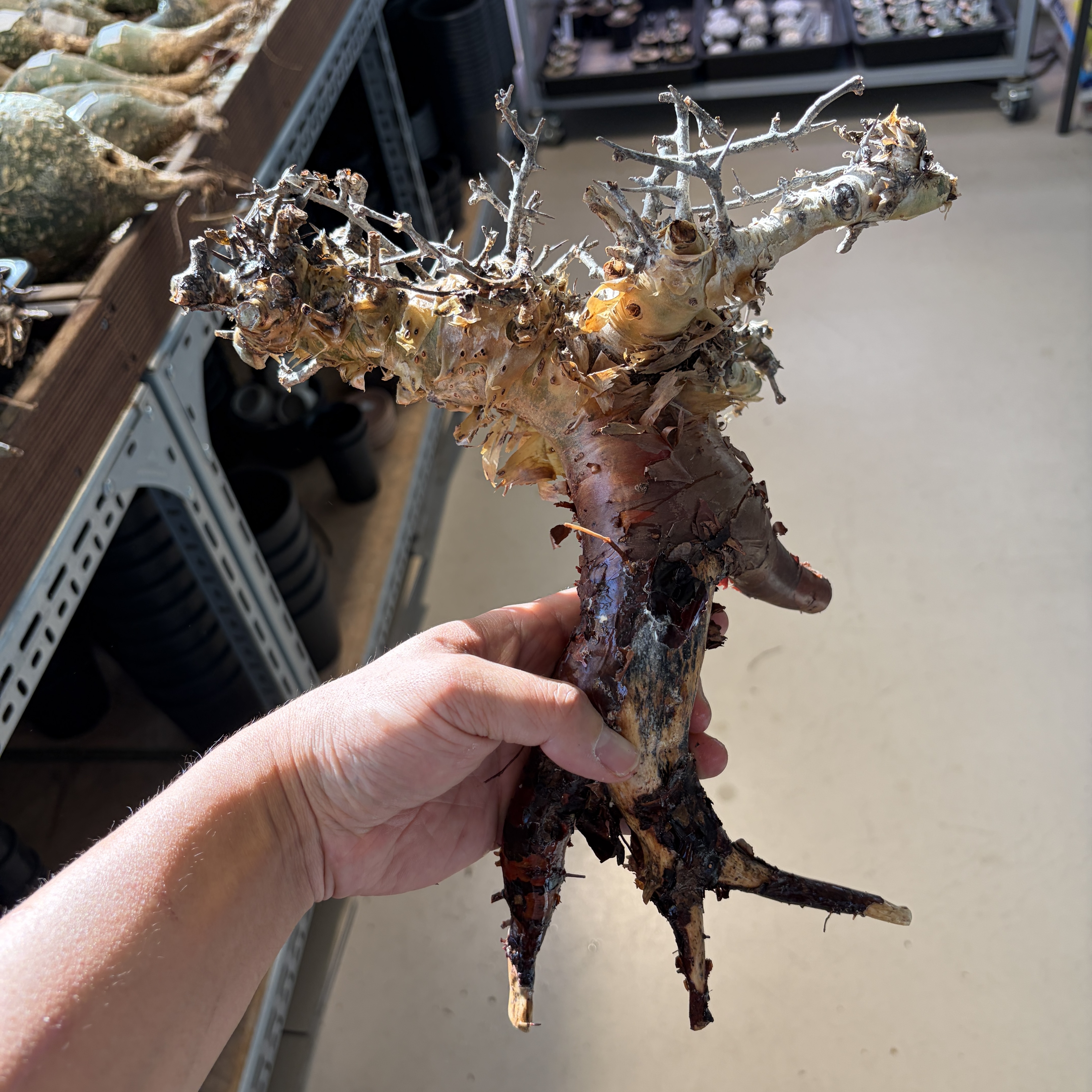 'Caudex' 식물들은 늦가을부터 자연스럽게 잎이 떨어집니다. (환경에 따라 잎이 지지 않을 수 있습니다.) 잎이 떨어지기 시작하면 서서히 물을 줄여나가며 휴면기인 겨울 동안에는 2-3주 1회 가볍게 분무 해주시면 됩니다.
