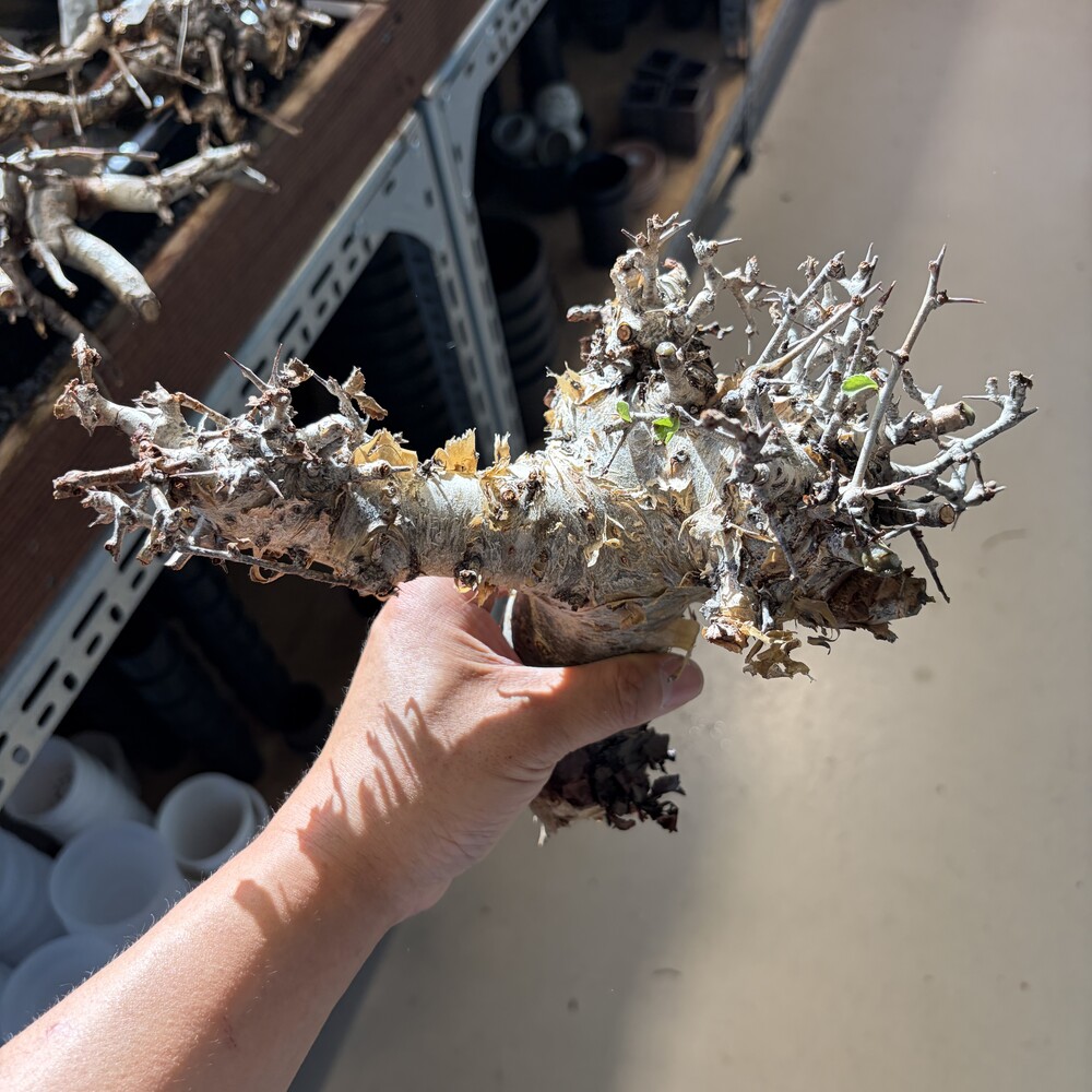 'Caudex' 식물들은 늦가을부터 자연스럽게 잎이 떨어집니다. (환경에 따라 잎이 지지 않을 수 있습니다.) 잎이 떨어지기 시작하면 서서히 물을 줄여나가며 휴면기인 겨울 동안에는 2-3주 1회 가볍게 분무 해주시면 됩니다.