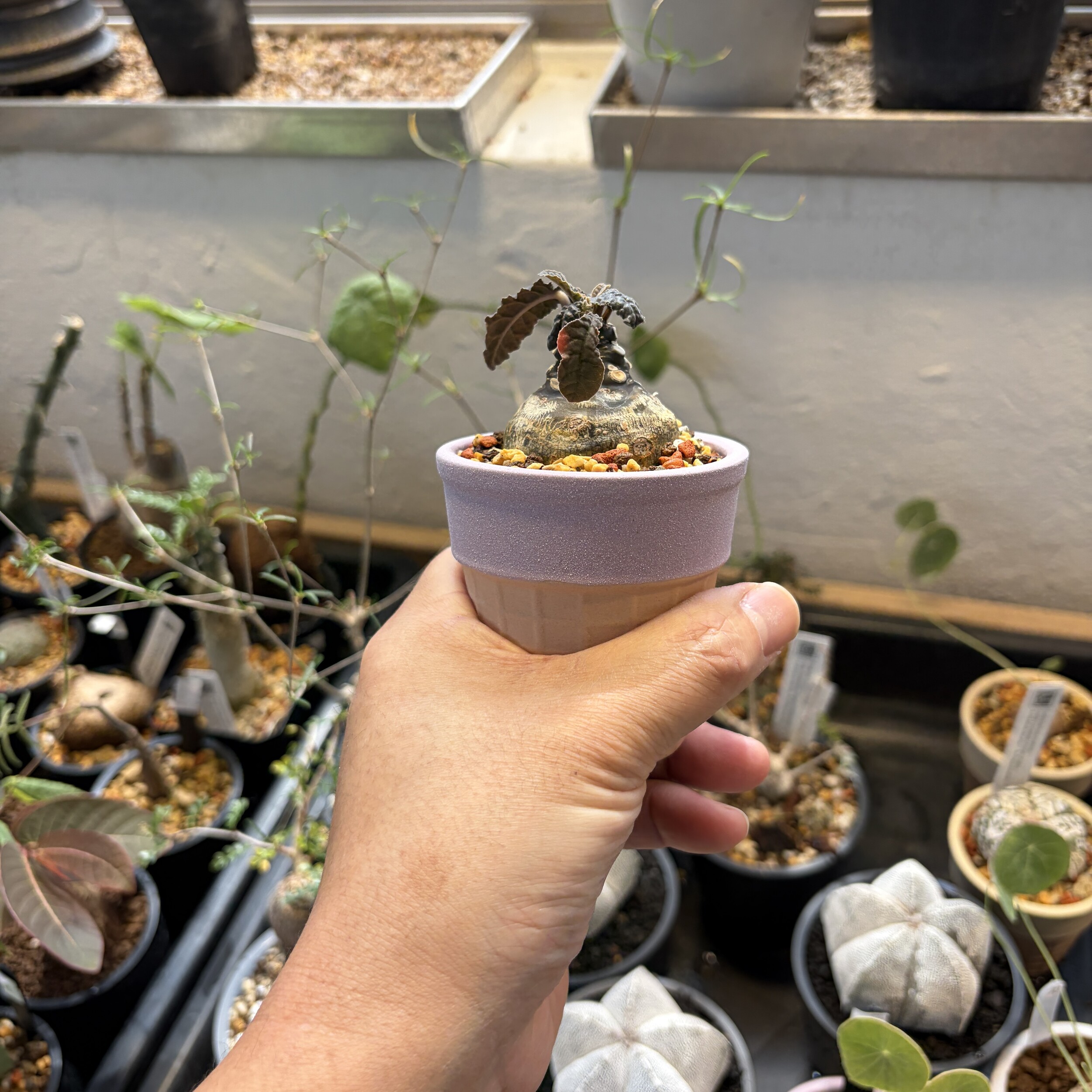 'Caudex' 식물들은 늦가을부터 자연스럽게 잎이 떨어집니다. (환경에 따라 잎이 지지 않을 수 있습니다.) 잎이 떨어지기 시작하면 서서히 물을 줄여나가며 휴면기인 겨울 동안에는 2-3주 1회 가볍게 분무 해주시면 됩니다.