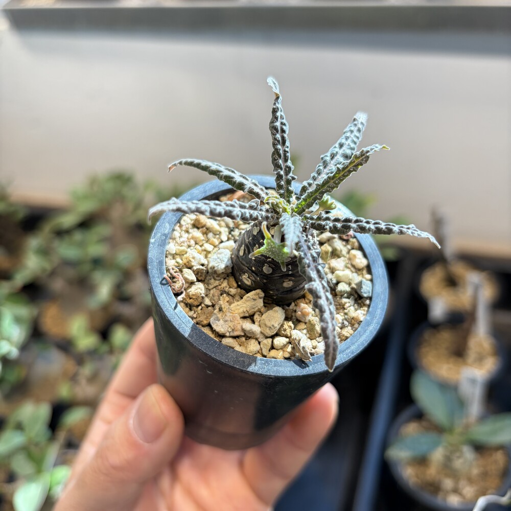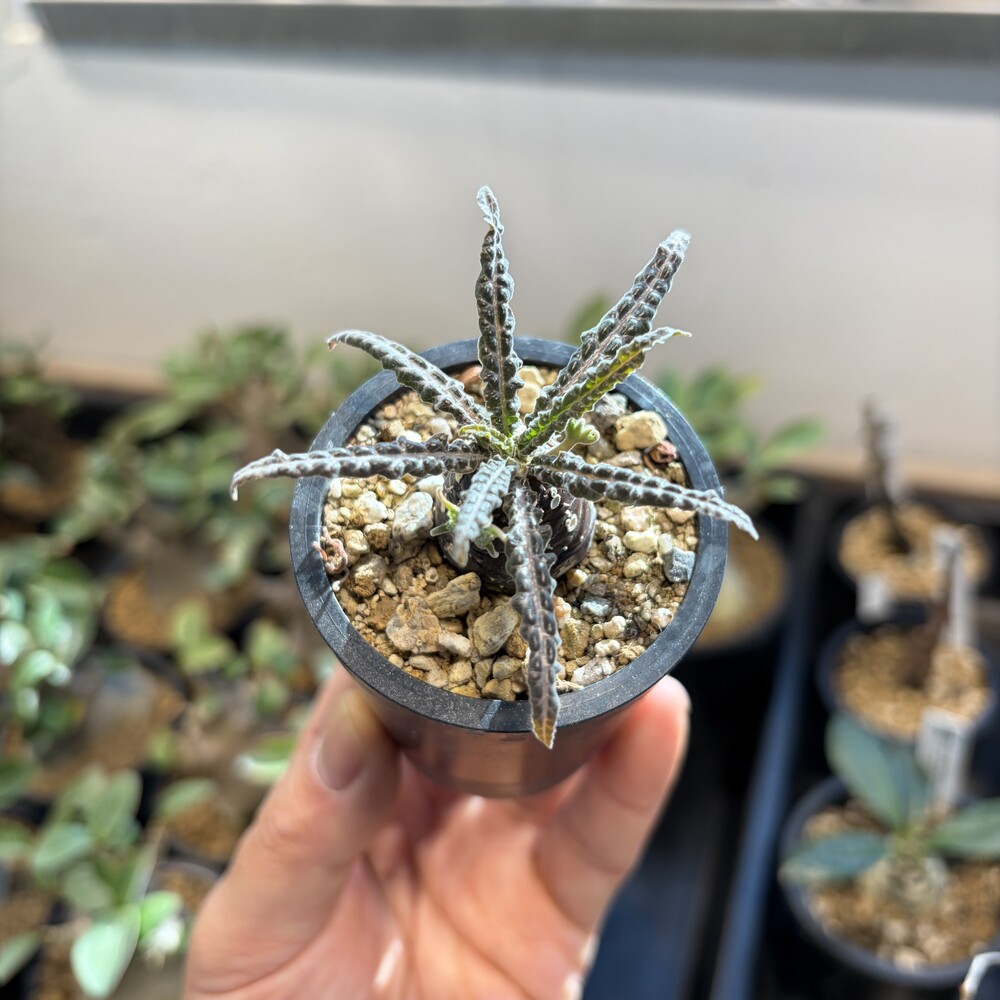 'Caudex' 식물들은 늦가을부터 자연스럽게 잎이 떨어집니다. (환경에 따라 잎이 지지 않을 수 있습니다.) 잎이 떨어지기 시작하면 서서히 물을 줄여나가며 휴면기인 겨울 동안에는 2-3주 1회 가볍게 분무 해주시면 됩니다.