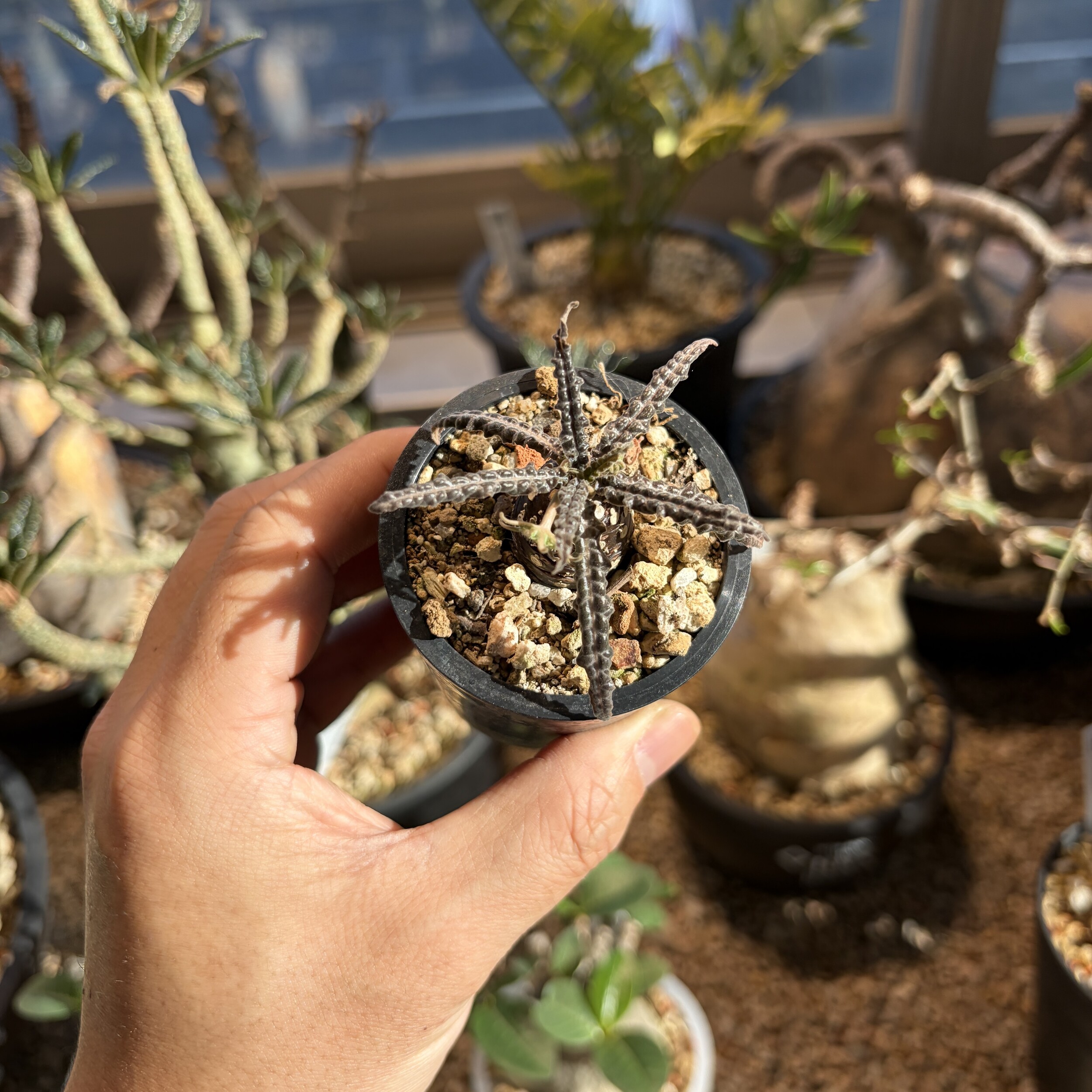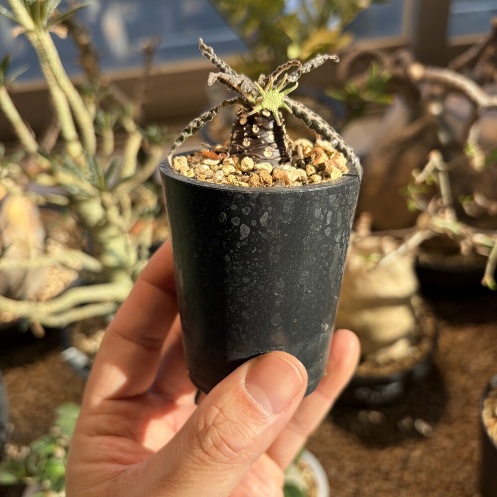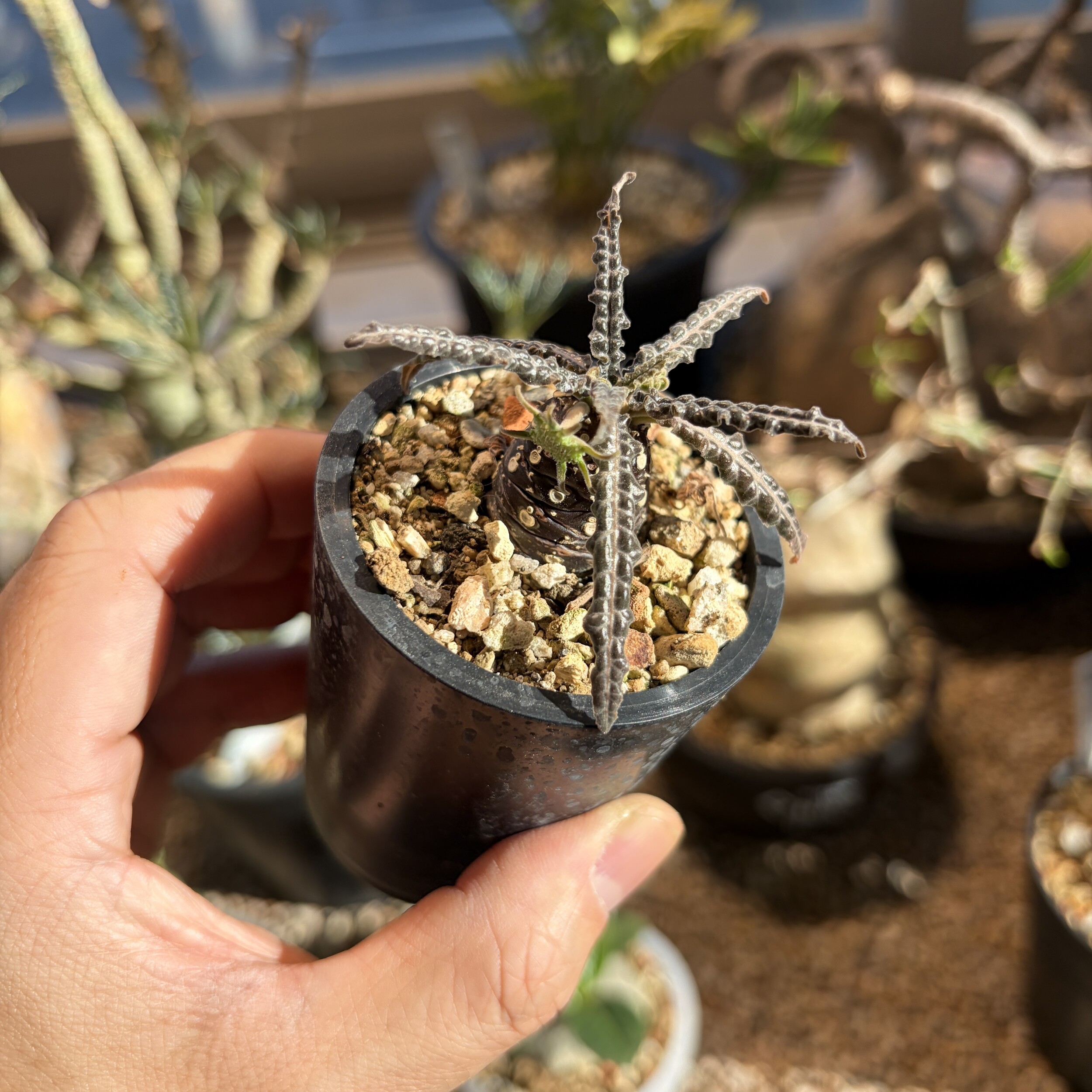 'Caudex' 식물들은 늦가을부터 자연스럽게 잎이 떨어집니다. (환경에 따라 잎이 지지 않을 수 있습니다.) 잎이 떨어지기 시작하면 서서히 물을 줄여나가며 휴면기인 겨울 동안에는 2-3주 1회 가볍게 분무 해주시면 됩니다.
