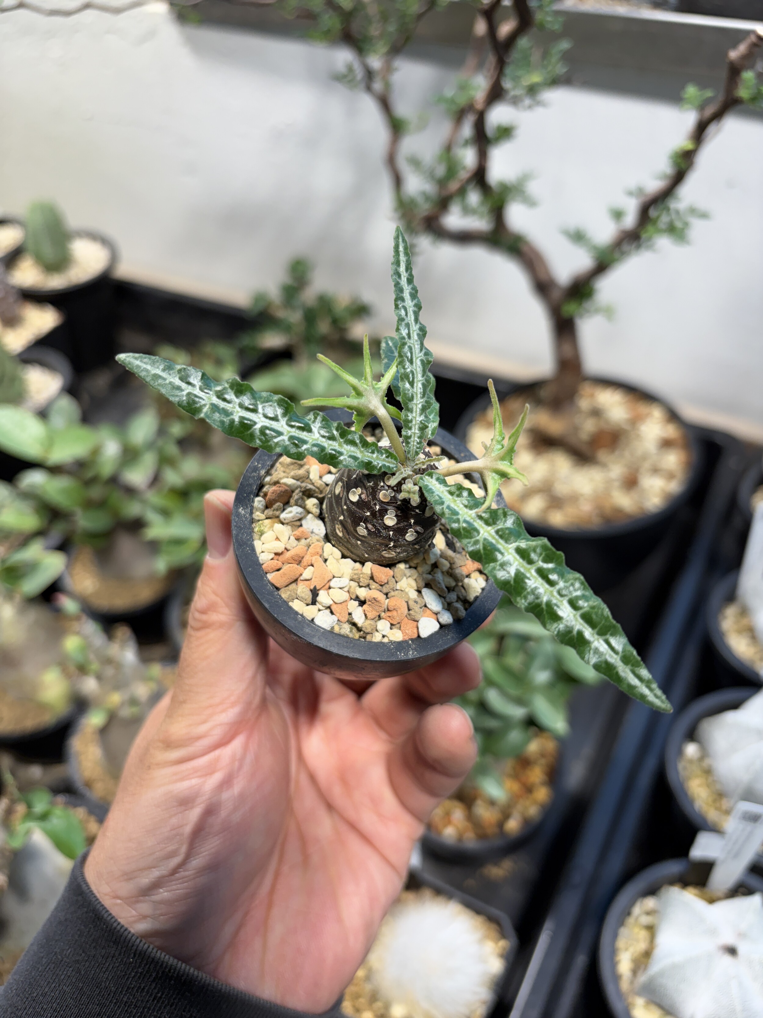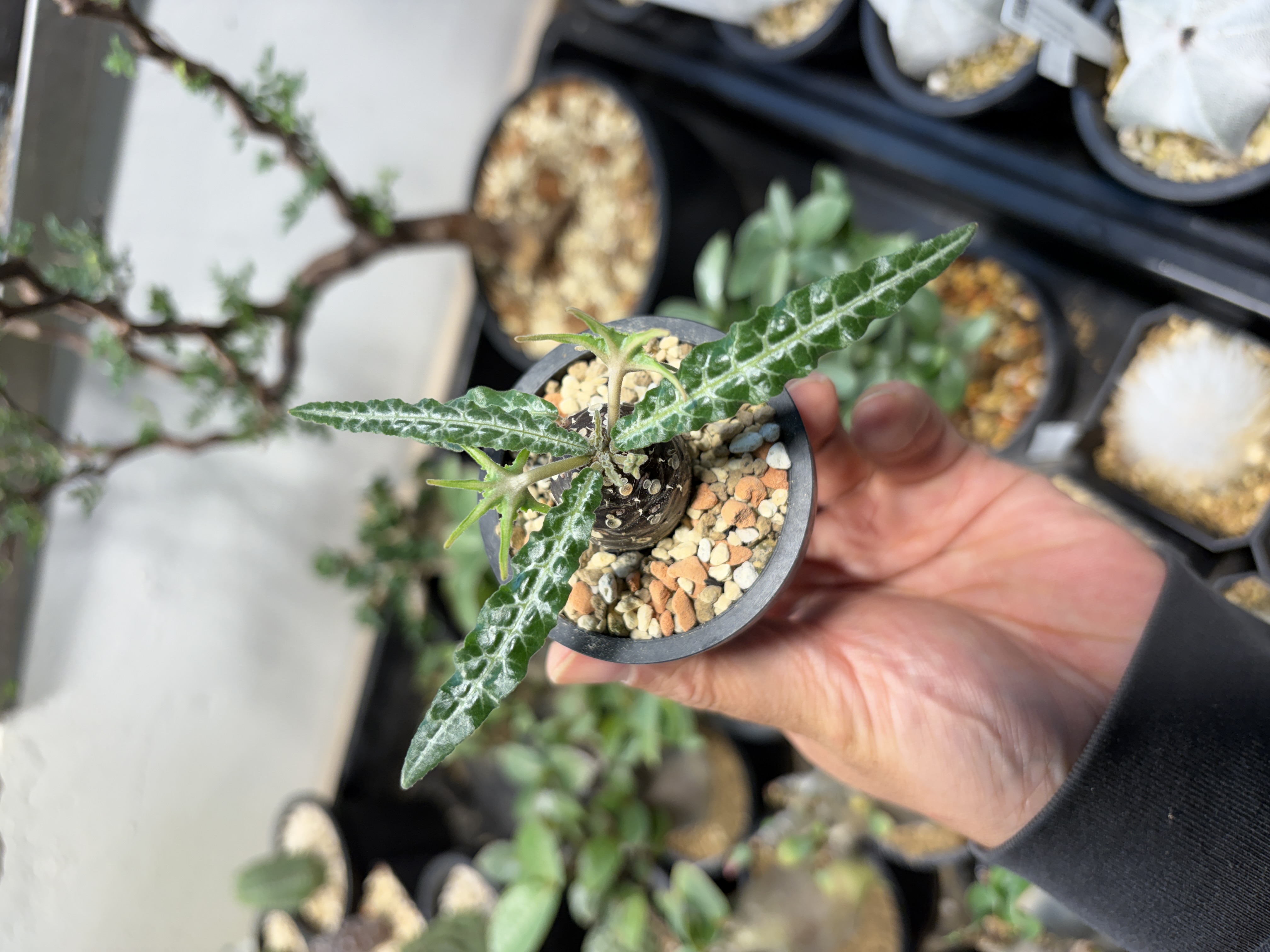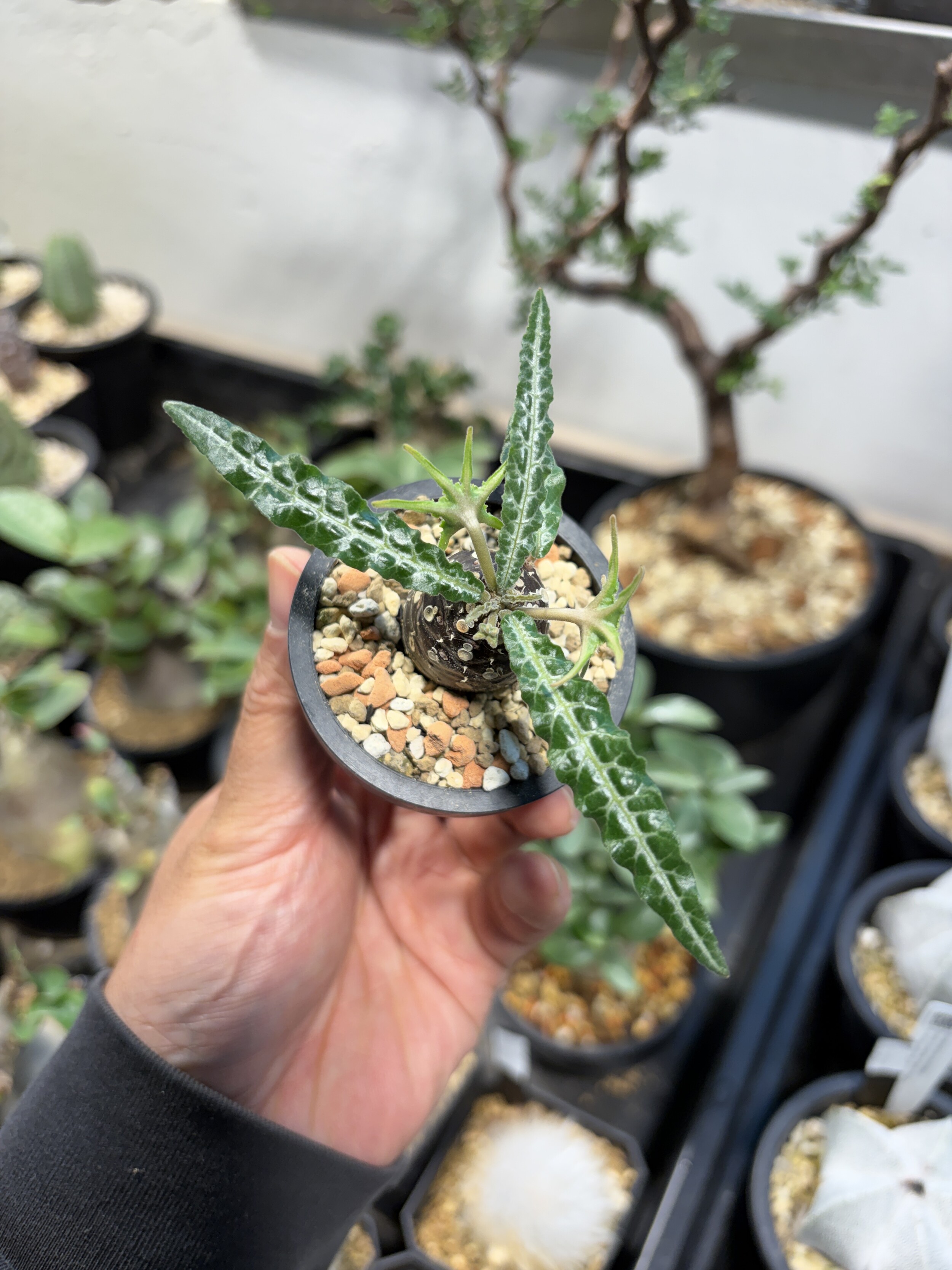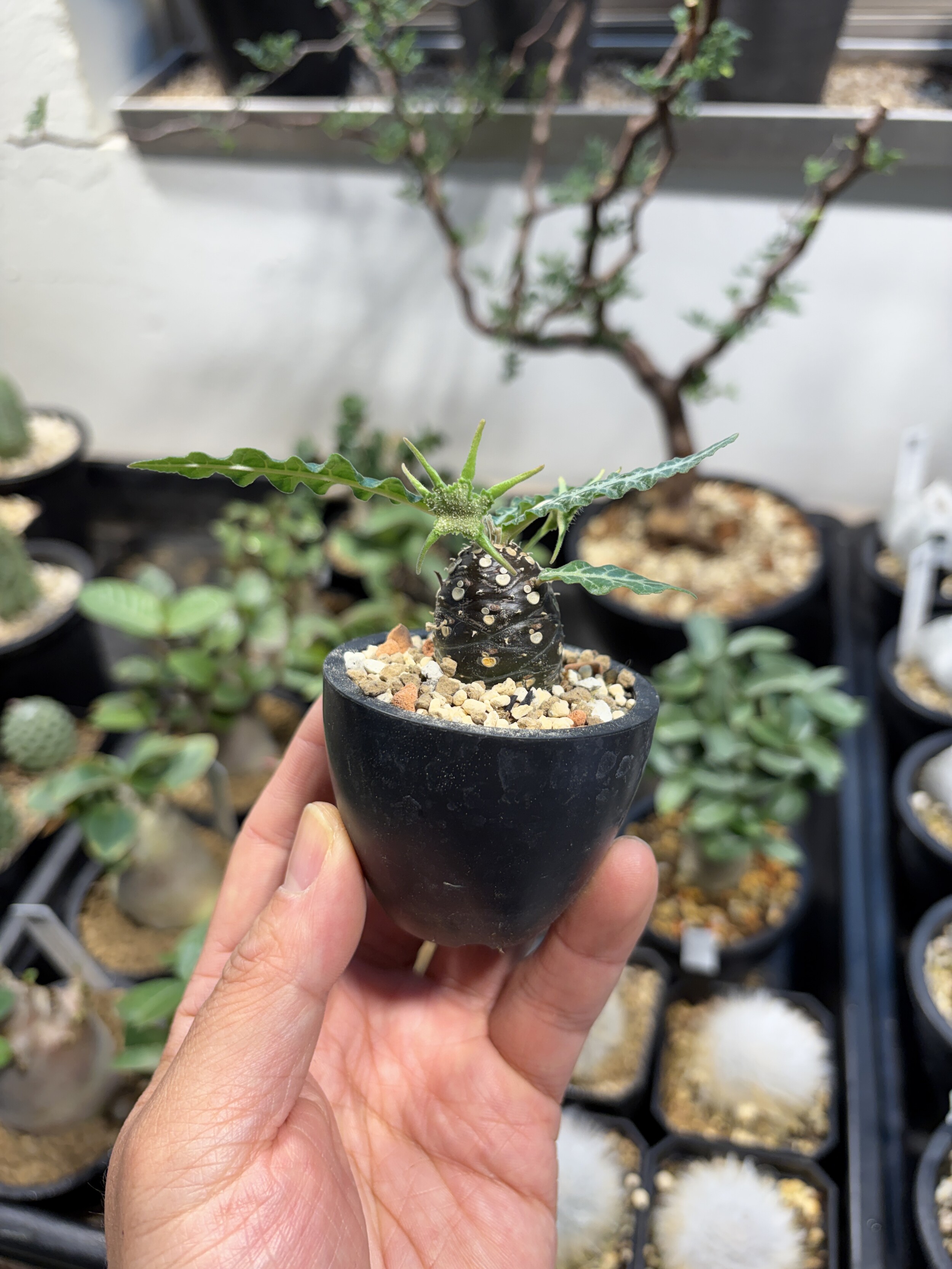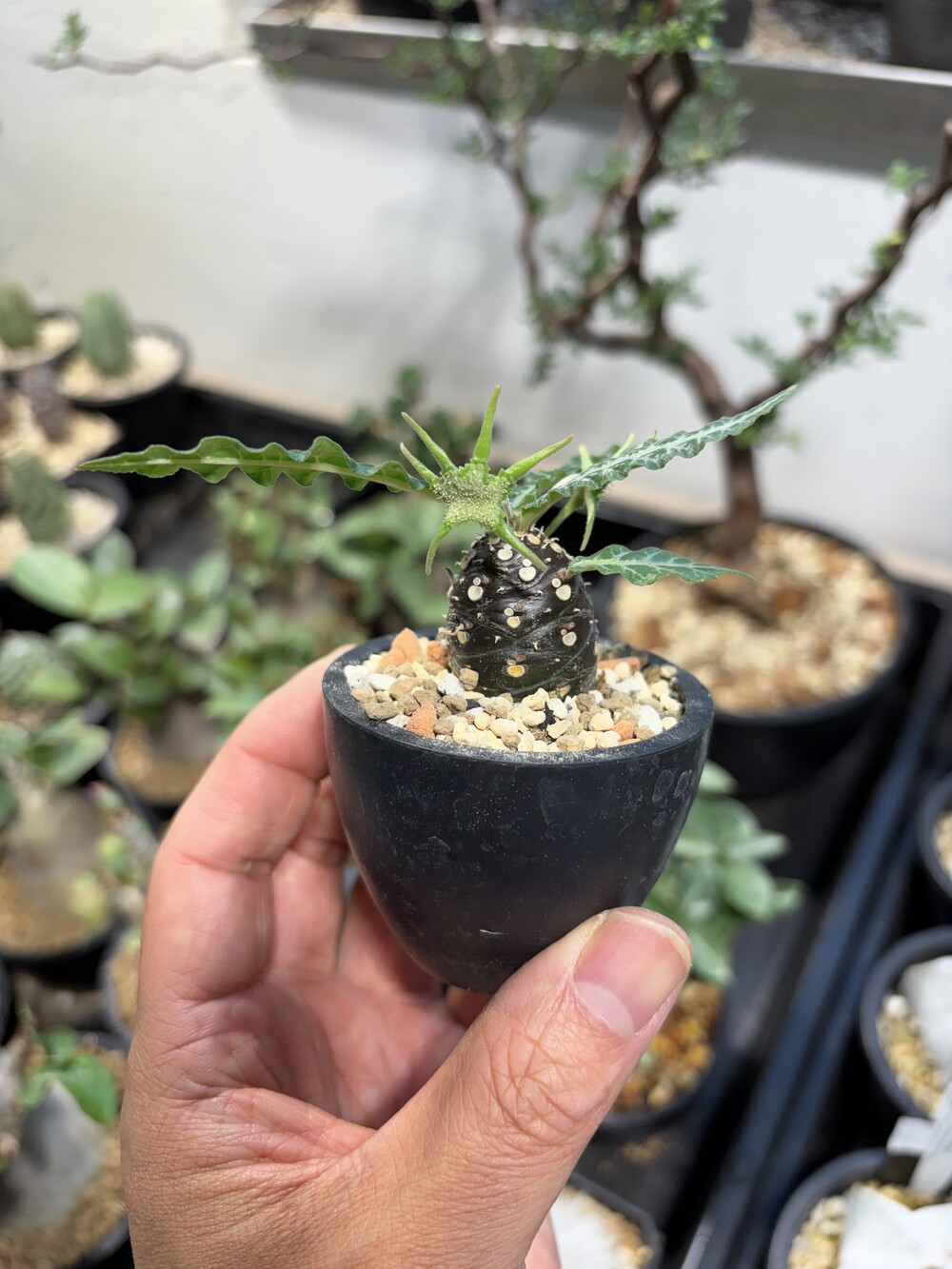 'Caudex' 식물들은 늦가을부터 자연스럽게 잎이 떨어집니다. (환경에 따라 잎이 지지 않을 수 있습니다.) 잎이 떨어지기 시작하면 서서히 물을 줄여나가며 휴면기인 겨울 동안에는 2-3주 1회 가볍게 분무 해주시면 됩니다.