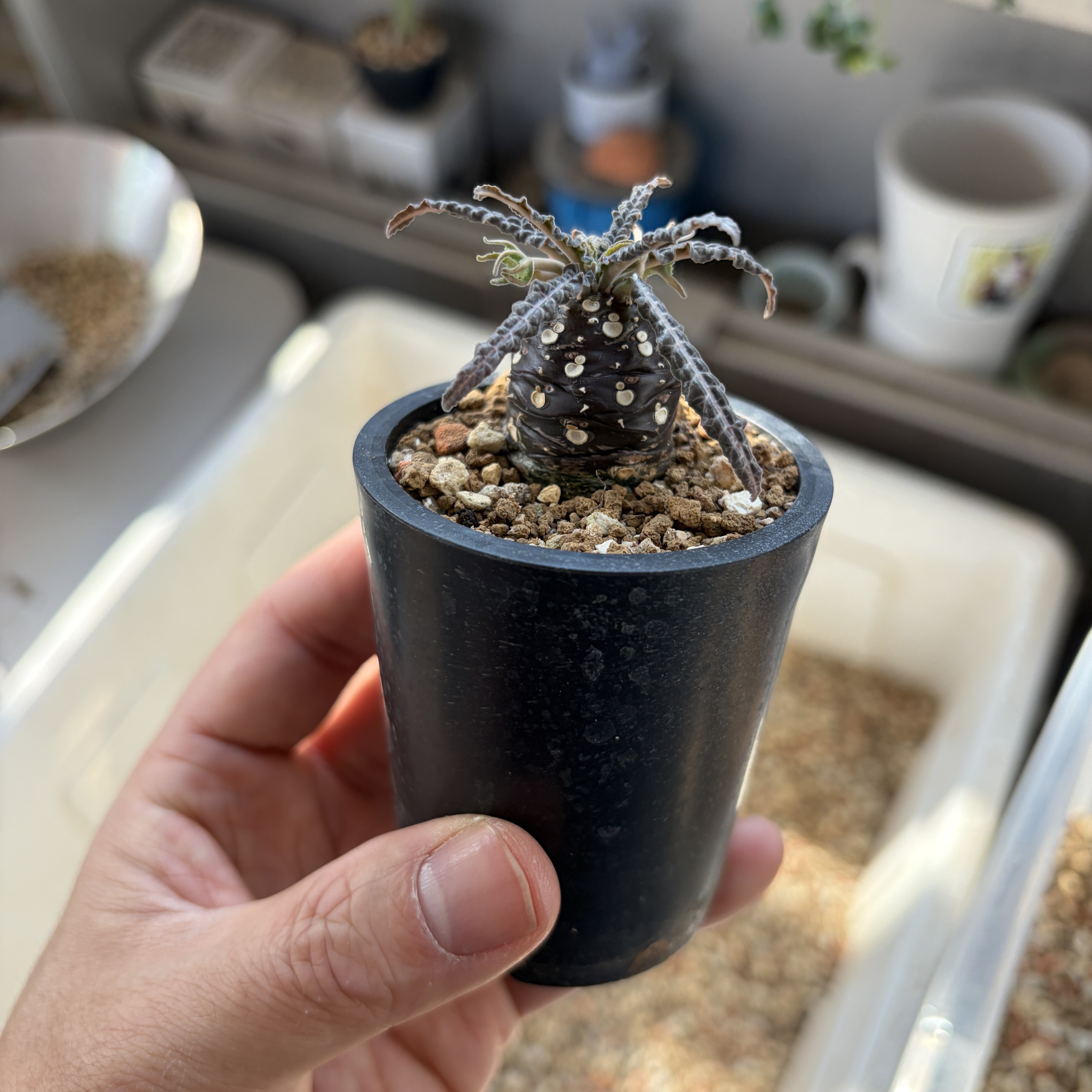 'Caudex' 식물들은 늦가을부터 자연스럽게 잎이 떨어집니다. (환경에 따라 잎이 지지 않을 수 있습니다.) 잎이 떨어지기 시작하면 서서히 물을 줄여나가며 휴면기인 겨울 동안에는 2-3주 1회 가볍게 분무 해주시면 됩니다.