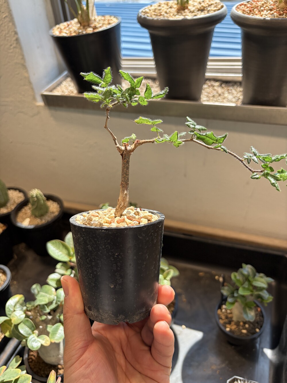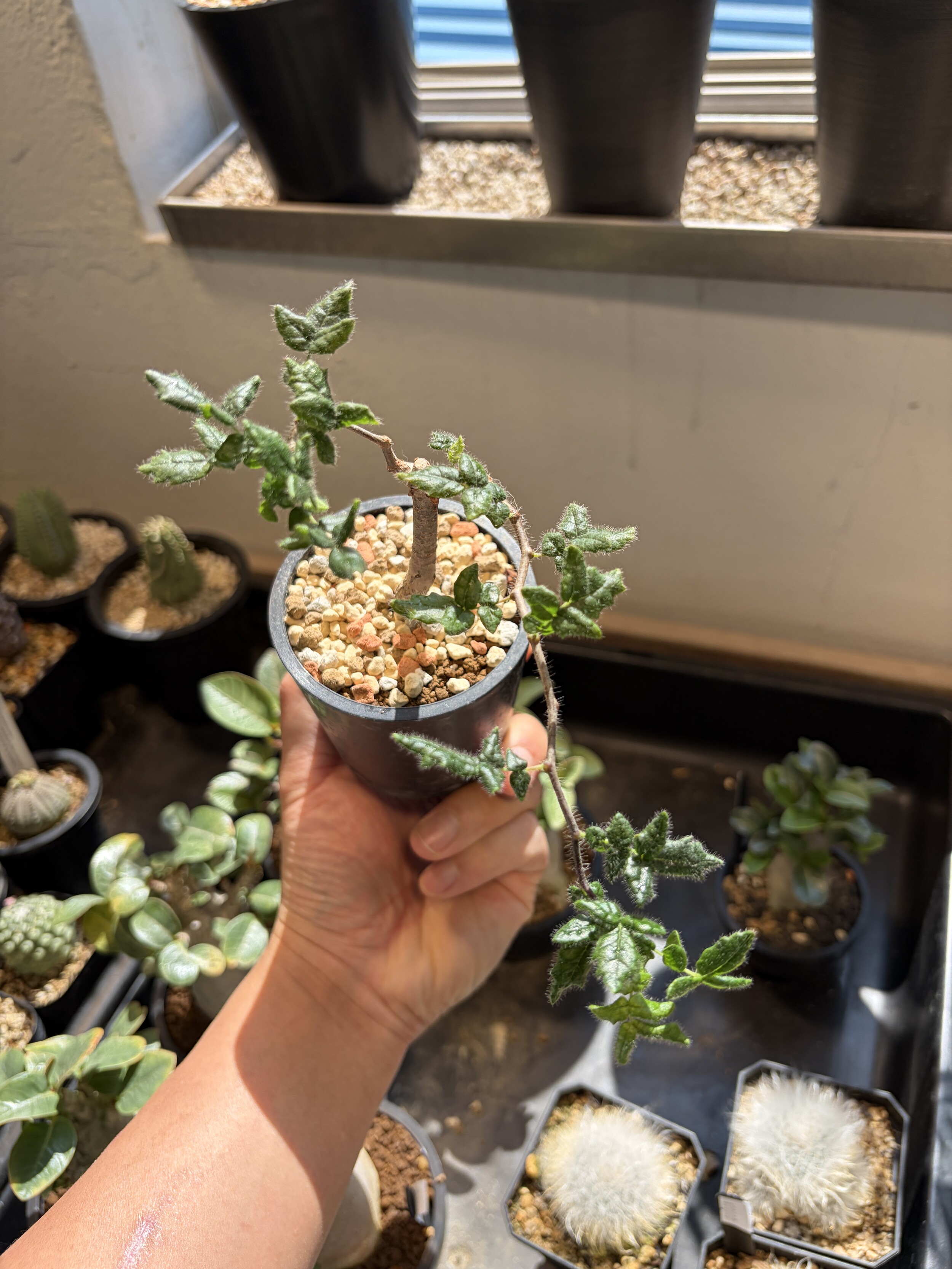 'Caudex' 식물들은 늦가을부터 자연스럽게 잎이 떨어집니다. (환경에 따라 잎이 지지 않을 수 있습니다.) 잎이 떨어지기 시작하면 서서히 물을 줄여나가며 휴면기인 겨울 동안에는 2-3주 1회 가볍게 분무 해주시면 됩니다.
