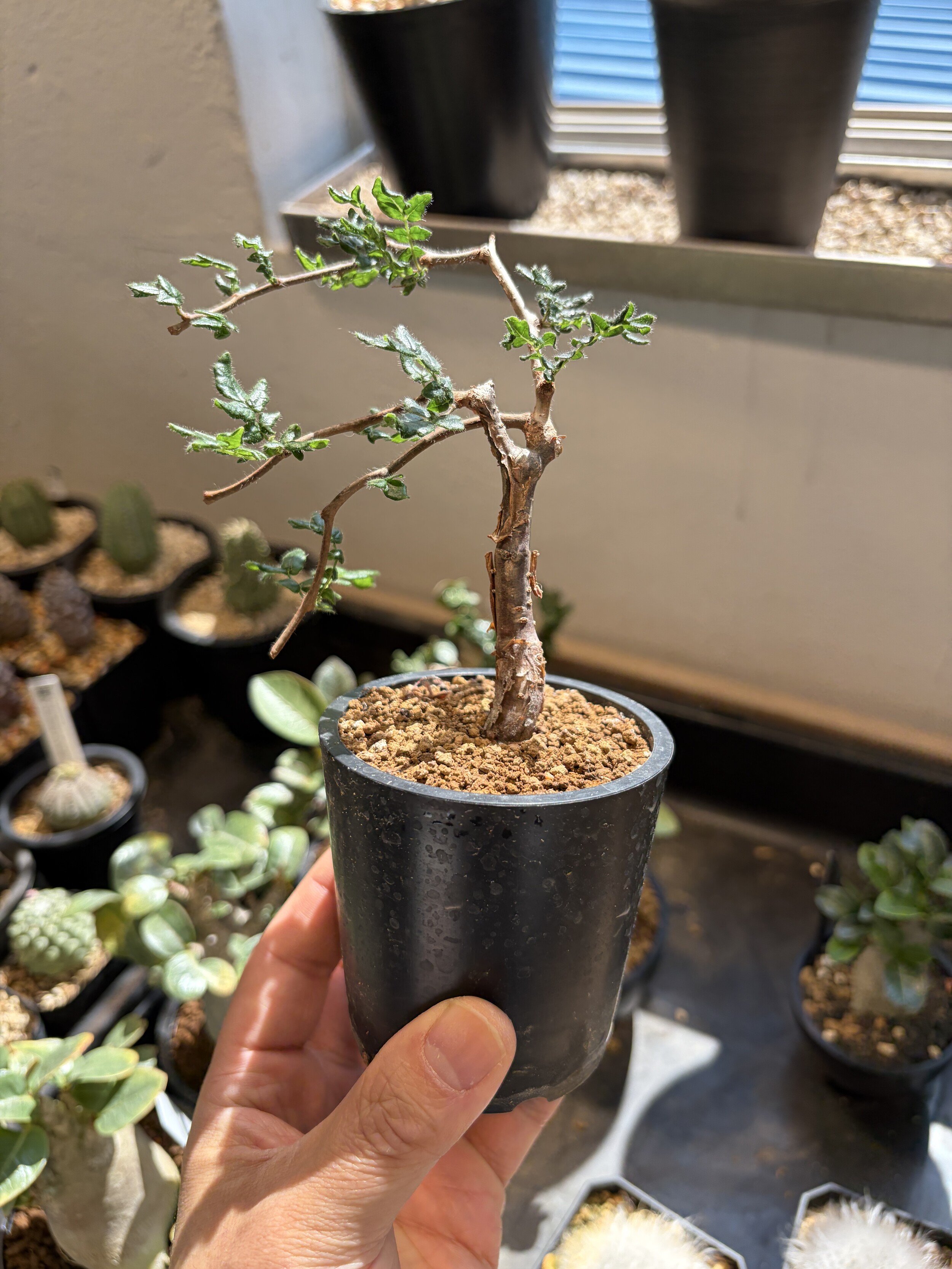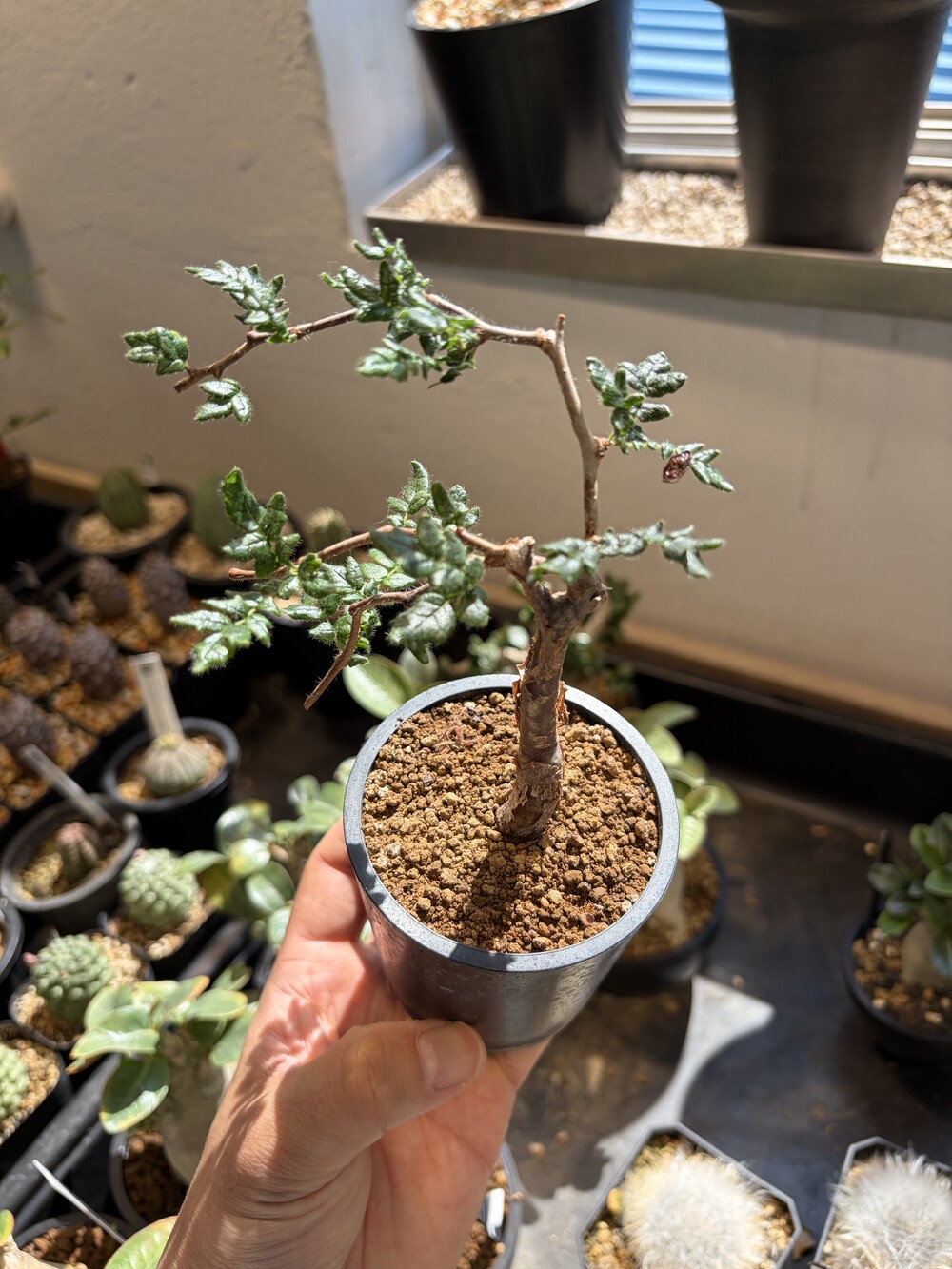 'Caudex' 식물들은 늦가을부터 자연스럽게 잎이 떨어집니다. (환경에 따라 잎이 지지 않을 수 있습니다.) 잎이 떨어지기 시작하면 서서히 물을 줄여나가며 휴면기인 겨울 동안에는 2-3주 1회 가볍게 분무 해주시면 됩니다.