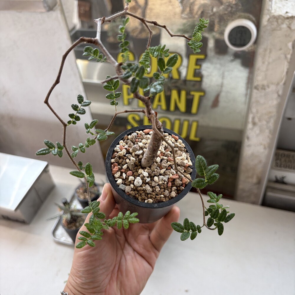 'Caudex' 식물들은 늦가을부터 자연스럽게 잎이 떨어집니다. (환경에 따라 잎이 지지 않을 수 있습니다.) 잎이 떨어지기 시작하면 서서히 물을 줄여나가며 휴면기인 겨울 동안에는 2-3주 1회 가볍게 분무 해주시면 됩니다.