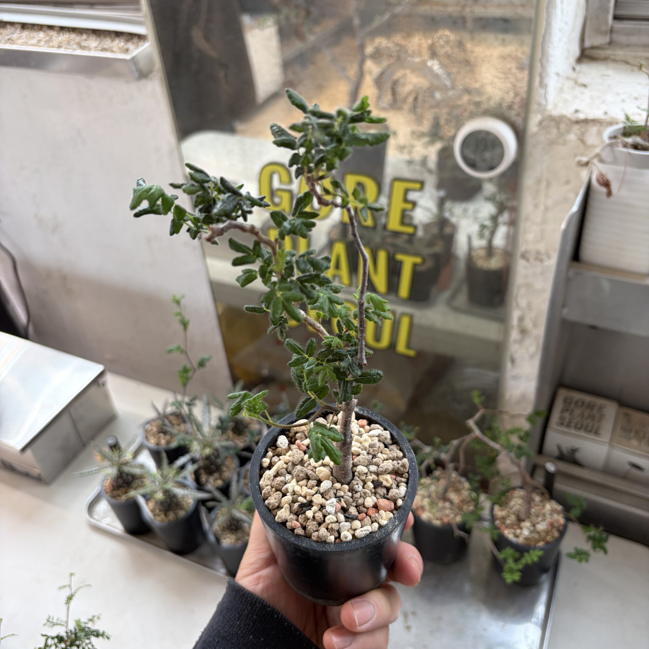 'Caudex' 식물들은 늦가을부터 자연스럽게 잎이 떨어집니다. (환경에 따라 잎이 지지 않을 수 있습니다.) 잎이 떨어지기 시작하면 서서히 물을 줄여나가며 휴면기인 겨울 동안에는 2-3주 1회 가볍게 분무 해주시면 됩니다.