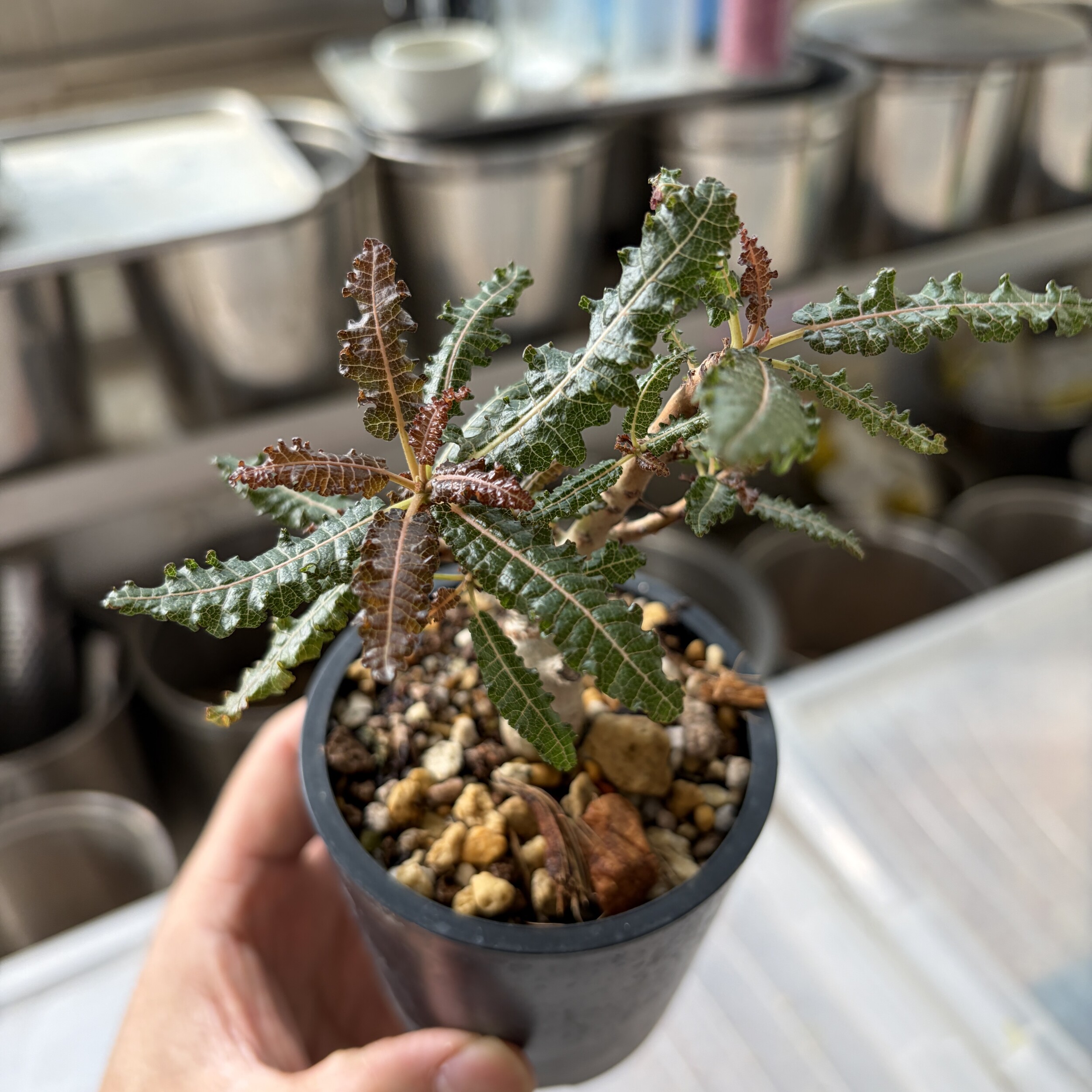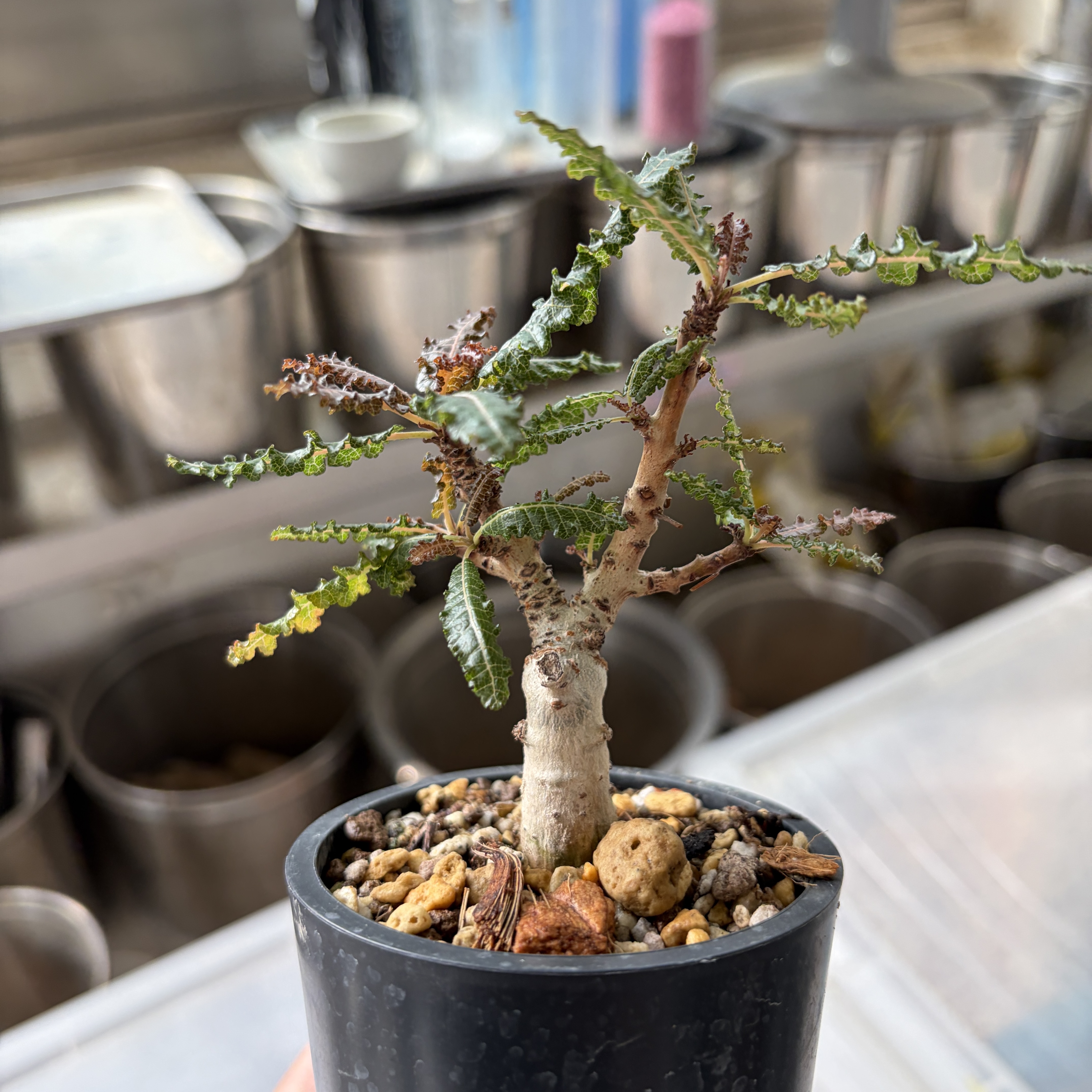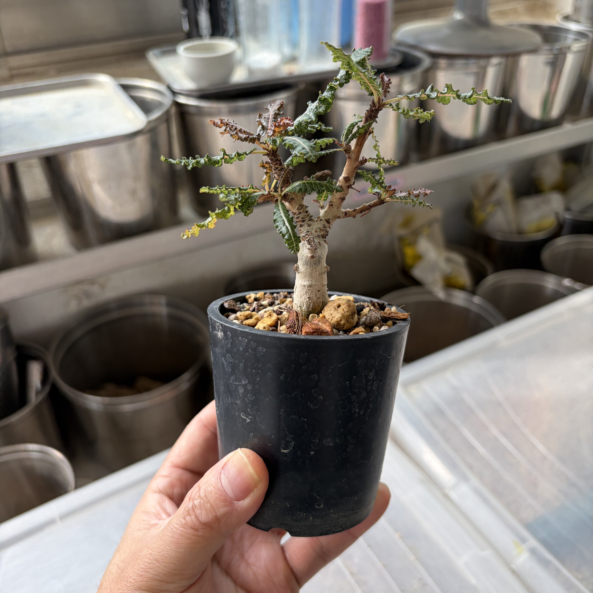 'Caudex' 식물들은 늦가을부터 자연스럽게 잎이 떨어집니다. (환경에 따라 잎이 지지 않을 수 있습니다.) 잎이 떨어지기 시작하면 서서히 물을 줄여나가며 휴면기인 겨울 동안에는 2-3주 1회 가볍게 분무 해주시면 됩니다.