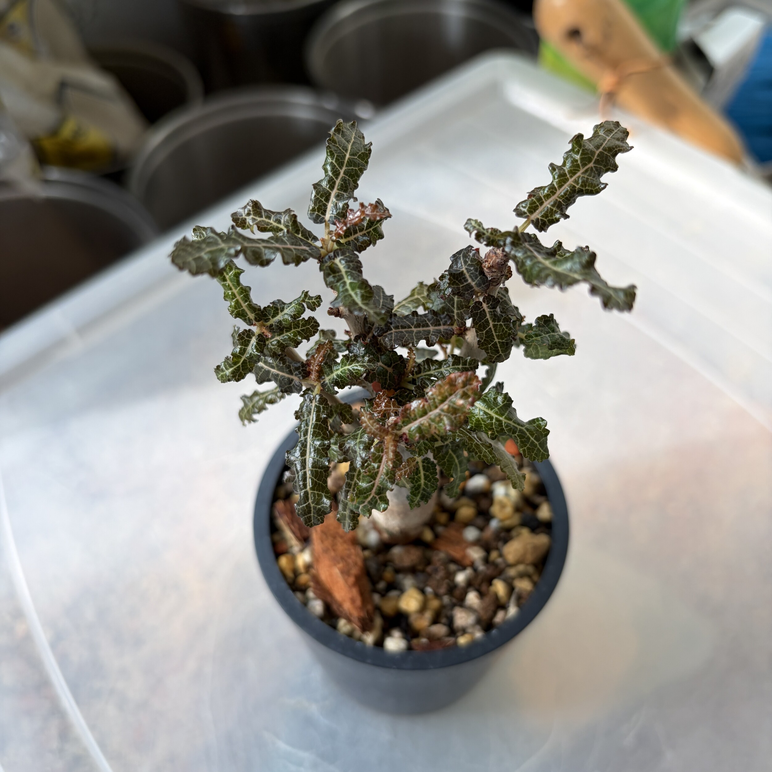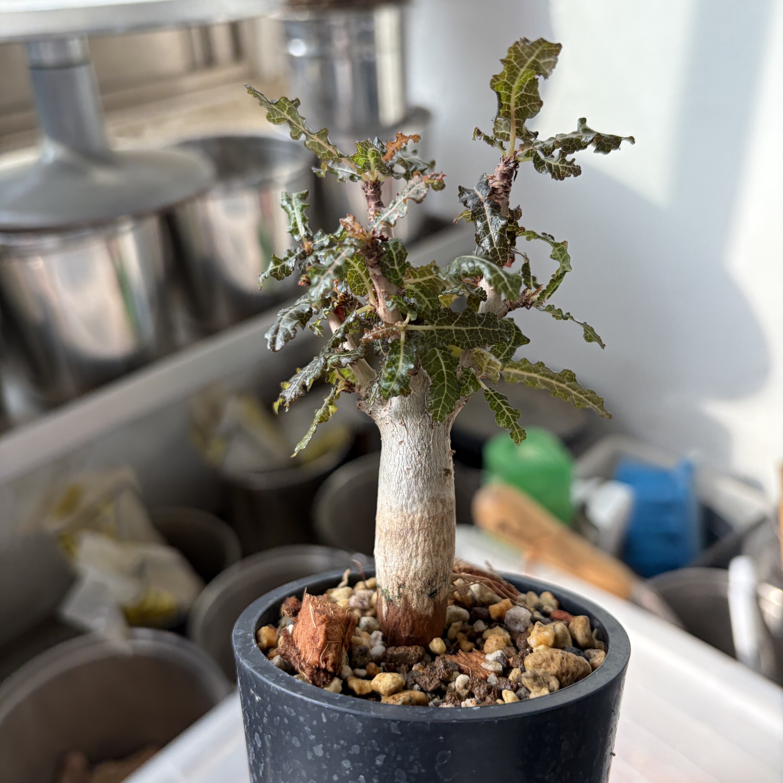 'Caudex' 식물들은 늦가을부터 자연스럽게 잎이 떨어집니다. (환경에 따라 잎이 지지 않을 수 있습니다.) 잎이 떨어지기 시작하면 서서히 물을 줄여나가며 휴면기인 겨울 동안에는 2-3주 1회 가볍게 분무 해주시면 됩니다.