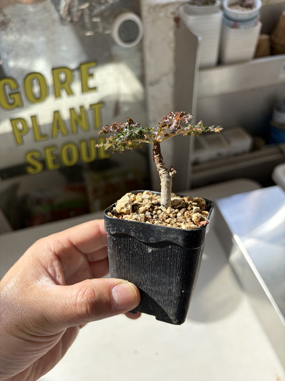 'Caudex' 식물들은 늦가을부터 자연스럽게 잎이 떨어집니다. (환경에 따라 잎이 지지 않을 수 있습니다.) 잎이 떨어지기 시작하면 서서히 물을 줄여나가며 휴면기인 겨울 동안에는 2-3주 1회 가볍게 분무 해주시면 됩니다.