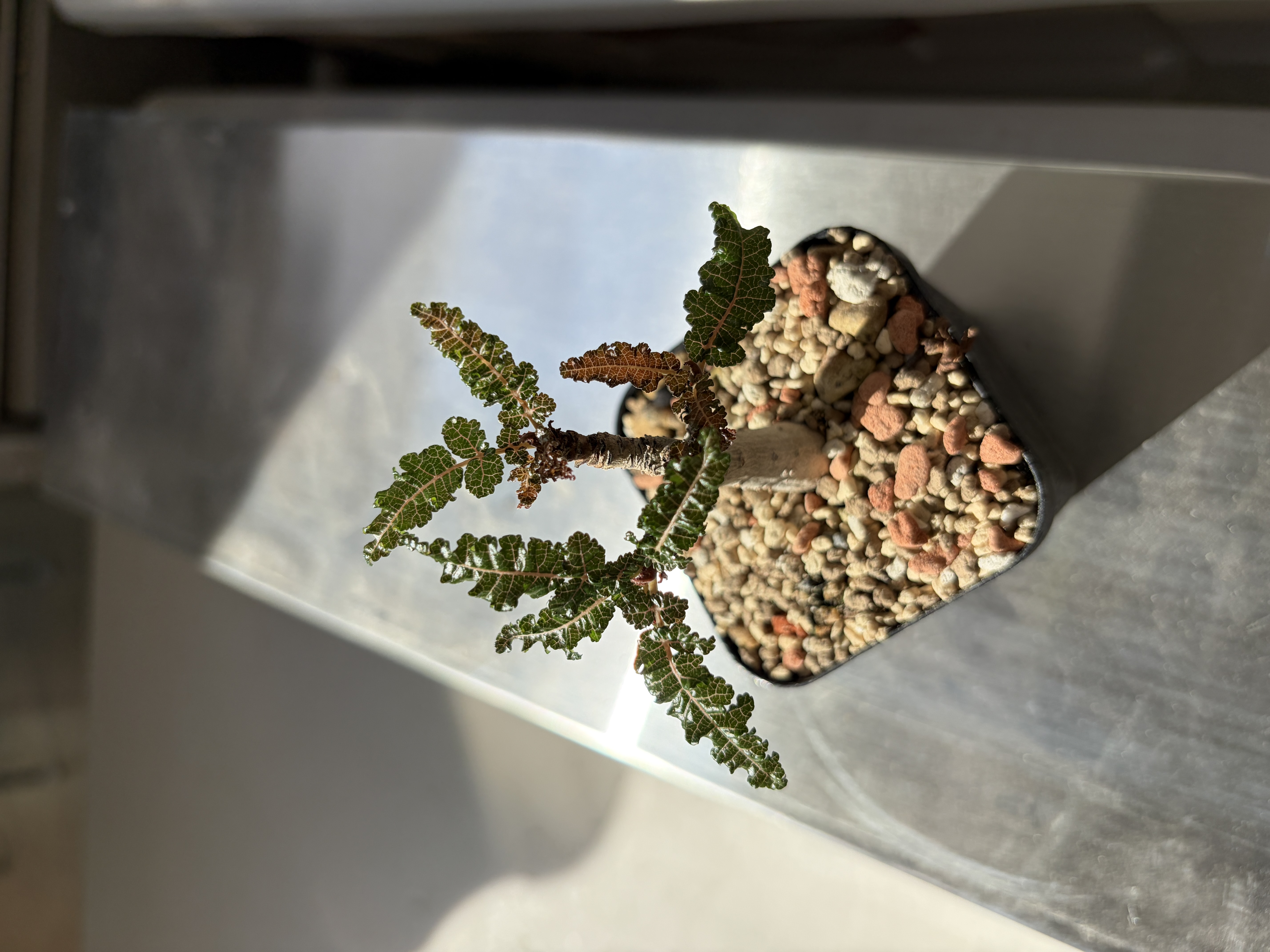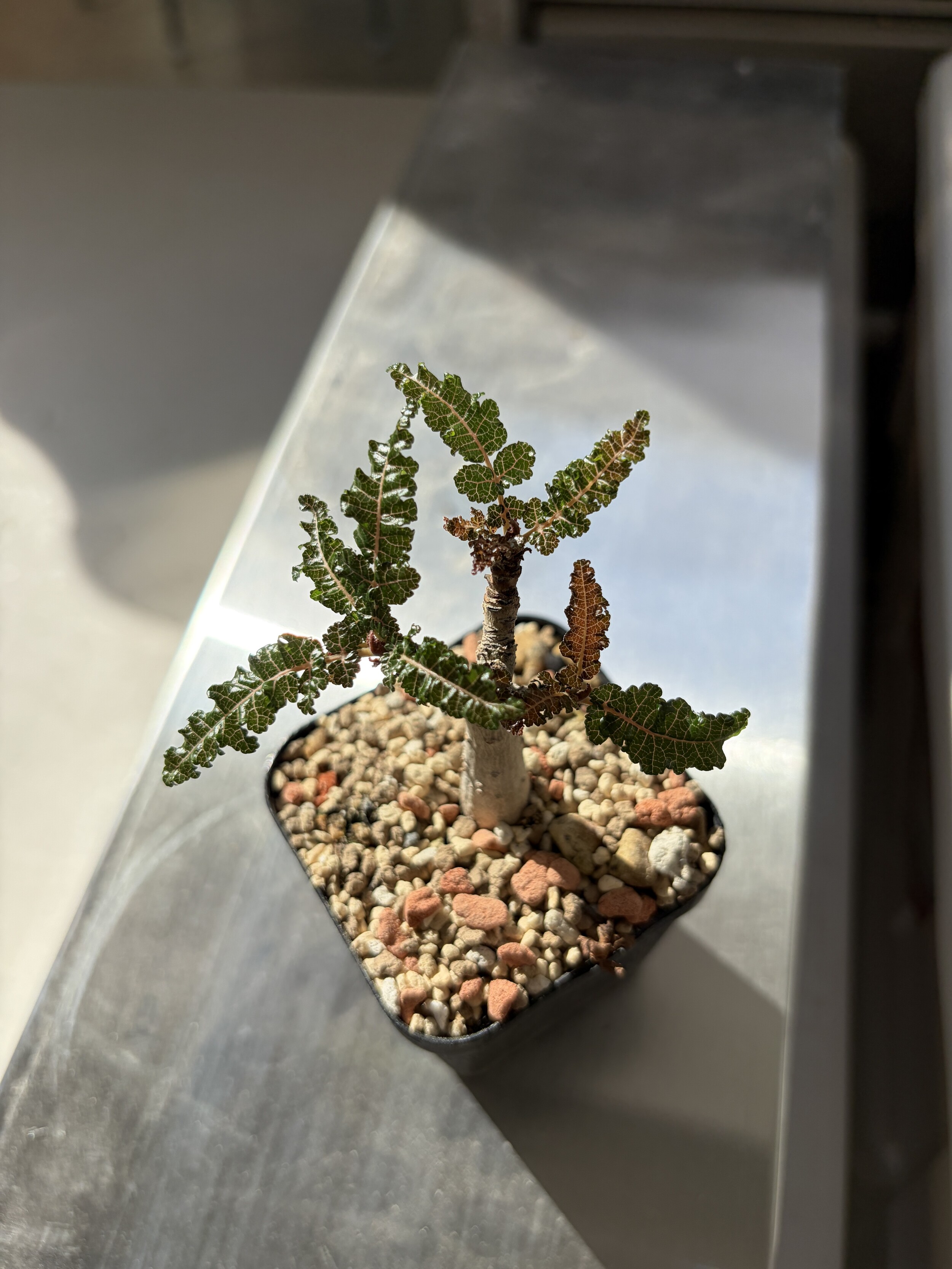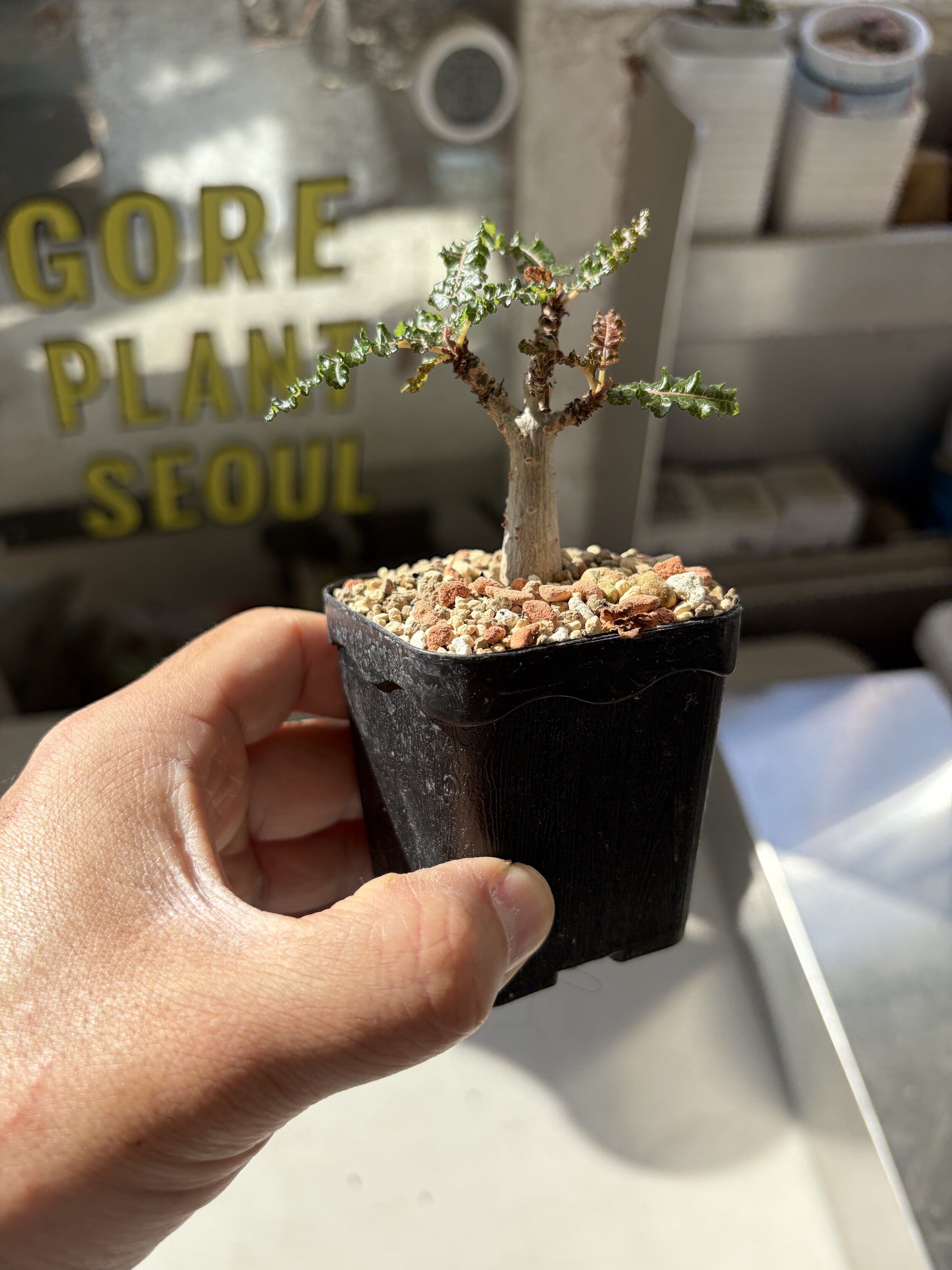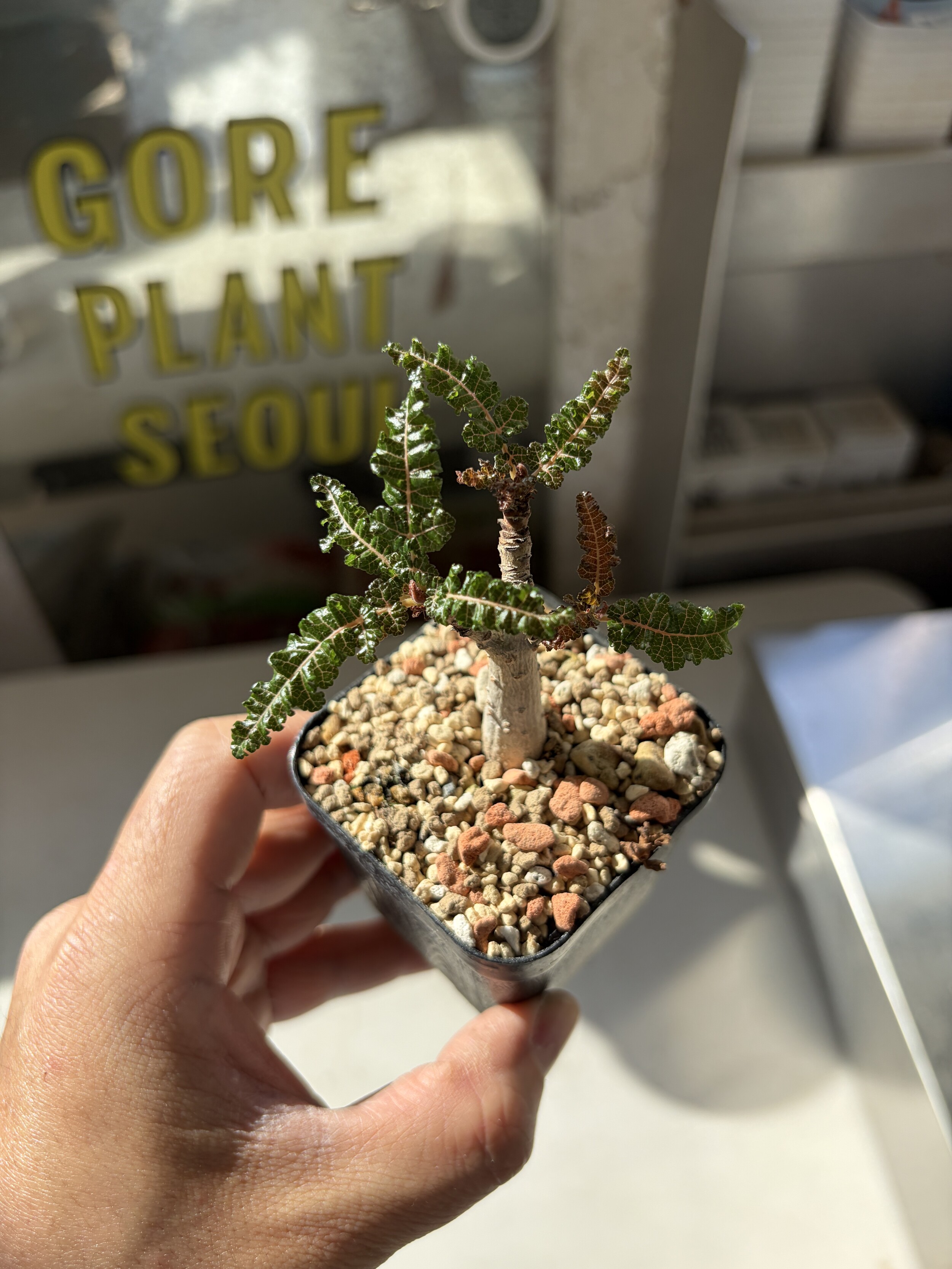 'Caudex' 식물들은 늦가을부터 자연스럽게 잎이 떨어집니다. (환경에 따라 잎이 지지 않을 수 있습니다.) 잎이 떨어지기 시작하면 서서히 물을 줄여나가며 휴면기인 겨울 동안에는 2-3주 1회 가볍게 분무 해주시면 됩니다.