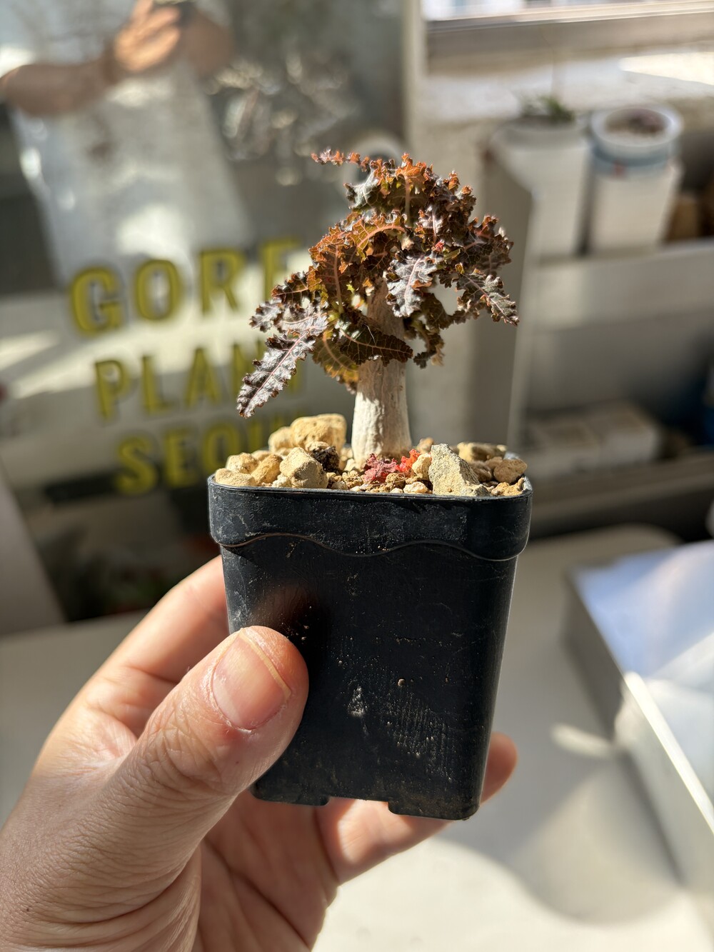'Caudex' 식물들은 늦가을부터 자연스럽게 잎이 떨어집니다. (환경에 따라 잎이 지지 않을 수 있습니다.) 잎이 떨어지기 시작하면 서서히 물을 줄여나가며 휴면기인 겨울 동안에는 2-3주 1회 가볍게 분무 해주시면 됩니다.