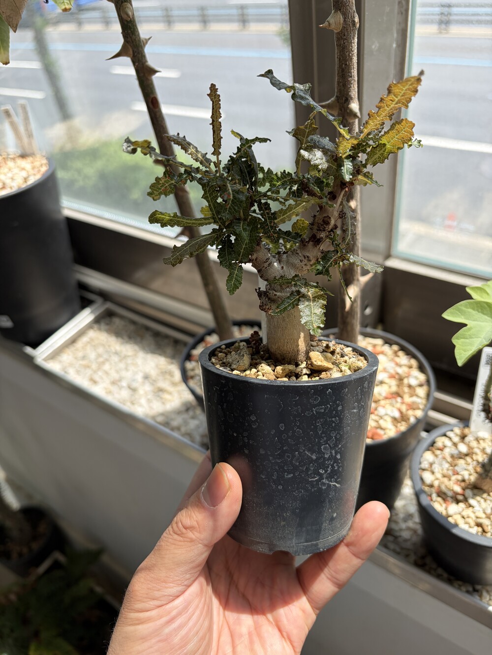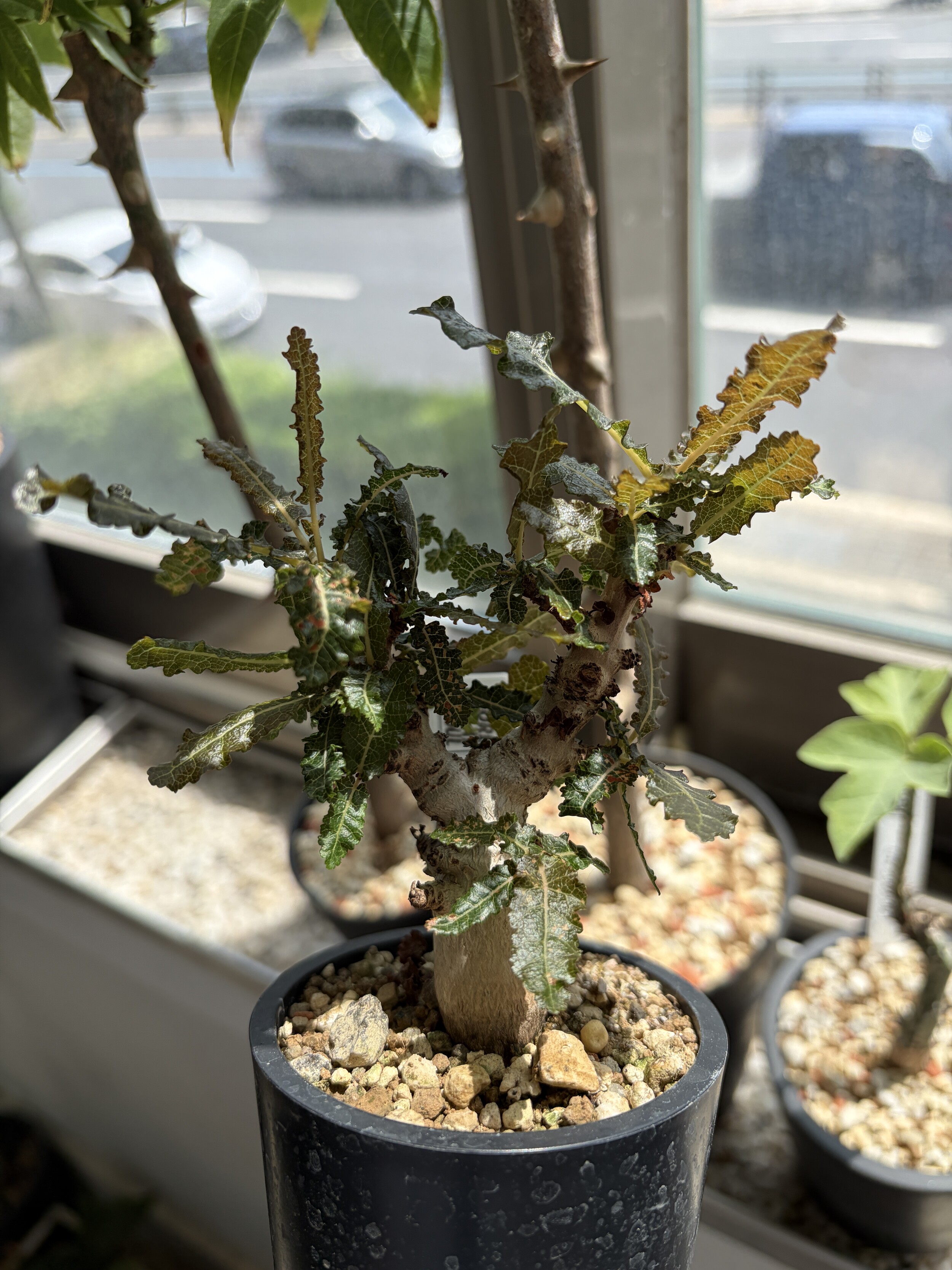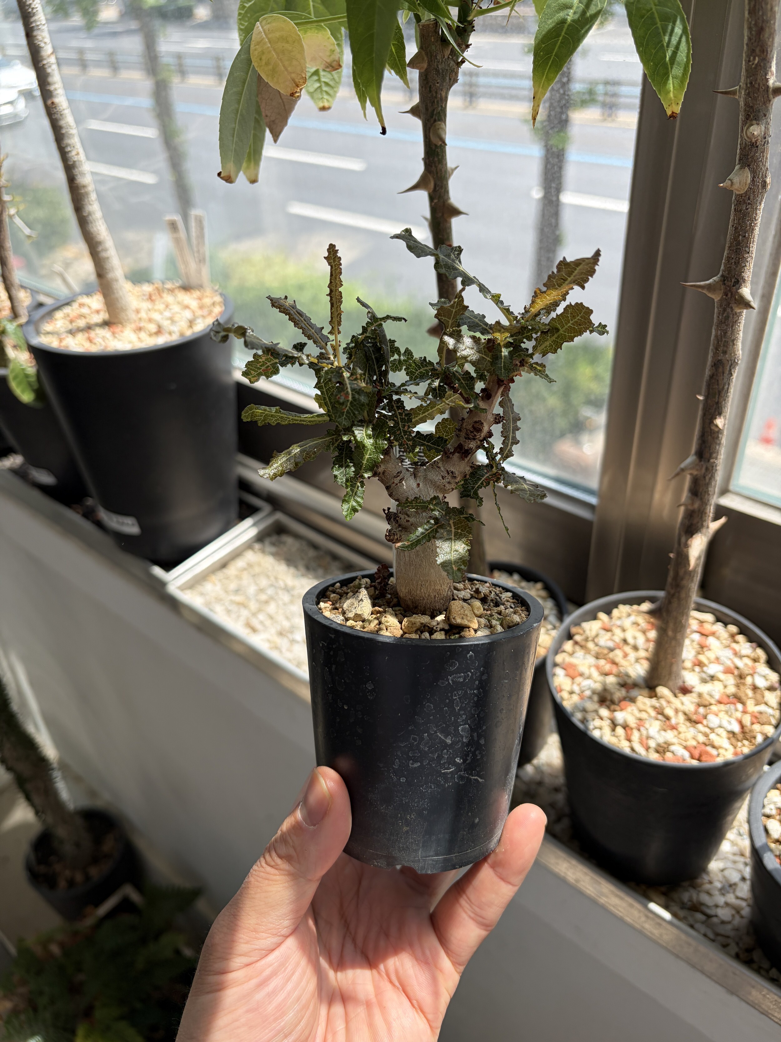 'Caudex' 식물들은 늦가을부터 자연스럽게 잎이 떨어집니다. (환경에 따라 잎이 지지 않을 수 있습니다.) 잎이 떨어지기 시작하면 서서히 물을 줄여나가며 휴면기인 겨울 동안에는 2-3주 1회 가볍게 분무 해주시면 됩니다.