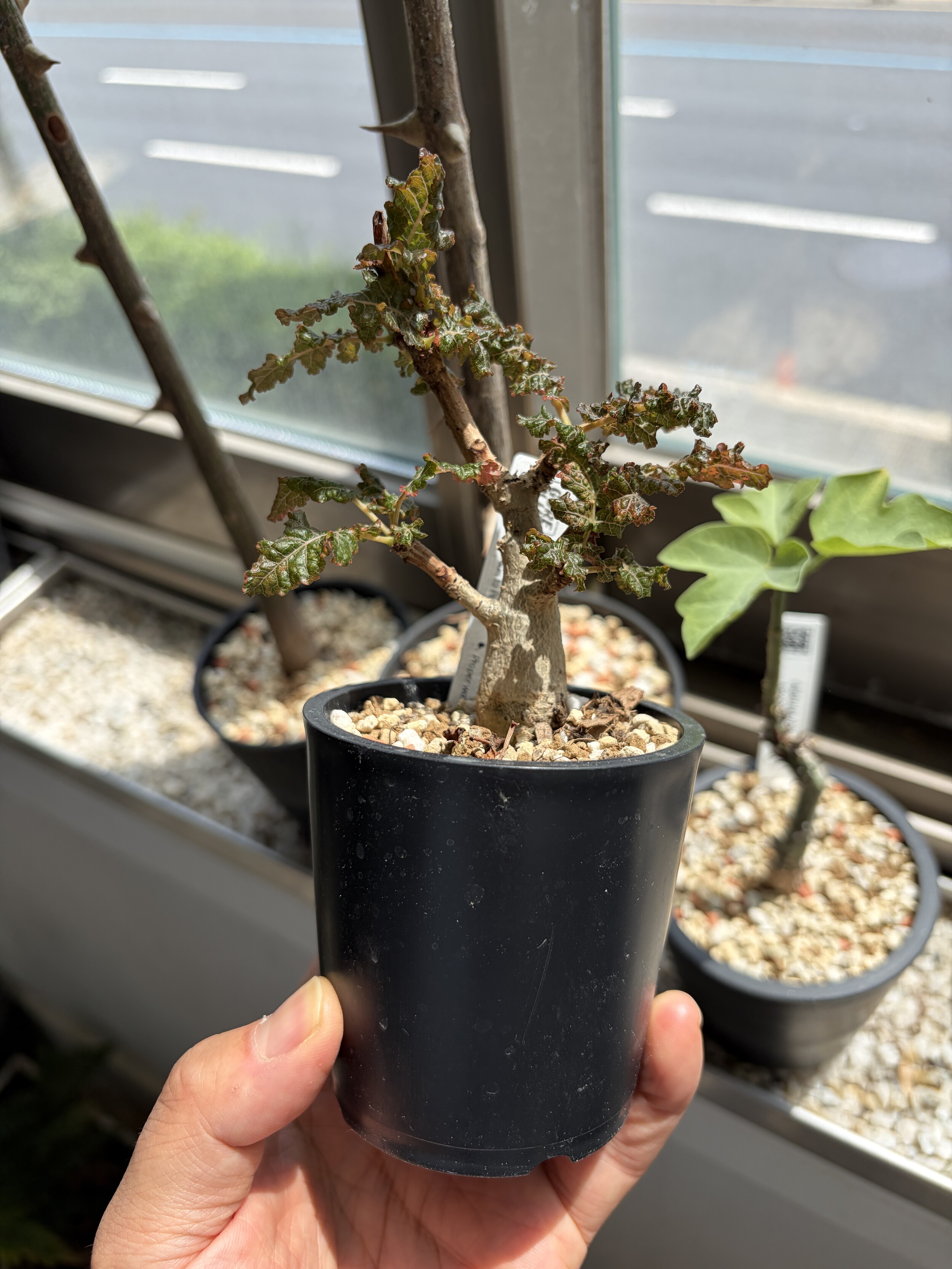'Caudex' 식물들은 늦가을부터 자연스럽게 잎이 떨어집니다. (환경에 따라 잎이 지지 않을 수 있습니다.) 잎이 떨어지기 시작하면 서서히 물을 줄여나가며 휴면기인 겨울 동안에는 2-3주 1회 가볍게 분무 해주시면 됩니다.