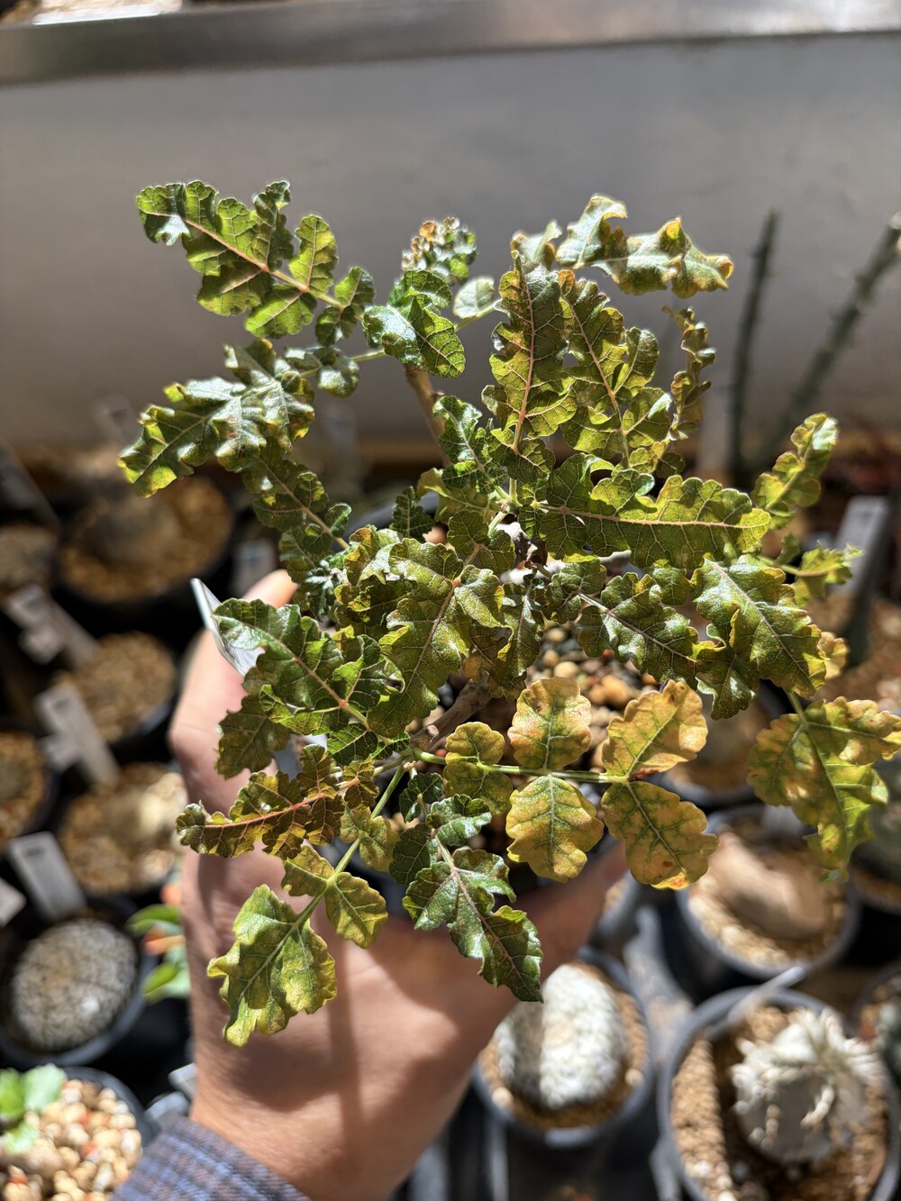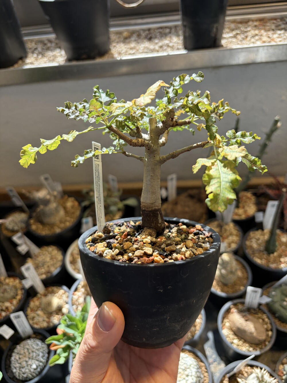 'Caudex' 식물들은 늦가을부터 자연스럽게 잎이 떨어집니다. (환경에 따라 잎이 지지 않을 수 있습니다.) 잎이 떨어지기 시작하면 서서히 물을 줄여나가며 휴면기인 겨울 동안에는 2-3주 1회 가볍게 분무 해주시면 됩니다.