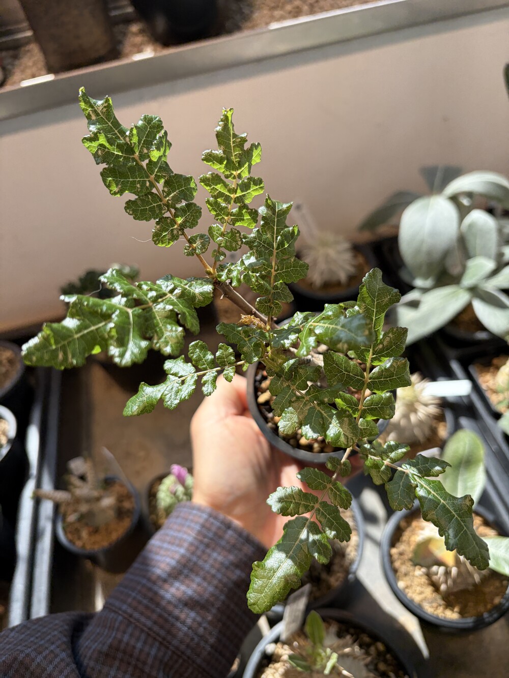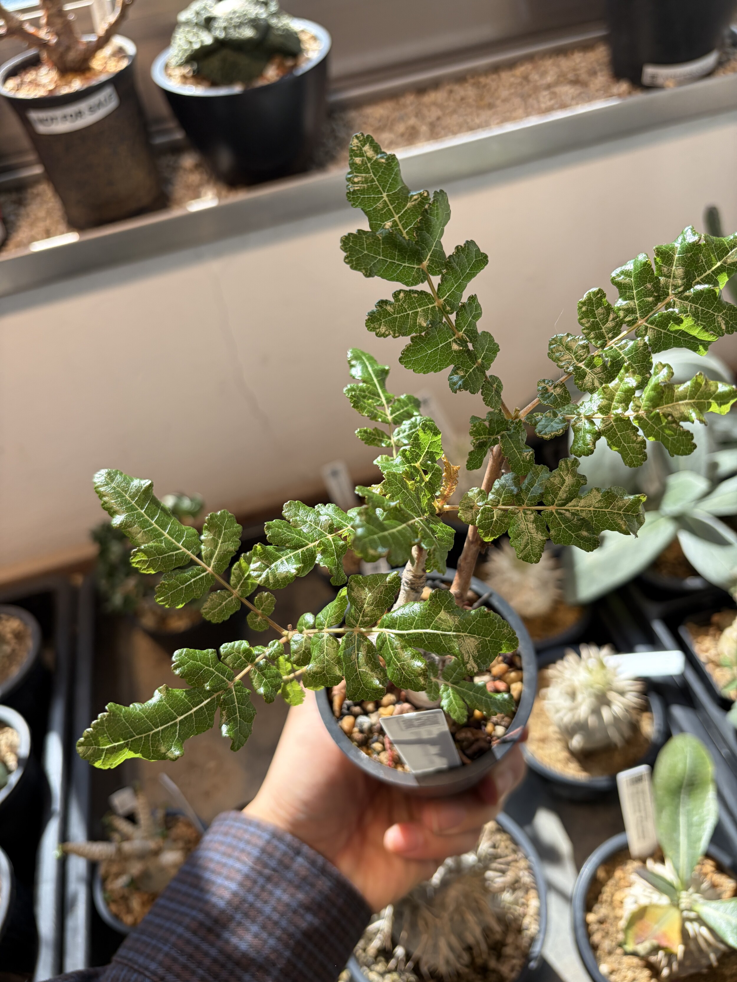 'Caudex' 식물들은 늦가을부터 자연스럽게 잎이 떨어집니다. (환경에 따라 잎이 지지 않을 수 있습니다.) 잎이 떨어지기 시작하면 서서히 물을 줄여나가며 휴면기인 겨울 동안에는 2-3주 1회 가볍게 분무 해주시면 됩니다.