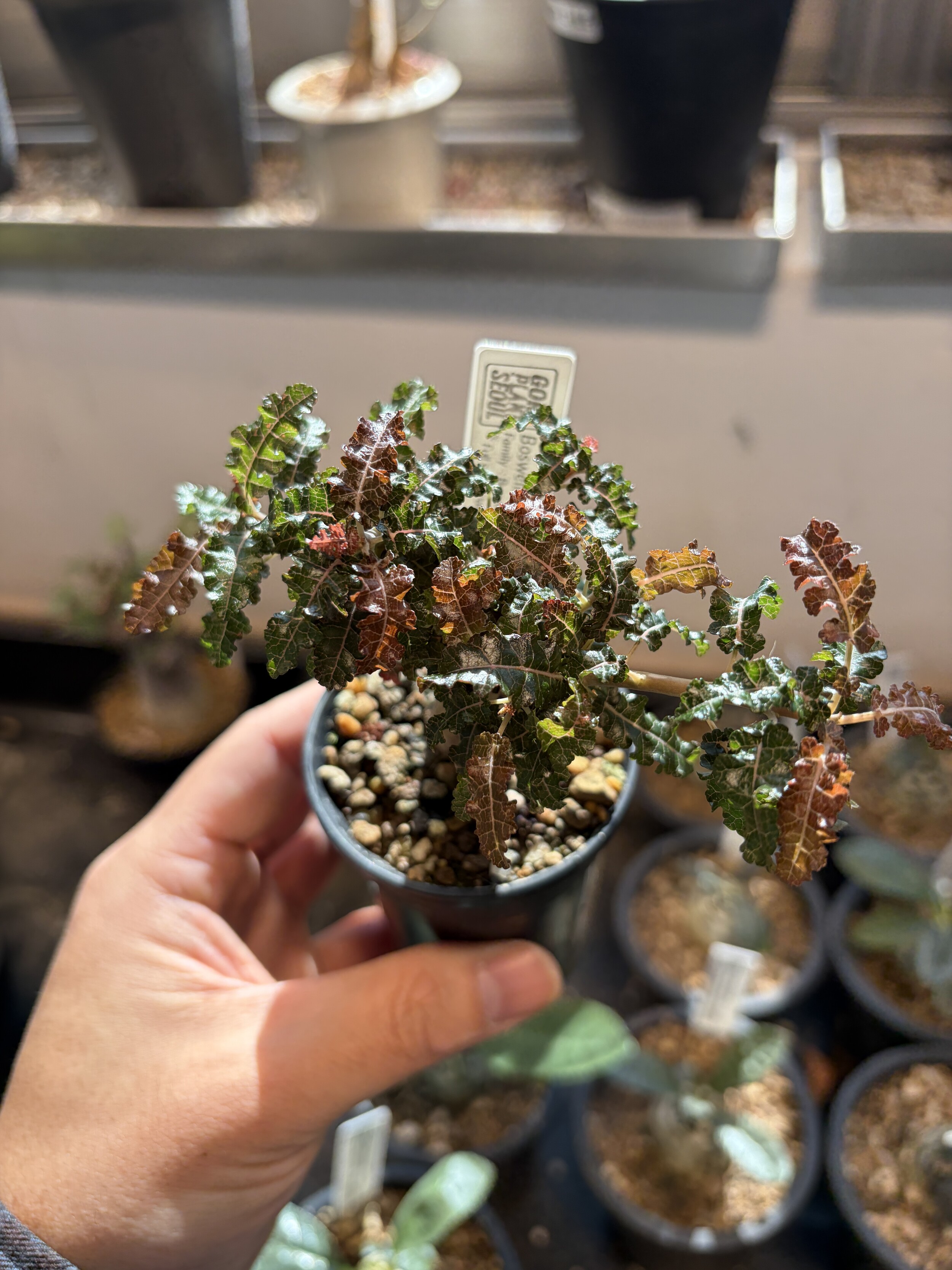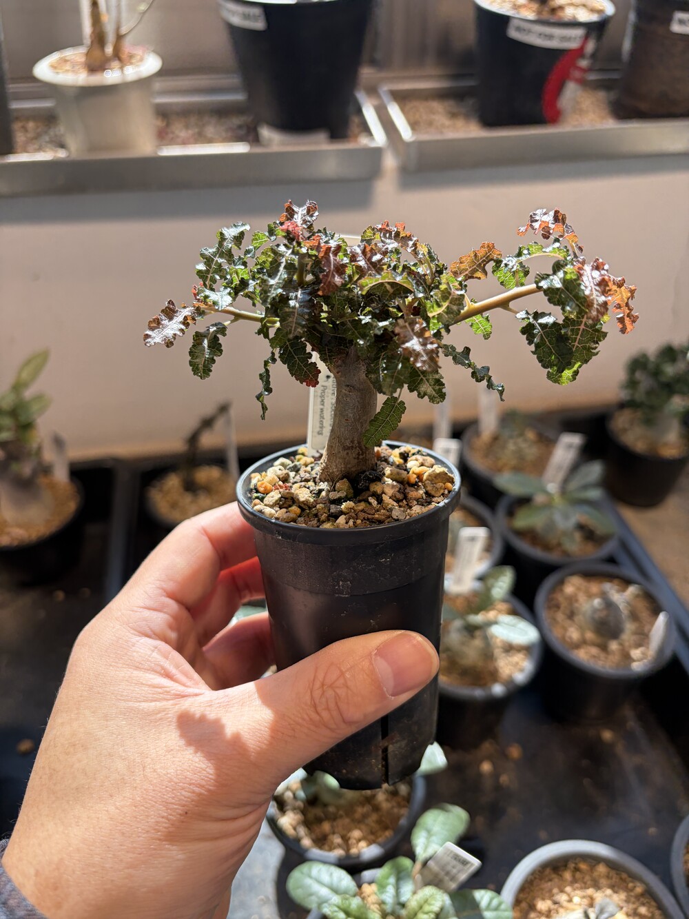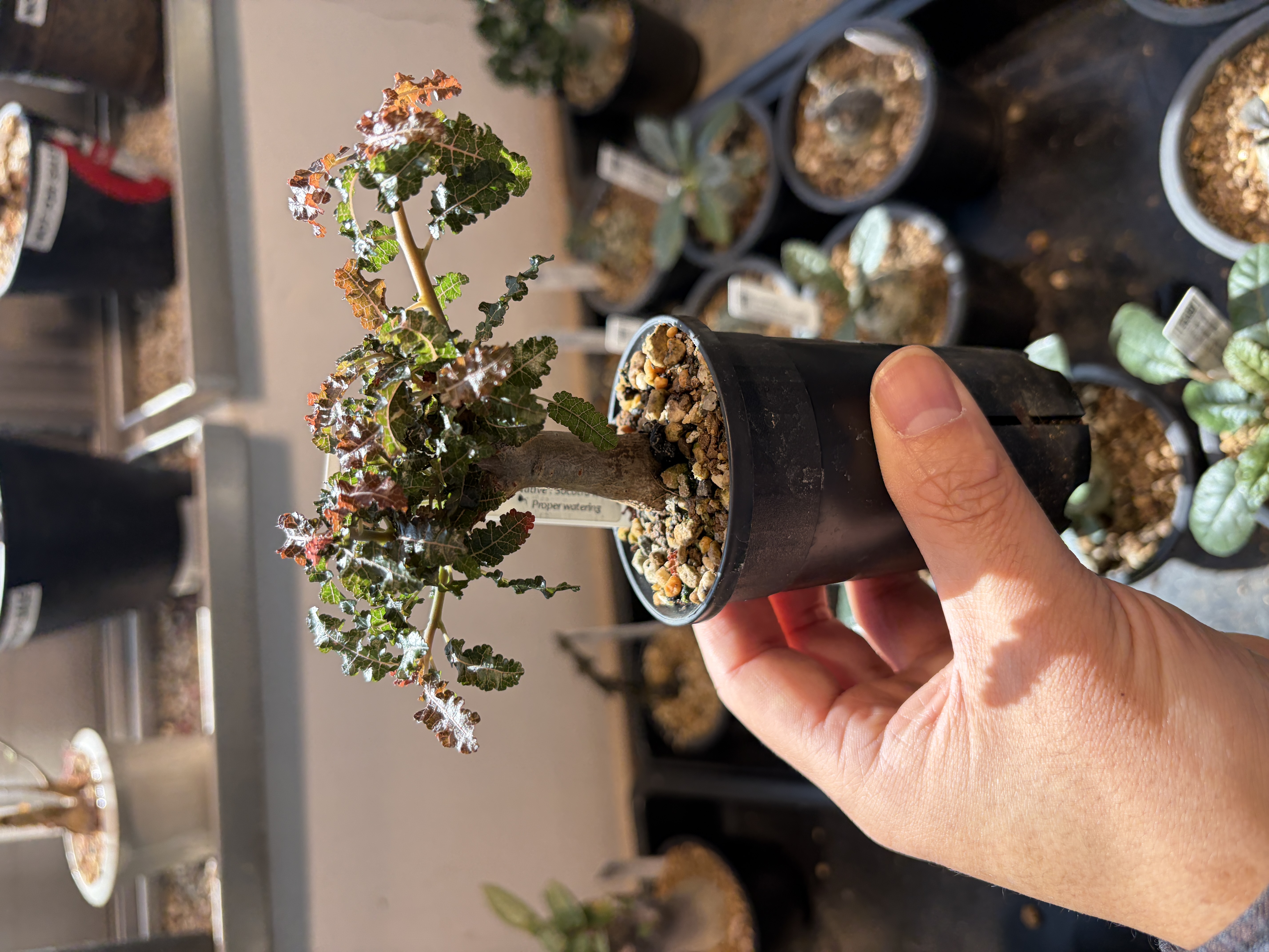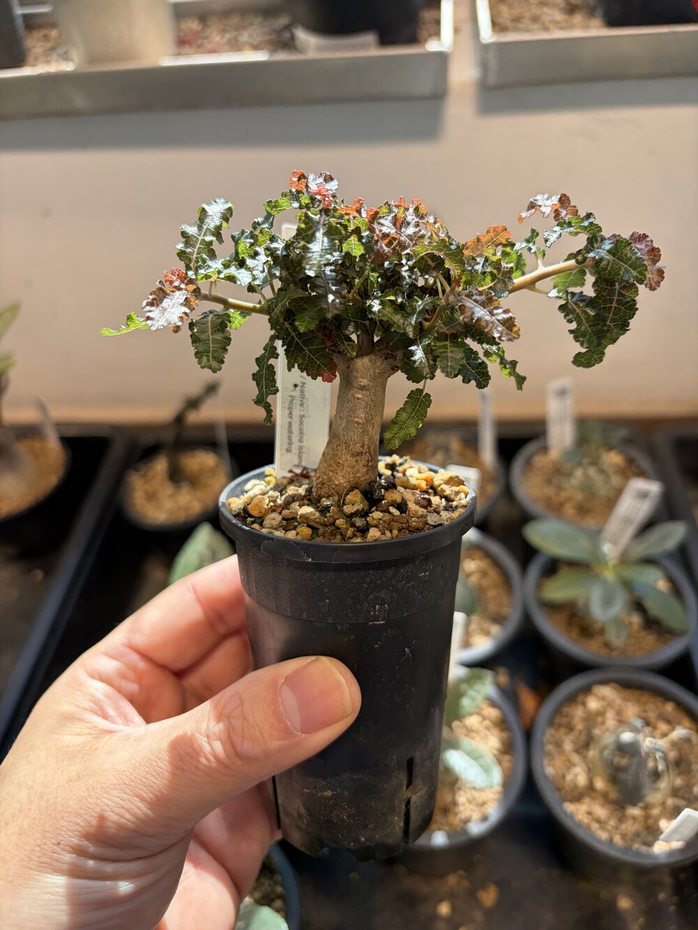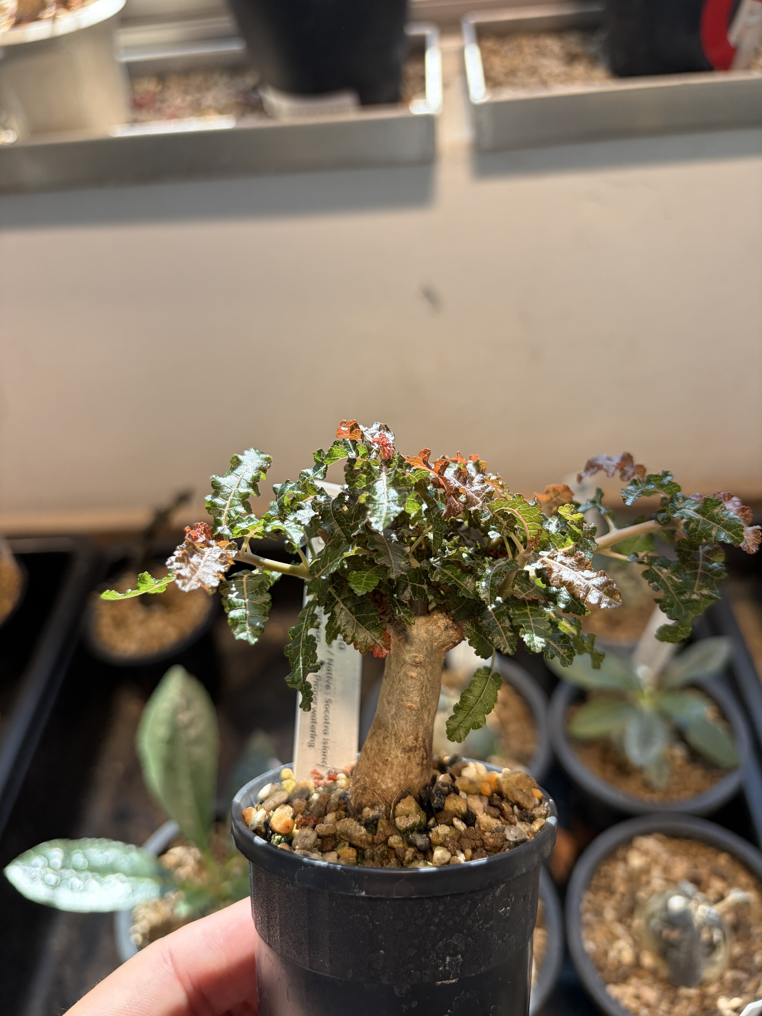 'Caudex' 식물들은 늦가을부터 자연스럽게 잎이 떨어집니다. (환경에 따라 잎이 지지 않을 수 있습니다.) 잎이 떨어지기 시작하면 서서히 물을 줄여나가며 휴면기인 겨울 동안에는 2-3주 1회 가볍게 분무 해주시면 됩니다.