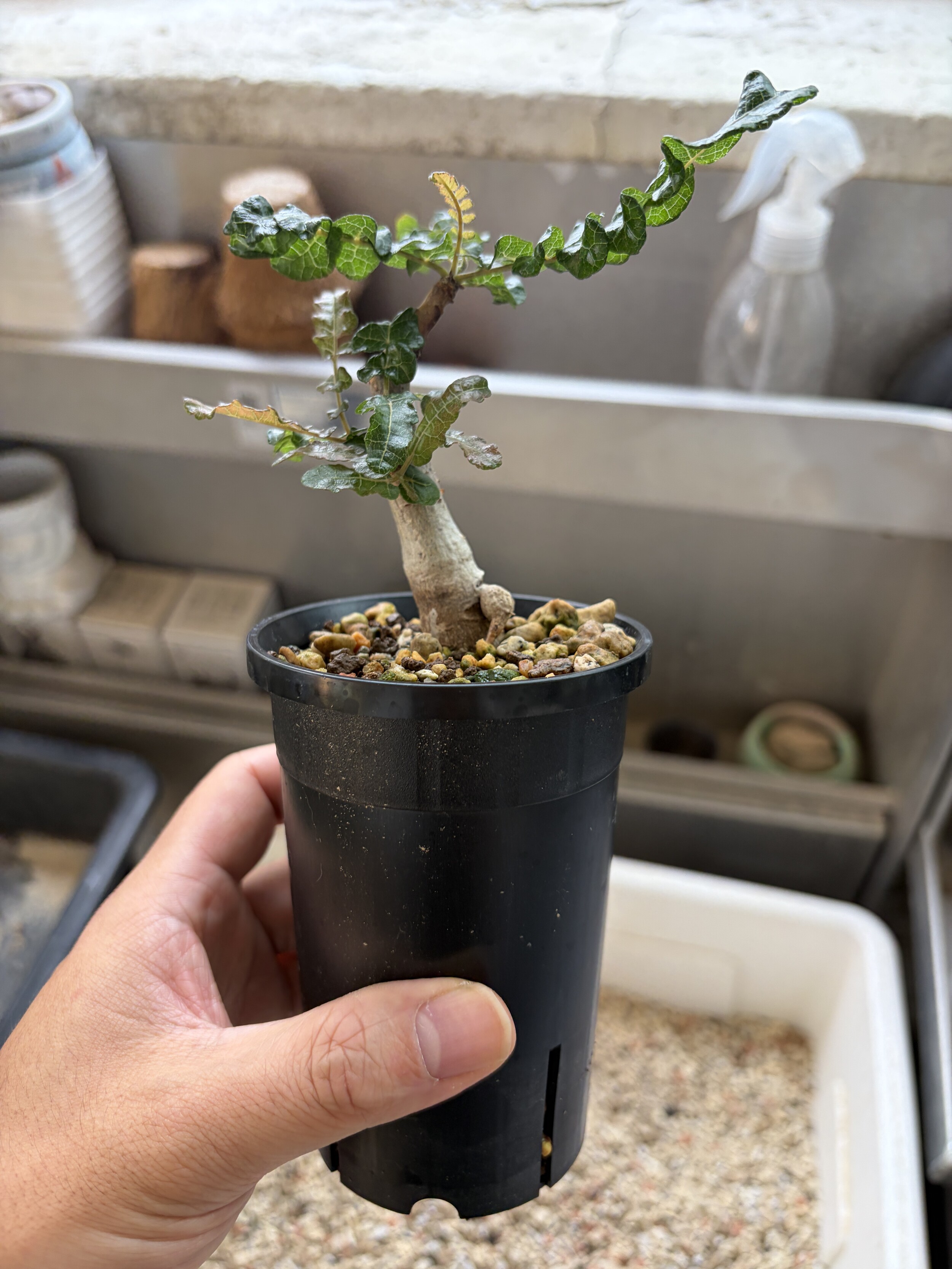 'Caudex' 식물들은 늦가을부터 자연스럽게 잎이 떨어집니다. (환경에 따라 잎이 지지 않을 수 있습니다.) 잎이 떨어지기 시작하면 서서히 물을 줄여나가며 휴면기인 겨울 동안에는 2-3주 1회 가볍게 분무 해주시면 됩니다.