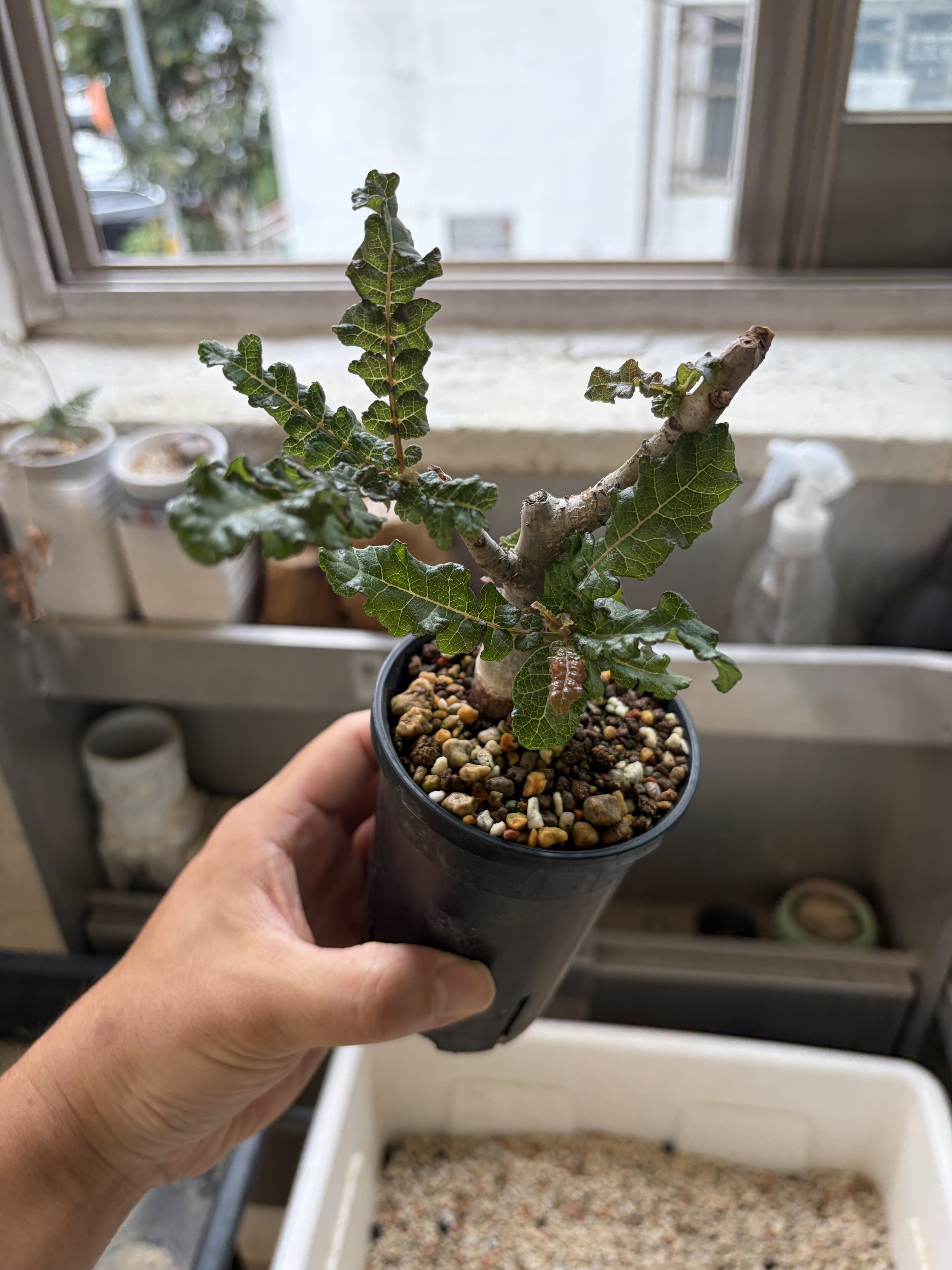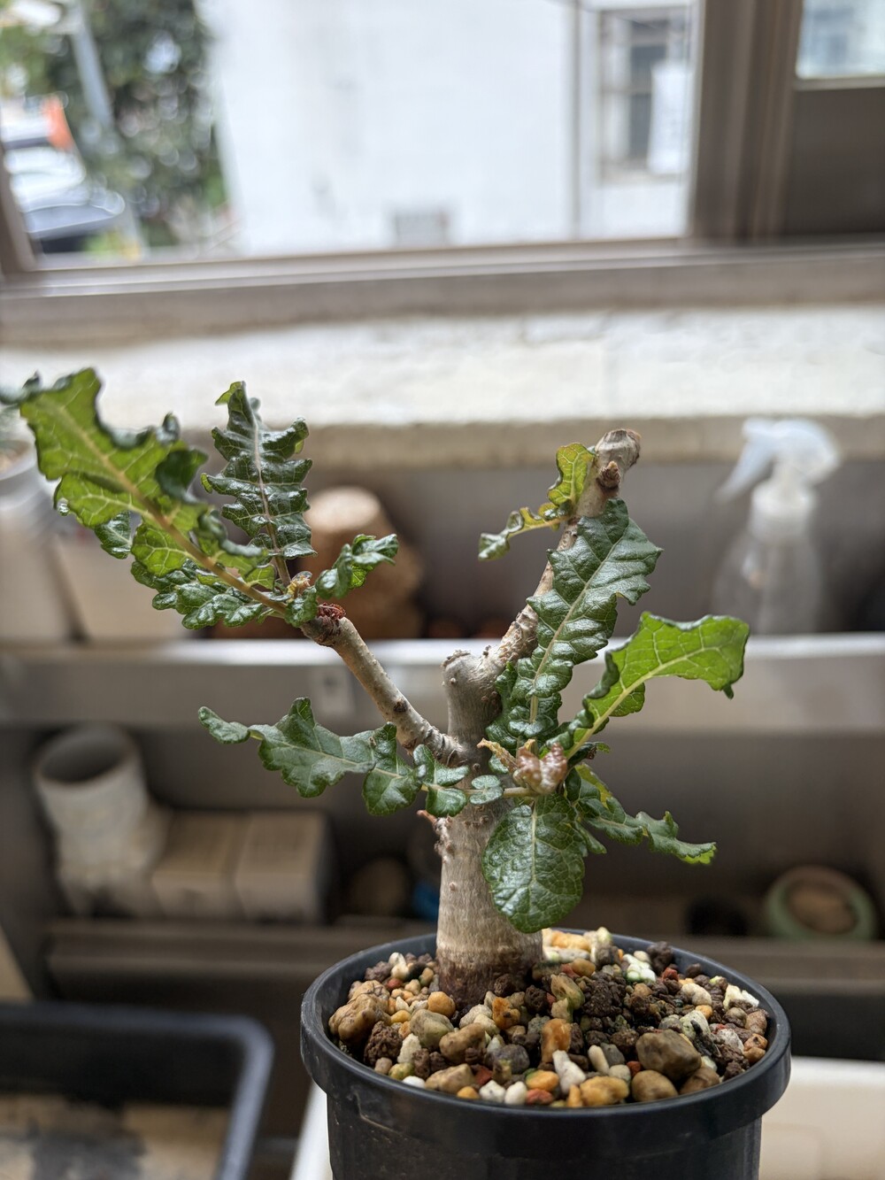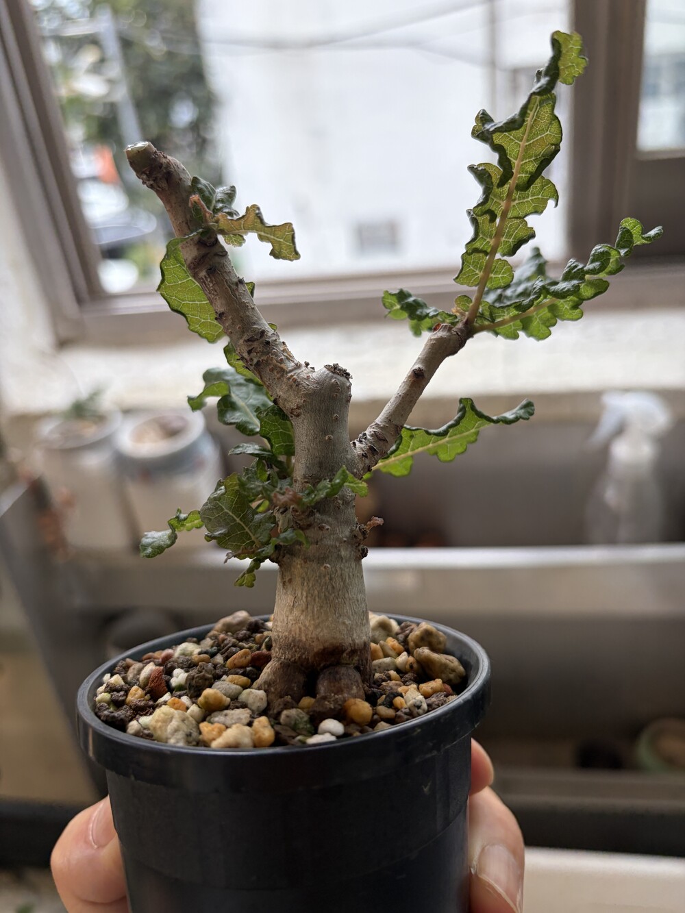 'Caudex' 식물들은 늦가을부터 자연스럽게 잎이 떨어집니다. (환경에 따라 잎이 지지 않을 수 있습니다.) 잎이 떨어지기 시작하면 서서히 물을 줄여나가며 휴면기인 겨울 동안에는 2-3주 1회 가볍게 분무 해주시면 됩니다.