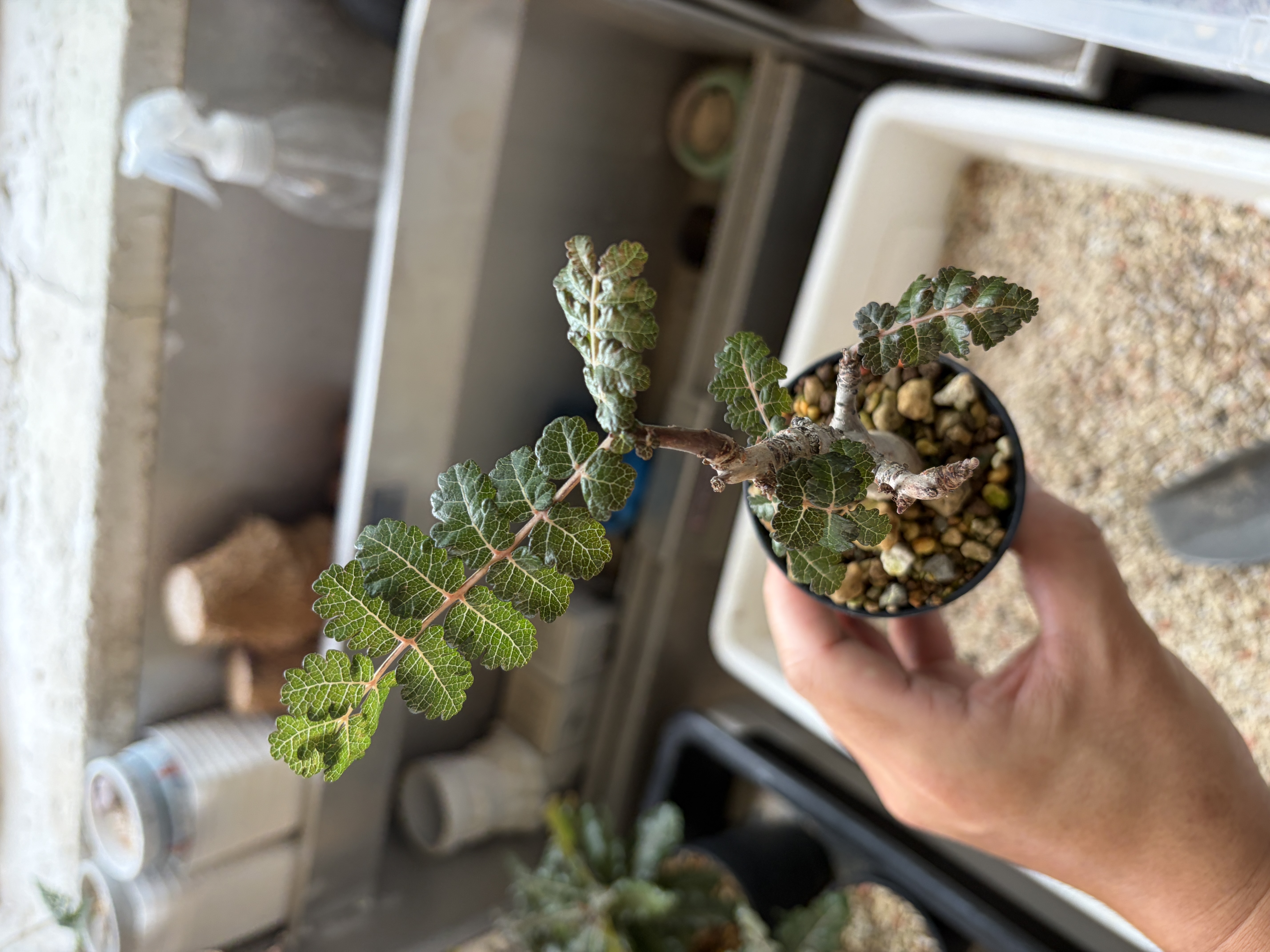 'Caudex' 식물들은 늦가을부터 자연스럽게 잎이 떨어집니다. (환경에 따라 잎이 지지 않을 수 있습니다.) 잎이 떨어지기 시작하면 서서히 물을 줄여나가며 휴면기인 겨울 동안에는 2-3주 1회 가볍게 분무 해주시면 됩니다.