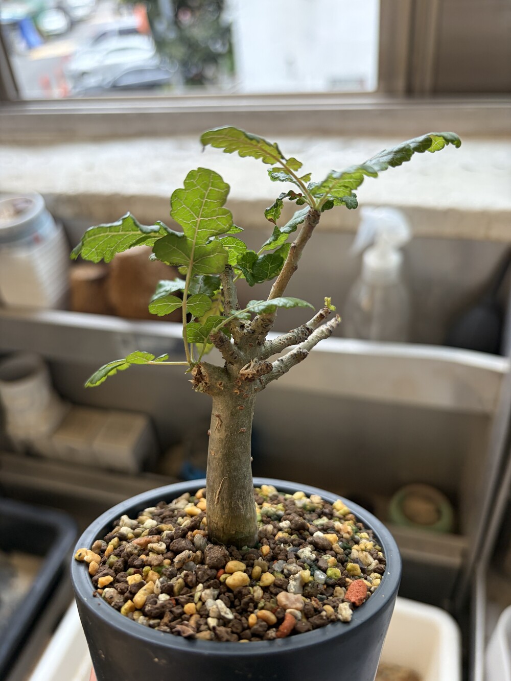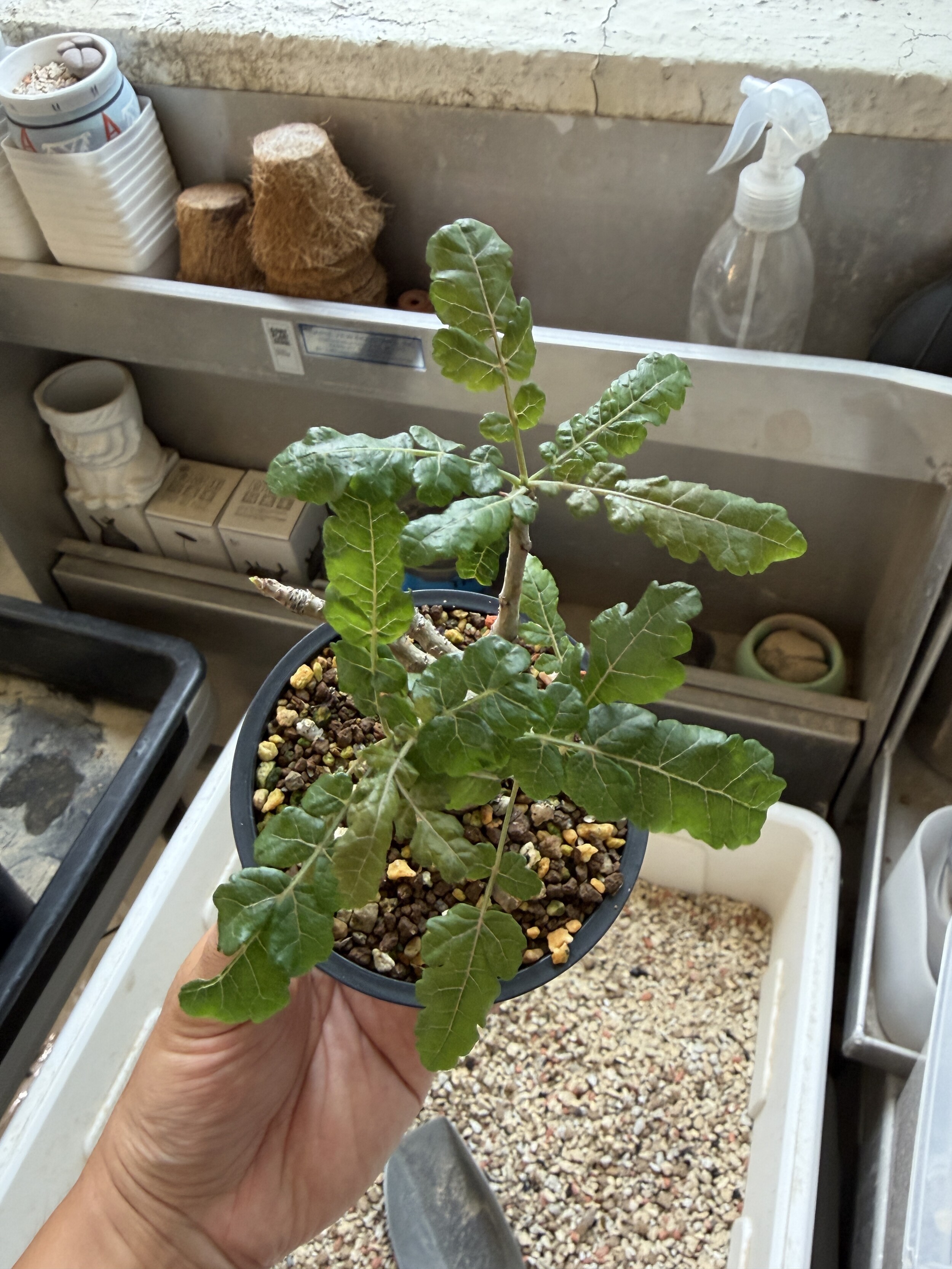 'Caudex' 식물들은 늦가을부터 자연스럽게 잎이 떨어집니다. (환경에 따라 잎이 지지 않을 수 있습니다.) 잎이 떨어지기 시작하면 서서히 물을 줄여나가며 휴면기인 겨울 동안에는 2-3주 1회 가볍게 분무 해주시면 됩니다.